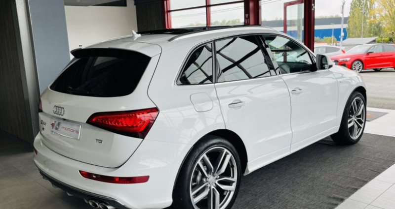 AUDI SQ5 3,0 V6 TDI 313 BVA8 QUATTRO , BLANC DANS UN EXCELLENT ETAT VÉHICULE SOIGNÉ AVEC UNE BELLE CONFIGURATION D'OPTIONS GARANTIE AUDI DANS TOUS LES RESEAUX FRANCE OU EUROPE CARNET D'ENTRETIEN À JOUR REVISION OK DOUBLE DE CLÉ AUCUN FRAIS À PRÉVOIR EQUIPEMENTS - Écran tactile Caméra de recul Prise USB Système Bluetooth Commandes audio au volant Compatibilité MP3 Ordinateur de bord Système de navigation Feux de jour Aide au démarrage en côte Éco mode Essuie-glace automatique Limiteur de vitesse Pack électrique Start and stop Rétroviseurs rabattables électriquement Driving mode selection Rétroviseurs électriques dégivrants Sièges électriques à mémoire Vitres arrières teintées Vitres teintées Attelage Volant sport Toit panoramique Barre de toit Allumage auto des feux Accoudoir central Détecteur de pluie Volant cuir Jantes alliage Rétroviseurs électriques Aide au stationnement Radar de recul Phares au Xénon Régulateur de vitesse Sièges chauffants Sièges électriques Vitres électriques Direction assistée Toit ouvrant Climatisation automatique Front assist Vérouillage centralisé à distance Airbags genoux Airbags rideaux Fixation Isofix Vérouillage centralisé Feux anti-brouillard Anti-démarrage Airbags latéraux Airbag passager Airbag conducteur 4x4 Anti-patinage ESP ABS