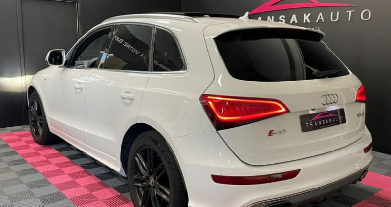 AUDI SQ5 V6 3.0 BiTDI 313 Quattro Tiptronic 8 - APPLE CARPLAY ET ANDROID AUTO - TOIT OUVRANT, 4x4, suv, blanc, 20 cv, 5 portes, première mise en circulation le 23/04/2013, garantie : 3 mois. Prix TTC : 19 990 € 5 places OPTIONS ET ÉQUIPEMENTS : Audio - Télécommunications : - Android Auto - Apple CarPlay - Ecran tactile - Système de navigation Conduite : - Allumage automatique des phares - Limiteur de vitesse - Régulateur de vitesse - Système Start/Stop Extérieur : - Attelage - Caméra de recul - Hayon électrique - Jantes/roues en alliage léger 19 - Phares directionnels - Préparation attelage de remorque - Radar de stationnement arrière - Radar de stationnement avant - Rétroviseurs extérieurs dégivrants - Rétroviseurs extérieurs électriques - Toit ouvrant panoramique Intérieur : - Accoudoir arrière - Accoudoir avant - Cache bagages - Climatisation automatique - Direction assistée - Filet de séparation - Intérieur cuir - Lève-vitres arrière électriques - Lève-vitres avant électriques - Ordinateur de bord - Siège conducteur réglable éléctriquement - Sièges avant Sport - Volant en cuir - Volant sport Pack : - Antidémarrage - Appuie-tête arrière - Boite automatique 8 vitesses - Ceintures avant avec prétensionneurs - Ecrous de roue antivol - Essuie glace arrière - Frein de stationnement électrique - Garnitures intérieures métal - Pré-équipement téléphone - Soundsystem - Verrouillage centralisé télécommandé - Volant multifonctions Sellerie : - Sièges en cuir Sécurité : - ABS - Aide au démarrage en pente - Airbag conducteur - Airbag latéral conducteur et passager - Airbag passager - Airbags rideaux arrière - Airbags rideaux avant - Assistance au freinage d?urgence - Contrôle pression pneus (RDC) - ESP (programme de stabilité électronique) - Fixations ISOFIX - Kit de réparation pneus (Mobile Tyre) - Phares antibrouillard - Répartiteur électronique de freinage Autres équipements et informations : - GPS tactile - Oeïllets de fixation - Préparation du système de géolocalisation véhicule - Système anti bloquage (ABS) - Traction tout terrain permanente - Volant réglable manuellement - consommation extra urbaine: 6.40l/100 - consommation urbaine: 7.60l/100 - consommation mixte: 6.80l/100 *** EQUIPEMENTS : TOIT OUVRANT , APPLE CARPLAY ET ANDROID AUTO , CLIMATISATION AUTOMATIQUE , REGULATEUR ET LIMITEUR DE VITESSE , CAMERA DE RECUL ET RADARS DE STATIONNEMENT AVANT/ARRIERE , SIEGES ELECTRIQUES...*** - Des erreurs peuvent se glisser dans nos annonces, merci de nous contacter pour plus de renseignements sur ces dernières. Prix hors frais de mise à la route et carte grise Garantie et reprise possible. Véhicule visible UNIQUEMENT sur rendez-vous à l'agence de Metz. TRANSAKAUTO METZ 4 rue du Chêne Brûlé 54700 Lesménils TRANSAKAUTO, réseau national spécialisé dans le courtage automobile pour particuliers, assure les transactions et la gestion de tous les éléments administratifs. Plus de 200 agences à votre disposition dans toute la France pour acheter ou vendre votre véhicule d'occasion ! A bientôt. Référence annonce : 4722