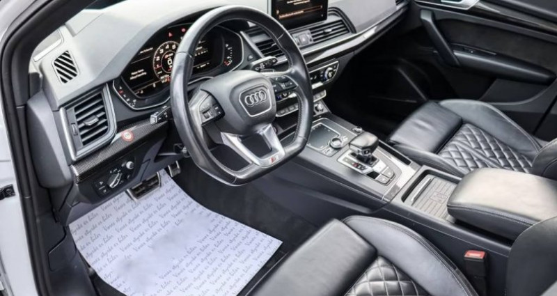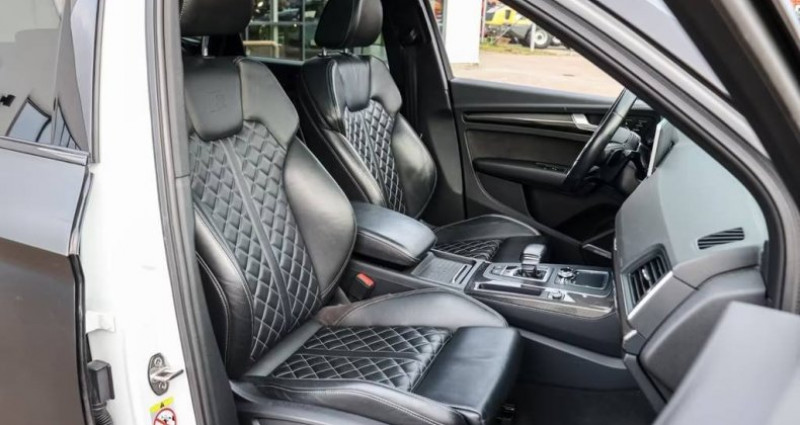 Première Main : Oui Nb. Vitesse : 8 Garantie : 12 Mois MBP Audi SQ5 3.0 TFSI quattro S-line - 12/2018 - 86 000 km (Véhicule recouvert d'un film noir - Couleur d'origine : Blanc). pack rangement et compartiment à bagages, éclairage d’ambiance, pack assistance ville avec assistance stationnement, pack assistance tourisme, pack d’équipements technologiques, rétroviseurs extérieurs à réglage électrique. Rétroviseurs extérieurs réglables, chauffants et rabattables avec fonction anti-éblouissement automatique et fonction mémoire, rétroviseurs extérieurs noirs, système mains libres Bluetooth avec reconnaissance vocale (Audi Phone Box), étriers de freins peints en rouge, barres de toit, écrous antivol, assistance au démarrage en côte, suspension S line (suspension pneumatique adaptative), caméra avant (pare-brise), affichage tête haute, inserts décoratifs intérieurs en fibre de carbone, inserts décoratifs intérieurs en sergé de fibre de carbone, rétroviseur intérieur à atténuation automatique, climatisation automatique tri-zone, clé confort avec déverrouillage du hayon par capteur et alarme antivol (ouverture + fermeture), volant sport en cuir (3 branches, méplat) avec fonctions multifonctions, colonne de direction à réglage électrique. Jantes alliage 7x19 réglables (5 branches, design dynamique, pour pneus hiver), jantes alliage 8x20 (5 branches, rotor, noir anthracite, finition diamantée), phares Matrix LED, peinture métallisée, pack esthétique noir titane, toit ouvrant panoramique (électrique à l'avant, fixe à l'arrière), peinture nacrée, banquette arrière rabattable (plus), sellerie cuir Nappa fin, surpiqûres diamant avec logo en relief sur les dossiers des sièges avant, sièges avant à réglage électrique (siège gauche avec mémoire), système audio Bang & Olufsen, chauffage auxiliaire, vitres arrière surteintées. Équipements supplémentaires : Désactivation de l'airbag passager, airbags conducteur et passager, Audi connect (système d'appel d'urgence et d'assistance), Audi Drive Select, prise AUX-IN, rétroviseurs extérieurs convexes (gauche et droit), clignotants à LED intégrés aux rétroviseurs extérieurs, assistance au freinage d'urgence, ciel de pavillon en tissu noir, aileron de toit, seuils de porte éclairés avec insert et lettrage en aluminium, contrôle de descente, fonction de freinage d'urgence en ville (Audi pre sense City), tapis de sol en velours, séparateur de coffre (filet), hayon à commande électrique (ouverture et fermeture), limiteur de vitesse, fixations Isofix pour sièges enfant, carrosserie 4 portes, verrouillage manuel de sécurité enfant, système d'airbags de tête (Sideguard), réservoir de carburant de 70 litres, soutien lombaire réglable électriquement pour les sièges avant, réglage automatique de la portée des phares, capteur de luminosité (Coming Home, Leaving Home), accoudoir central arrière avec compartiment de rangement, moteur 3,0 litres. Moteur V6 24V TFSI de 260 kW, interface multimédia MMI Basic Plus / MMI Radio Plus, pack non-fumeur, frein de stationnement électromécanique, pédales et repose-pieds en acier inoxydable, empattement de 2 824 mm, kit de réparation de pneus, système de surveillance de la pression des pneus, faibles émissions selon la norme Euro 6, gicleurs de lave-glace chauffants, airbags latéraux avant, sièges sport avant, système Start/Stop, cric, vitres athermiques surteintées vertes, système d'accès et de démarrage sans clé