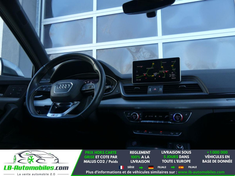 Référence : 1182502 Vos Avantages chez LB-AUTOMOBILES.com / Prix affiché TTC Livré hors carte grise / Livraison sous 10 jours dans toute la France hors 31 / Pas d?avance de frais paiement du véhicule 100% à la livraison par virement. Audi SQ5 Neuf remisée, Audi SQ5 Occasion Toulouse Beaupuy 31850, Audi SQ5 Véhicule sorti de réseau collaborateur, Audi SQ5 import, Audi SQ5 importateur, Audi SQ5 Livraison possible dans toute la France sous 5 jours, Audi SQ5, Audi SQ5 Location Option Achat, Audi SQ5 LLD, Audi SQ5 Longue Durée, Audi SQ5 TVA récupérable. Possibilité d'extension de garantie 12, 24,36 mois, Pour tout autres voitures import neufs ou occasions collaborateur fortement remisée, Mandataire Audi, Mandataire BMW, Mandataire Volkswagen, Mandataire Mercedes, Mandataire Peugeot Espagne, Mandataire Renault Espagne, Porsche import, Mandataire Citroën Espagne, Mandataire Seat Espagne, n'hésitez pas à nous contacter. « Sous réserve de vente préalable et erreur de saisie » Principaux équipements : - 4x4 - ABS - Accoudoir - Android Auto - Antidémarrage - Apple CarPlay - Assistance au freinage d'urgence - Assistance de démarrage en côte - Assistant de man?uvre avec remorque - Assistant feux de route - Attache remorque pivotante - Avertisseur de franchissement de ligne - Bluetooth - Boîte de vitesses robotisée - Capteur de lumière - Capteur de pluie - Carnet d'entretien - Cockpit numérique - Commande vocale - Contrôle de la pression des pneus - Direction assistée - Éclairage adaptatif de virage - Éclairage d'ambiance - Éclairage route non éblouissant - Écran tactile - ESP - Fermeture centralisée - Feux de jour LED - Galerie de toit - Garantie - GPS - Grille de protection pour coffre - Hayon électrique - Isofix - Jantes alliage - Kit de préparation pour système de navigation - Kit de réparation d'urgence des pneus - Kit mains libres - Lecteur CD - Ordinateur de bord - Package hiver - Pack fumeur - Pack sport - Phare antibrouillard - Phares LED - Pneus été - Point Isofix siège passager - Port USB - Radio DAB - Réglage électrique des sièges - Réglage électrique des sièges avec fonction mémoire - Régulateur de vitesse adaptatif - Rétroviseur extérieur électrique - Rétroviseur intérieur anti-éblouissement automatique - Rétroviseurs extérieurs rabattables électriquement - Sièges chauffants - Sièges sport - Streaming musical intégré - Support lombaire - Suspension adaptative - Suspension sport - Système antipatinage - Système d'alarme - Système d'appel d'urgence - Système d'avertissement de la distance - Système de détection de la fatigue - Système de limitation de la vitesse - Système de nettoyage des phares - Système de reconnaissance des panneaux de signalisation - Système de sonorisation - Système Stop & Start - Toit panoramique - Trappe à skis - Tuner/radio - Véhicule non-fumeur - Verrouillage centralisé sans clé - Vitres teintées - Volant en cuir - Volant multifonction - WLAN / point d'accès Wi-Fi