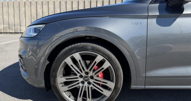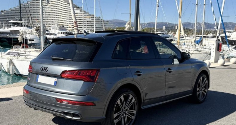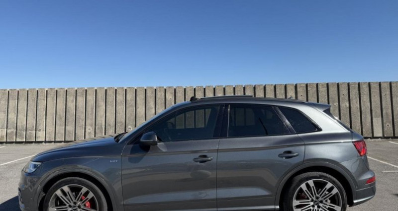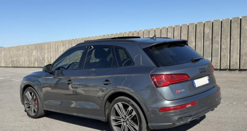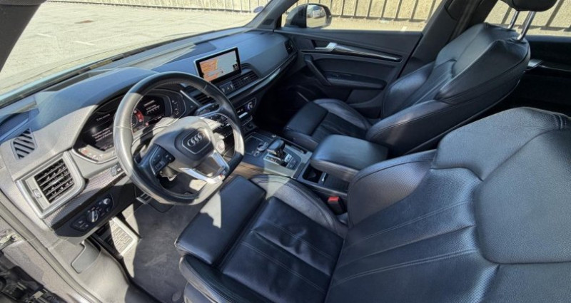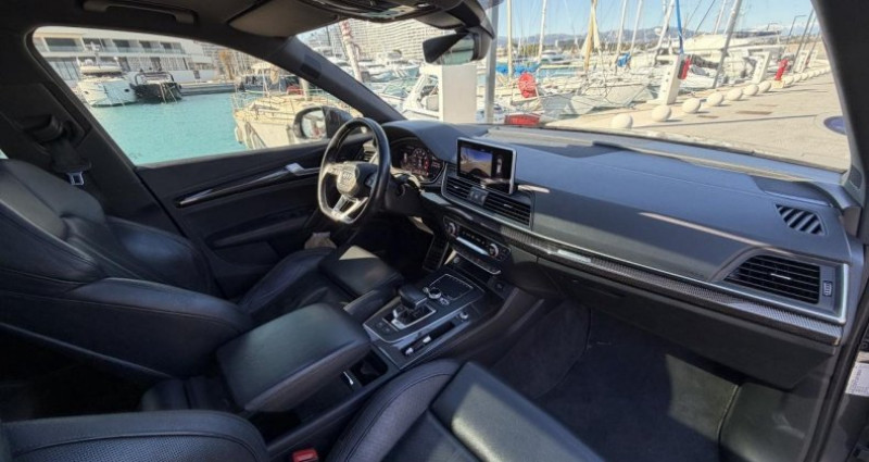 ======= OPTIONS ======= Adaptive air suspension avec réglage spécifique S Affichage tête haute Airbags latéraux à l'arrière Applications décoratives intérieur en Carbone Atlas Audi Active Lane Assist Audi Park Assist Bang & Olufsen sound system avec son en 3D Crochet d'attelage Direction dynamique : augmente la dynamique et le confort de conduite grâce à une régulation dynamique de la direction en fonction de la situation de conduite Etriers de frein peints en rouge à l'avant et à l'arrière avec inscription S Jantes en aluminium coulé style 5 branches doubles en V (style S), gris contrasté, partiellement polies 8,5 J x 21 avec pneus 255 40 R 21 Lave-phares Pack Assistance Stationnement Pack Eclairage Pack Eclairage ambiance Peinture Gris Daytona nacrée Peinture métallisée Phares Audi Matrix LED Sellerie en cuir Milano Sièges ventilés à l'avant Système de lecture des panneaux de signalisation par caméra Toit ouvrant panoramique en verre ======= EQUIPEMENTS DE SERIE ======= Accoudoir central confort à l'avant avec inclinaison réglable et coulissant en longueur Affichage du contrôle de la pression des pneumatiques Airbags grand volume pour le conducteur et le passager Airbags latéraux à l'avant et système d'airbags de tête Antipatinage ASR pour une motricité optimale, empêche le patinage des roues motrices Applications décoratives en aluminium brossé mat Appui lombaire à 4 axes pour les sièges avant, réglage électrique, horizontal et vertical Audi connect Audi connect Sécurité et Service Audi Drive Select Audi Hold Assist Audi phone box avec chargeur sans fil Audi smartphone interface Audi sound system : 10 haut-parleurs incluant un haut-parleur central et un subwoofer ; amplificateur à 6 canaux avec une puissance totale de 180 watts Audi Tracking System : système d'immobilisation et de localisation du véhicule par satellite Audi virtual cockpit Carrosserie galvanisée Ceintures de sécurité automatiques à trois points pour tous les sièges et contrôle de port de ceinture à l avant Cendrier et prise allume-cigare Châssis Sport S avec amortissement piloté Ciel de pavillon en tissu noir Clé confort (sans safelock) Climatisation automatique Confort Plus 3 zones à fonctionnalités étendues et affichage numérique Colonne de direction de sécurité Coques de rétroviseurs extérieurs en aluminium Détecteur de pluie et allumage automatique des projecteurs Déverrouillage et ouverture du hayon par un mouvement de pied Direction assistée électromécanique Dispositif anti-erreur de carburant Dossiers de banquette arrière rabattable 40 20 40 avec accoudoir central arrière Eclairage intérieur : module de pavillon incluant spots de lecture, éclairage d'ambiance sur la console arrière, boîte à gants éclairée, éclairage passif des portières, éclairage du coffre Ecrous antivol Eléments extérieurs spécifiques S : calandre singleframe avec lamelles aluminium avec logo SQ5, grilles d'entrée d'air latérales en chrome foncé avec applications aluminium, diffuseur arrière avec insert aluminium Fixation pour sièges enfants ISOFIX et Top Tether pour les places arrière extérieures Fixations pour sièges enfants ISOFIX pour le siège passager avant avec commande de désactivation d'airbag passager avant Frein de stationnement electromécanique Hayon à ouverture et fermeture automatiques Interface Bluetooth Jantes en aluminium coulé style 5 branches doubles en étoile, gris contrasté, partiellement polies 8 J x 20'' avec pneus 255 45 R 20 Kit de réparation pneus avec compresseur 12 V et bombe anti-crevaison Navigation MMI plus avec MMI touch Outillage de bord et cric Pack Assistance City Pack brillance : entourages de vitres en aluminium Pare-chocs spécifiques S style dynamique et sportif Pare-soleil Peinture vernie Phares à LED avec clignotants arrière à LED dynamiques Préparation pour crochet d'attelage Quattro avec différentiel central autobloquant Recommandation de repos qui analyse le comportement routier au moyen de différents capteurs Régulateur et limiteur de vitesse Rétroviseur intérieur à position nuit automatique, sans encadrement Rétroviseurs extérieurs avec clignotants à LED intégrés Rétroviseurs extérieurs réglables et escamotables électriquement, jour nuit automatique, dégivrants des deux côtés et buses de lave-glaces dégivrantes Sécurité enfants Sièges avant chauffants Sièges avant réglables électriquement avec fonction mémoires pour le siège conducteur Sièges Sport S à l'avant Système Stop & Start Tapis complémentaires à l'avant et à l'arrière Tiptronic : boîte automatique 8 rapports avec programme de commande dynamique (DSP) Triangle de présignalisation et trousse de secours Vide-poches Vitres surteintées avec vitrage acoustique pour les vitres de portières avant Volant 3 branches multifonction plus en cuir avec méplat avec logo S Nb. Vitesses : 8 Conso Mixte : l/100
