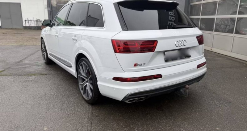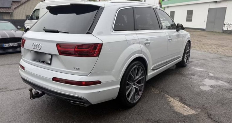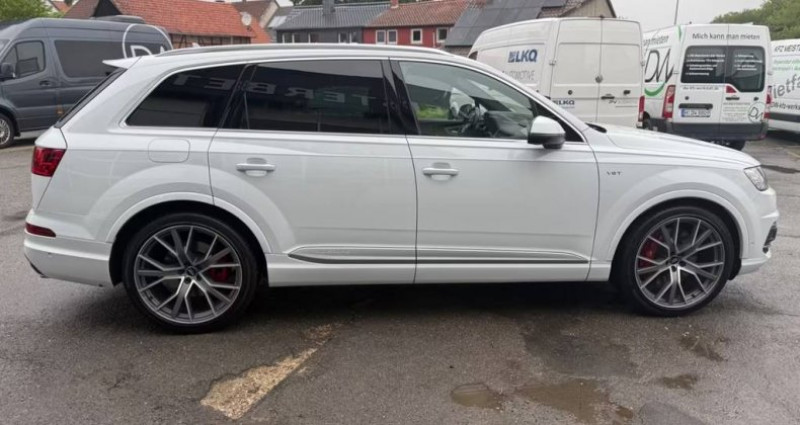 Première Main : Oui Nb. Vitesse : 8 Garantie : 12 Mois MBP Motorisation & Transmission V8 4.0 TDI - 320 kW Transmission intégrale quattro Boîte automatique avec palettes au volant Suspension pneumatique adaptative (pack châssis avancé) Audi Drive Select Direction assistée électromécanique Norme Euro 6 Système Start & Stop Récupération d’énergie au freinage Design & Extérieur Peinture nacrée Phares Matrix LED adaptatifs Feux arrière LED avec clignotants dynamiques Feux de virage et feux toutes saisons Jantes alliage Sorties d’échappement sport chromées (x4) Vitres arrière surteintées Barres de toit aluminium Aileron de toit S line Toit ouvrant panoramique électrique avant et arrière Hayon électrique Attelage de remorque avec assistance Intérieur & Confort Sellerie cuir / Alcantara avec logo SQ embossé Sièges sport avant à réglage électrique avec mémoire conducteur Soutien lombaire électrique Sièges arrière coulissants (2e rangée) Climatisation automatique 4 zones Ciel de toit noir Éclairage d’ambiance + Pack éclairage Volant sport cuir méplat multifonctions Colonne de direction à réglage électrique Fermeture assistée des portes Accès et démarrage sans clé (Keyless) Chauffage auxiliaire Tapis de sol en velours Cache-bagages Multimédia & Connectivité MMI Navigation Plus avec MMI Touch Audi Virtual Cockpit / ordinateur de bord Système audio BOSE Audi Phone Box Bluetooth avec reconnaissance vocale Audi Music Interface Radio numérique DAB / tuner TV Audi Connect (services en ligne + appel d’urgence) Connexion AUX-IN Aides à la conduite & Sécurité Régulateur de vitesse Reconnaissance des panneaux de signalisation Pack Assistance Ville Pack Assistance Tour Pack Assistance Stationnement Aide au stationnement avec radars avant et arrière Caméras d’aide au stationnement Assistance au démarrage en côte Audi Pre Sense City Audi Pre Sense Basic Assistance feux de route Assistance au freinage d’urgence Airbags frontaux, latéraux et rideaux Airbags latéraux arrière Isofix arrière + Isofix siège passager avant Sécurité enfant électrique Système de surveillance de la pression des pneus Aspects pratiques Réservoir de carburant 85 litres Banquette arrière rabattable en deux parties Lunette arrière dégivrante Kit de réparation de pneus Cric Gicleurs de lave-glace chauffants