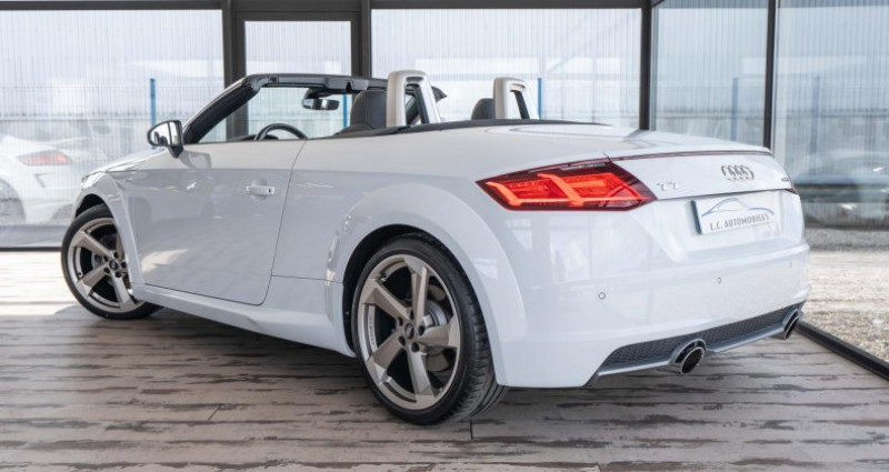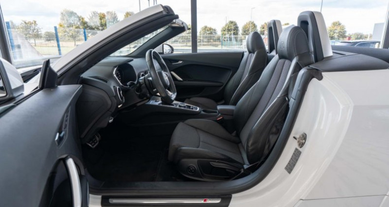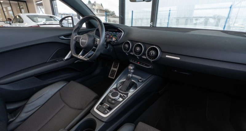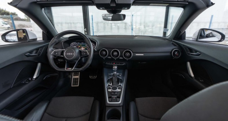======= OPTIONS ======= Audi Parking System Plus Bang & Olufsen Sound System Chauffage des sièges avant Jantes Audi Sport en aluminium coulé 19 style 5 branches en lames, pneus 245 35 R19 93Y Pack extérieur S line Phares à LED ======= EQUIPEMENTS DE SERIE ======= 8 haut-parleurs passifs Accès à la commande vocale du Smartphone Affichage du contrôle de la pression des pneumatiques Aileron arrière, télescopique, commande automatique ou manuelle par bouton à partir de 120 km h Airbags grand volume pour le conducteur et le passager Airbags latéraux à l'avant, avec airbags de tête Applications décoratives en aluminium brossé mat Appui lombaire à 4 axes pour les sièges avant, réglage électrique, horizontal et vertical Arceau de sécurité avec revêtement style aluminium ASR : antipatinage Assistant de freinage en cas de collision, en cas d'accident Audi Active Lane Assist Audi Drive Select Audi Music Interface Audi parking system à l'arrière Audi Singleframe, encadrement chromé de la calandre gris pierre Audi virtual cockpit, combiné d'instruments de 12,3 pouces, innovant, entièrement numérique, pour un affichage fonctionnel des informations. Commande de l'Audi virtual cockpit via le volant multifonction et le système MMI Capote acoustique entièrement automatique en noir, gris ou beige avec ciel de capote en tissu isolant 3 couches noir Carrosserie à architecture Audi Space Frame (ASF) Ceintures de sécurité 3 points à enrouleur à toutes les places, avec prétensionneurs et limiteurs de tension à l'avant, et temoins de contrôle de ceinture attachée Châssis avec réglage sportif Châssis Sport S line avec réglage plus dynamique des ressorts et des amortisseurs, surbaissé de 10 mm Clé à fréquence radio, verrouille et déverrouille les portes, le capot de coffre et la trappe à carburant ; incluant ouverture fermeture confort des vitres ; démarrage et arrêt du moteur par touche moteur Start Stop Climatisation automatique Confort Colonne de direction de sécurité, complète le potentiel de protection de la ceinture et de l'airbag ; réglable mécaniquement en hauteur et en profondeur Console centrale Contrôle électronique de stabilisation (ESC) avec blocage transversal électronique Coupe-vent à commande électrique Direction assistée électromécanique Direction progressive Eclairage intérieur, éclairage anti-éblouissant de l'intérieur du véhicule à LED EDS : blocage électronique de différentiel Emblême S line sur les ailes avant Feux arrière à LED, Avec feux de recul et feux arrière de brouillard intégrés Feux de freinage adaptatifs, les feux de détresse clignotent en cas de freinage d'urgence afin de prévenir les voitures qui suivent. Activation des feux de détresse en cas d'arrêt Fixation pour sièges enfants ISOFIX à l'arrière Fonction audiostreaming Frein de stationnement electromécanique Identification du modèle Interface Bluetooth Jantes en aluminium coulé style 10 branches en V partiellement polies, 8,5 J x 18 avec pneus 245 40 R 18 Kit de réparation de pneus Lave-essuie-glace Lecteur de carte SDXC supplémentaire Lecteur DVD Lunette arrière dégivrante MMI Radio, intégré dans l'Audi virtual cockpit avec commande MMI séparé, incluant le menu CAR, Lecteur CD MMI Touch Moulures de seuil avec inscription S line Moulures de seuil avec insert en aluminium Navigation MMI plus avec MMI touch Oeilletons de fixation dans le coffre Outillage de bord Pack aluminium étendu Pare-soleil rabattables et pivotants côtés conducteur et passager avant, avec miroir de courtoisie éclairé et occultable Peinture vernie Pommeau du levier sélecteur de vitesses en cuir perforé noir Prise de courant 12 V dans la console centrale avant Protection antidémarrage électronique Recherche MMI, intelligente et complète par saisie de texte dans les menus Navigation, Téléphone, Radio, Médias et Véhicule ; accès direct via la fonction joystick du bouton poussoir (vers le haut) Recommandation de repos qui analyse le comportement routier au moyen de différents capteurs Régulateur de vitesse Rétroviseur intérieur électrochrome Rétroviseurs extérieurs électriques, escamotables et dégivrants, buses de lave-glaces chauffantes Rétroviseurs extérieurs réglables électriquement et dégivrants avec clignotants intégrés à LED, boîtiers dans la couleur de carrosserie, miroir asphérique à gauche, convexe à droite Sellerie S line en tissu Séquence cuir en noir avec estampillage S sur le dossier des sièges avant Sièges avant réglables en hauteur Sièges Sport à l'avant Sortie d'échappement double chromée Système antiblocage ABS avec répartiteur électronique de freinage EBV Système d'appuie-tête intégral Système de freinage à double circuit en diagonale Système Start Stop avec récupération d'énergie de freinage Tapis complémentaires à l'avant Trappe à carburant style aluminium design caractéristique avec estampillage TT et vis apparentes Triangle de pré-signalisation Trousse de secours Vide-poches dans les contre-portes garnitures latérales et sur la console centrale Vitres athermiques teintées vertes Volant Sport S line en cuir avec multifonction style 3 branches aplati en bas, en noir (poignées de volant en cuir perforé) avec surpiqûres contrastées et emblème S line Xénon plus, incluant bande homogène des feux diurnes à LED et éclairage tout-temps Nb. Vitesses : 6 Conso Mixte : l/100