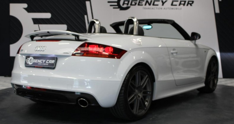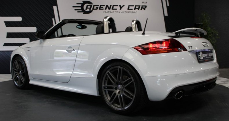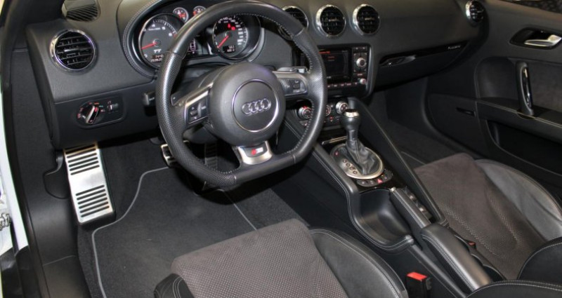 ======= OPTIONS ======= Aide au stationnement arrière Audi Music Interface Bose Surround Sound Bouton Sport sur la console centrale Châssis Audi Magnetic Ride Etriers de freins laqués gris Filet anti-remous électrique Fixations ISOFIX pour le siège passager GPS 1 Pack Carbone Pack Carbone pour Pack Extérieur S line Pack Cuir Pack Eclairage Pack Esthétique noir Pack Extérieur S line Peinture métallisée ou nacrée Pommeau de levier de vitesse en aluminium. Réglages d'appuis lombaires électriques sur 4 plans Rétroviseurs extérieurs en carbone Audi exclusive Sellerie mixte cuir Nappa tissu Sprint avec logo S line Sièges avant chauffants Sièges avant électriques avec réglages pour longueur, hauteur, inclinaison d'assise et de dossier Xénons Plus, projecteur à décharge pour feux de croisement et feux de route Audi Parking System Embouts de sortie d'échappement Sport Volant Sport en cuir style 3 branches, disponible également avec multifonction et ou palettes de changement de vitesses Z- Frais de dossier 690? Arceaux de sécurité de couleur noire disposés derrière les appuie-tête constituant une cellule protectrice en cas de tonneau Capote entièrement automatique triple épaisseur à commande électro-hydraulique, isolation thermique et acoustique renforcée Carrosserie : architecture Audi Space Frame ASF. Association innovante d'aluminium et d'acier assurant une plus grande rigidité et davantage de dynamisme, de stabilité et de sécurité Châssis Sport S line Châssis Sport, avec réglage dynamique des ressorts et des amortisseurs Direction assistée électromécanique, assistance asservie à la vitesse, avec rappel de direction actif, correction automatique de trajectoire en ligne droite Feux arrière en verre transparent rouge, avec feux de recul blancs, style tridimensionnel Inscription TT à l'arrière et sur le compte-tours Inscriptions S line sur seuils de portes et ailes avant Instrumentation spécifique TT ; avec éclairage réglable ; indicateur pour liquide de refroidissement et température extérieure, compte-tours avec montre numérique et dateur, Phares principaux ellipsoïdaux sous verre transparent, style tridimensionnel, avec réglage électrique du site des phares et commande de feu de stationnement Pommeau et soufflet de levier de vitesse en cuir, anneau décoratif style aluminium Quattro, transmission intégrale permanente pour une plus grande motricité et sécurité Rétroviseur intérieur jour et nuit Sellerie mixte cuir Alcantara perforé avec logo S line Seuils de portes avec inserts d'aluminium Sortie d'échappement double à gauche et à droite Spoiler arrière rétractable asservi électriquement à la vitesse ; se déploie automatiquement à partir de 120 km h et revient en place à 80 km h, commande manuelle complémentaire par touche sur la console centrale Tire Mobility System, compresseur 12 V et produit de colmatage pour les pneus dans le coffre, vitesse maximale 80 km h Trappe à carburant en aluminium avec estampillage TT Troisième feu stop à diodes Vitres électriques avec protection antipincement, fonction d'ouverture fermeture par impulsion ; ouverture fermeture confort au moyen du verrouillage centralisé ======= EQUIPEMENTS DE SERIE ======= Z- Frais de dossier 690 Arceaux de sécurité de couleur noire disposés derrière les appuie-tête constituant une cellule protectrice en cas de tonneau Capote entièrement automatique triple épaisseur à commande électro-hydraulique, isolation thermique et acoustique renforcée Carrosserie : architecture Audi Space Frame ASF. Association innovante d'aluminium et d'acier assurant une plus grande rigidité et davantage de dynamisme, de stabilité et de sécurité Châssis Sport S line Châssis Sport, avec réglage dynamique des ressorts et des amortisseurs Direction assistée électromécanique, assistance asservie à la vitesse, avec rappel de direction actif, correction automatique de trajectoire en ligne droite Feux arrière en verre transparent rouge, avec feux de recul blancs, style tridimensionnel Inscription TT à l'arrière et sur le compte-tours Inscriptions S line sur seuils de portes et ailes avant Instrumentation spécifique TT ; avec éclairage réglable ; indicateur pour liquide de refroidissement et température extérieure, compte-tours avec montre numérique et dateur, Phares principaux ellipsoïdaux sous verre transparent, style tridimensionnel, avec réglage électrique du site des phares et commande de feu de stationnement Pommeau et soufflet de levier de vitesse en cuir, anneau décoratif style aluminium Quattro, transmission intégrale permanente pour une plus grande motricité et sécurité Rétroviseur intérieur jour et nuit Sellerie mixte cuir Alcantara perforé avec logo S line Seuils de portes avec inserts d'aluminium Sortie d'échappement double à gauche et à droite Spoiler arrière rétractable asservi électriquement à la vitesse ; se déploie automatiquement à partir de 120 km h et revient en place à 80 km h, commande manuelle complémentaire par touche sur la console centrale Tire Mobility System, compresseur 12 V et produit de colmatage pour les pneus dans le coffre, vitesse maximale 80 km h Trappe à carburant en aluminium avec estampillage TT Troisième feu stop à diodes Vitres électriques avec protection antipincement, fonction d'ouverture fermeture par impulsion ; ouverture fermeture confort au moyen du verrouillage centralisé Nb. Vitesses : 6 Véhicule Importé : Non Conso Mixte : 7.40l/100