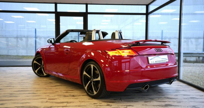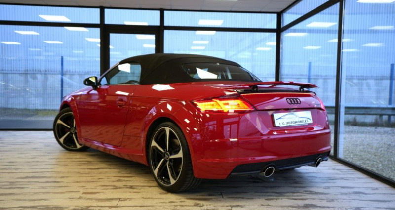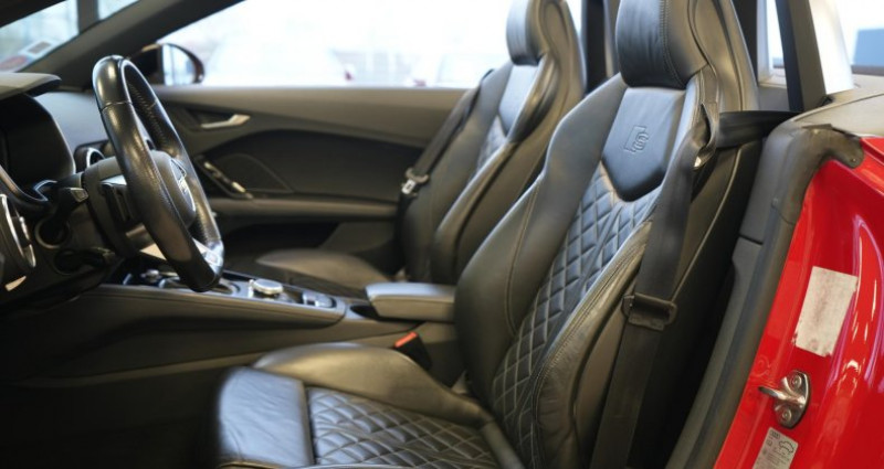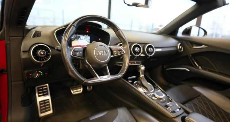 ======= OPTIONS ======= Advanced Key : système d'autorisation d'accès et de démarrage main libre Applications Piano laqué noir des éléments de l'habitacle de couleur Audi connect en combinaison avec la Navigation MMI plus avec MMI Touch Audi Parking System Plus Audi Phone Box Bang & Olufsen Sound System Caméra de recul Chauffage des sièges avant Jantes en aluminium coulé style blade 5 branches, noir brillant, pneus 245 35 R19 Ouvre-porte de garage (HomeLink) Pack brillance noir Audi Exclusive Pack Cuir Pack Eclairage Pack extérieur S line Peinture métallisée ou nacrée Phares Audi Matrix LED Selleries en cuir Nappa fin pour sièges Sport S en noir ou gris rotor, chacune avec estampillage S sur le dossier des sièges avant Sièges électriques pour sièges Sport S avec réglage de la hauteur d'assise, de la longueur, de l'inclinaison de l'assise et du dossier ======= EQUIPEMENTS DE SERIE ======= Affichage du contrôle de la pression des pneumatiques Aileron arrière, télescopique, commande automatique ou manuelle par bouton à partir de 120 km h Airbags grand volume pour le conducteur et le passager Airbags latéraux à l'avant, avec airbags de tête Applications décoratives en aluminium brossé mat Appui lombaire à 4 axes avec réglage électrique, pour les sièges conducteur et passager avant, réglage horizontal et vertical Arceau de sécurité avec revêtement style aluminium ASR : antipatinage Assistant de freinage en cas de collision, en cas d'accident Audi Active Lane Assist Audi Drive Select Audi parking system à l'arrière Audi Singleframe, encadrement chromé de la calandre gris pierre Audi virtual cockpit, combiné d'instruments de 12,3 pouces, innovant, entièrement numérique, pour un affichage fonctionnel des informations. Commande de l'Audi virtual cockpit via le volant multifonction et le système MMI Capote acoustique entièrement automatique en noir, gris ou beige avec ciel de capote en tissu isolant 3 couches noir Carrosserie à architecture Audi Space Frame (ASF) Ceintures de sécurité : ceintures trois points à enrouleur à toutes les places, avec prétensionneurs et limiteurs de tension à l'avant Châssis avec réglage sportif Châssis Sport S line avec réglage plus dynamique des ressorts et des amortisseurs, surbaissé de 10 mm Clé à fréquence radio, verrouille et déverrouille les portes, le capot de coffre et la trappe à carburant ; incluant ouverture fermeture confort des vitres ; démarrage et arrêt du moteur par touche moteur Start Stop Climatisation automatique Confort Colonne de direction de sécurité, complète le potentiel de protection de la ceinture et de l'airbag ; réglable mécaniquement en hauteur et en profondeur Console centrale Contrôle électronique de stabilisation (ESC) avec blocage transversal électronique Coupe-vent à commande électrique Direction assistée électromécanique Direction progressive Eclairage intérieur, éclairage anti-éblouissant de l'intérieur du véhicule à LED EDS : blocage électronique de différentiel Emblême S line sur les ailes avant Feux arrière à LED, Avec feux de recul et feux arrière de brouillard intégrés Feux de freinage adaptatifs Fixation pour sièges enfants ISOFIX à l'arrière Frein de stationnement electromécanique Identification du modèle Kit de réparation de pneus Lave-essuie-glace Lunette arrière dégivrante MMI Radio, intégré dans l'Audi virtual cockpit avec commande MMI séparé, incluant le menu CAR, Lecteur CD Moulures de seuil avec inscription S line Moulures de seuil avec insert en aluminium Navigation MMI plus avec MMI touch Oeilletons de fixation dans le coffre Outillage de bord Pack aluminium étendu Pare-soleil rabattables et pivotants côtés conducteur et passager avant, avec miroir de courtoisie éclairé et occultable Pommeau du levier sélecteur de vitesses en cuir perforé noir Prise de courant 12 V dans la console centrale avant Protection antidémarrage électronique Régulateur de vitesse Rétroviseur intérieur électrochrome Rétroviseurs extérieurs électriques, escamotables et dégivrants, buses de lave-glaces chauffantes Rétroviseurs extérieurs réglables électriquement et dégivrants avec clignotants intégrés à LED, boîtiers dans la couleur de carrosserie, miroir asphérique à gauche, convexe à droite Recherche MMI, intelligente et complète par saisie de texte dans les menus Navigation, Téléphone, Radio, Médias et Véhicule ; accès direct via la fonction joystick du bouton poussoir (vers le haut) Recommandation de repos qui analyse le comportement routier au moyen de différents capteurs Sellerie S line en tissu Séquence cuir en noir avec estampillage S sur le dossier des sièges avant Sièges avant réglables en hauteur Sièges Sport à l'avant Sortie d'échappement double chromée Style aluminium étendu à l'intérieur avec pédalier et repose-pied en acier inoxydable Système antiblocage ABS avec répartiteur électronique de freinage EBV Système d'appuie-tête intégral Système de freinage à double circuit en diagonale Système Start Stop avec récupération d'énergie de freinage Témoins de non-bouclage des ceintures conducteur et passager avant Tapis complémentaires à l'avant Trappe à carburant style aluminium design caractéristique avec estampillage TT et vis apparentes Triangle de pré-signalisation Trousse de secours Vide-poches dans les contre-portes garnitures latérales et sur la console centrale Vitres athermiques teintées vertes Volant Sport S line en cuir avec multifonction style 3 branches aplati en bas, en noir (poignées de volant en cuir perforé) avec surpiqûres contrastées et emblème S line Xénon Plus Nb. Vitesses : 6 Conso Mixte : l/100