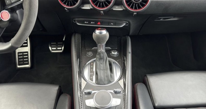 ??Garantie 12 mois Audi 1er main Malus pour la France 18.600€ POINTS FORTS ET OPTIONS • Pack Optique Noir Plus 4ZP • Audi Virtual Cockpit 9S8 • Pack Optique Noir Brillant 5L3 • Pack Optique Noir Brillant PAJ avec Anneaux Audi et Inscription Noir Brillant • Pack Cuir Étendu 7HC • Pack Design RS Étendu Rouge PEF • Pack Rangement et Coffre QE1 • Pack Éclairage QQ1 • Pack RS Essentials Allemagne WDO SYSTÈMES D'ASSISTANCE • Audi Side Assist 7Y1 • Caméra QK1 • Reconnaissance des panneaux de signalisation par caméra QR9 • Aide au stationnement Plus 7X2 • Régulateur de vitesse 8T6 • Caméra de recul KA2 • Protection renforcée des piétons VL1 MOTEUR, TRANSMISSION ET CHÂSSIS • Système Start-Stop 7L6 • Système d'alimentation en carburant Injection d'essence (tropicalisée) 1A7 • Suspension Sport Plus 1BQ Suspension magnétique Audi • 4BI EU6 AP Concept d'échappement • Moteur essence 5 cylindres D4I 25 L/294 kW (20 soupapes) (R-5) TFSI (moteur de base homogène) : TM1/T4W • TM1 Moteur essence 5 cylindres 25 L Unité 07K.4 AUDIO ET COMMUNICATION • 7UG MMI Navigation plus avec MMI touch • 9VS Système audio haut de gamme Bang & Olufsen • 9ZE Audi phone box • GB1 Compatibilité LTE pour Audi phone box • I8H MMI Navigation plus • PNQ MMI® Navigation plus • QV3 Réception radio numérique • UI2 Interface smartphone Audi • EL3 Audi connect Navigation et infodivertissement INTÉRIEUR • 3PK Sièges avant à réglage électrique avec réglage pneumatique des supports latéraux • 4A3 Sièges avant chauffants • 9AK Climatisation automatique • N1H Cuir Nappa fin Sellerie avec surpiqûres en nid d'abeille • Sièges avant Sport Plus Q4Q • Volant sport RS en cuir 2ZC avec commandes multifonctions Plus et 2 embouts de commande • Airbags conducteur et passager avant 4UF avec désactivation de l'airbag passager avant • Accoudoir central confort 6E3 à l'avant • Seuils de porte avec insert en aluminium 7M7 • Soutien lombaire 4 réglages pour les sièges avant 7P1 • Éclairage d'entrée LED avec projecteurs avant Audi Sport 9TE • Inserts en sergé carbone 5MB • Allume-cigare et cendrier 9JD • Finitions intérieures en aluminium GS3 ÉCLAIRAGE ET VISUALISATION • Phares Matrix LED 8G4 avec clignotants dynamiques • Vitres teintées VW1 • Pare-brise athermique 4GF • Rétroviseur intérieur sans cadre à atténuation automatique 4L6 • Phares LED 8IT • Capteur de luminosité/pluie 8N6 • 8Q5 Éclairage adaptatif • 8WM Éclairage d'intersection et feux toutes saisons 5SL Rétroviseur extérieur gauche asphérique 8K1 Feux de jour 8SC Feux arrière OLED ROUES • CT1 Jantes à 7 branches, noir anthracite, finition brillante, 90Jx20, pneus 255/30 R20 • 1X1 quattro • 7K1 Système de surveillance de la pression des pneus • 1G8 Kit de réparation de pneus TECHNOLOGIE ET ??SÉCURITÉ • UH2 Assistance au démarrage en côte • 4F2 Clé confort avec Safelock • PG3 Clé confort avec système d'alarme antivol • 2H6 Audi drive select • 4X3 Airbags latéraux avant et airbags rideaux • 7AL Système d'alarme antivol • 9P6 Témoin de ceinture de sécurité • VC2 Ouvre-porte de garage • UJ1 MMI tactile EXTÉRIEUR • 6XK Rétroviseurs extérieurs électriques, chauffants et rabattables. Phares à atténuation automatique des deux côtés. • 6FJ Coques de rétroviseurs extérieurs noires. • PC2 Étriers de freins rouges. • 5RU Rétroviseur extérieur droit (grand champ de vision), convexe.