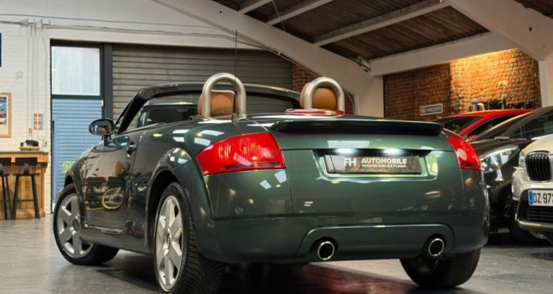 Audi TT Roadster suivie en concession et dans une remarquable condition de conservation. Véhicule vendu avec une garantie mécanique de 6 mois Motorisation: 1.8L 4 cylindres en ligne 20 soupapes turbocompressé essence Puissance fiscale: 15 cv Puissance Din: 225 ch Mise en circulation: 02/2000 Kilométrage d’origine certifié: 119 190 kms (sur factures, carnet d’entretien et vérifications faites) Nombre de portes: 2 Nombre de places: 2 Boite de vitesses: Manuelle 6 vitesses Equipements: Extérieur et Châssis 4 roues motrices Becquet Capote électrique Jantes alu 17 Lave-phares Lunette arrière dégivrante Peinture métallisée Rétroviseurs électriques Sorties d'échappement chromées Intérieur Baguettes de seuil de porte alu Boite 6 vitesses Climatisation automatique Direction assistée Éclairage intérieur temporisé Fermeture électrique Ordinateur de bord Pédalier alu Prise 12V Prise audio USB Prises audio auxiliaires Sièges chauffants Système audio MP3 Tapis de sol Vitres électriques Volant 3 branches cuir sport Volant réglable Intérieur cuir Sécurité 3e feu stop ABS Airbags Projecteurs antibrouillard ESP Autre Carnet d'entretien Factures d'entretien Non fumeur Entretien/état général: Cette Audi TT Quattro présente un superbe état de conservation. D’une configuration atypique Vert Steppe - intérieur cuir Mocassin Gant de Baseball, elle présente une carrosserie en très bel état. Ses jantes 6 branches sont également en excellente condition. L’intérieur montre aussi une très bonne conservation, les plastiques ne montrent pas de traces d’usure. Suivie avec régularité, cette TT dispose de son carnet d’entretien. Depuis sa mise en circulation, 12 révisions ont été réalisées dont 11 en concession Audi. Ce suivi connu et enregistré dans le réseau de la marque permet d’attester de la bonne conservation du véhicule et de son kilométrage. Une importante révision vient d’être effectuée chez un spécialiste, comprenant la vidange moteur et le remplacement du filtre à huile, à air et d’habitacle, ainsi que le changement des 4 bougies, du kit distribution et de la pompe à eau, du thermostat d’eau, et de l’alternateur par un neuf. Le système électrique de la capote a également été révisé. Garantie professionnelle de minimum 6 mois. Possibilité d’extension de garantie sur certains véhicules, jusque 60 mois. Financement possible de 12 à 84 mois, avec accord en moins de 24h (Selon véhicule proposé à la vente) Réalisation des démarches administratives Reprise possible de votre ancien véhicule Visites uniquement sur rdv 6 jours sur 7 Contactez-nous par téléphone ou par message pour prendre rendez-vous FH AUTOMOBILE 153 Rue Jean Jaurès, 59250 HALLUIN TEXTE SOUS RÉSERVE D'ERREURS TYPOGRAPHIQUES ET NON CONTRACTUEL