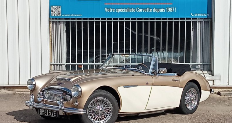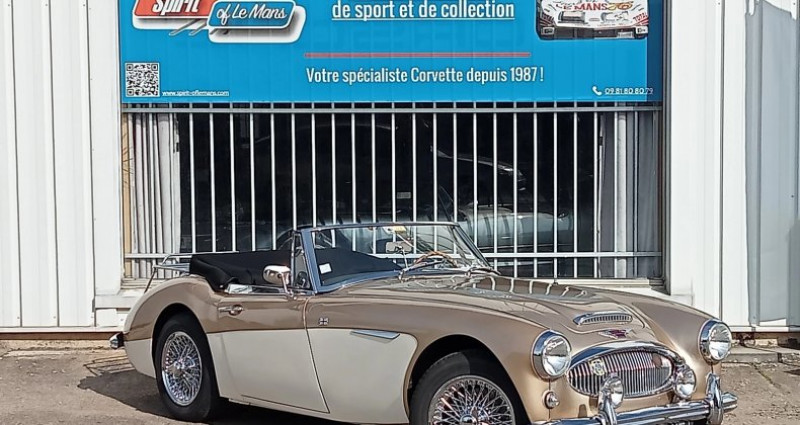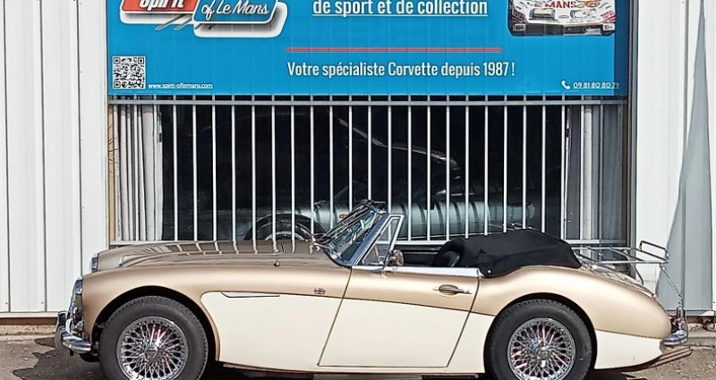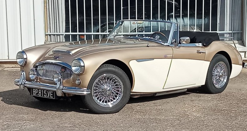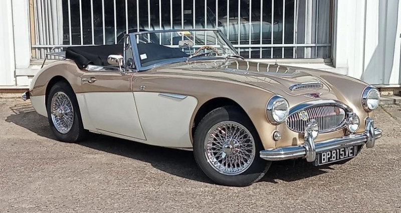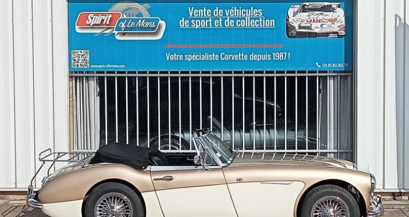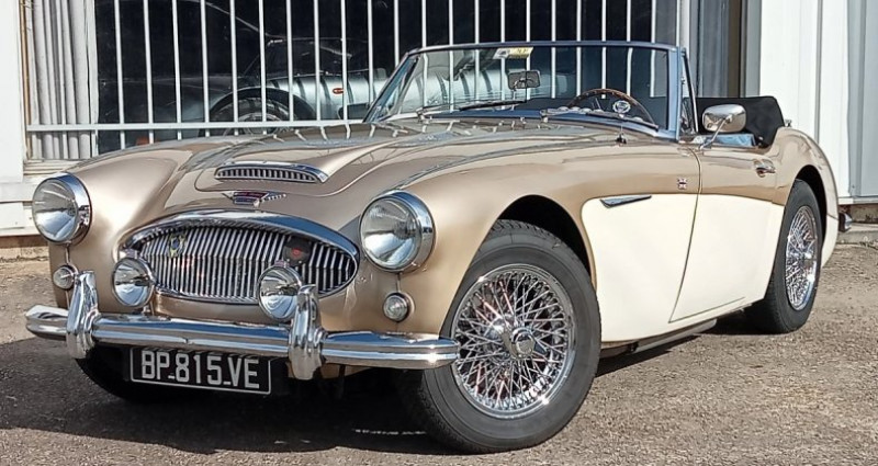 Austin Healey BJ7 3000 MK2 1962, 6 cylindres 3000cc 132cv, boite manuelle 4 + overdrive, surnommé Big Healey, 4 places 2+2, roues fils chromées, volant bois, porte bagages, sellerie cuir, couvre capote alpaga, radio. Feux additionnels, peinture bi-ton Golden Beige flanc blanc. Dossier de factures et expertise. Données supplémentaires - - Direction assistée: Non - Jantes: Classiques - Auto-radio: Oui - Intérieur: Cuir - Volant de direction