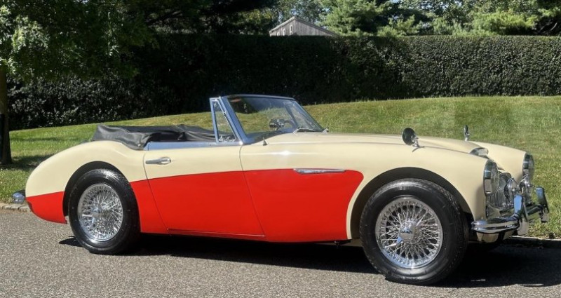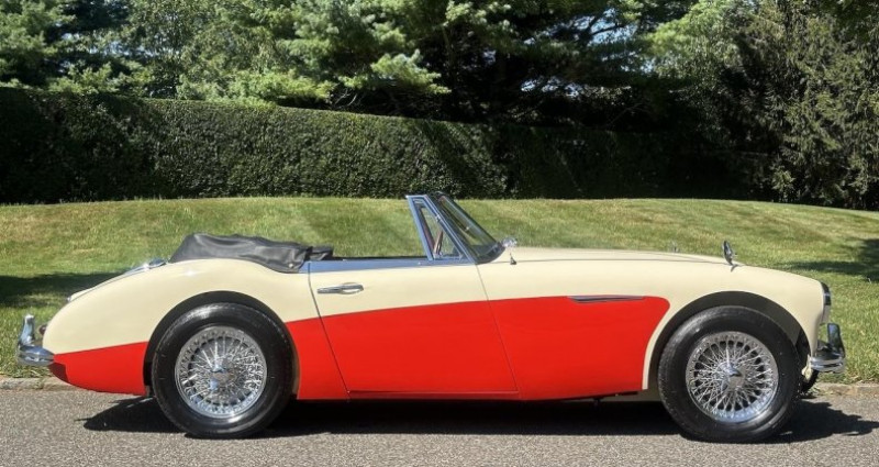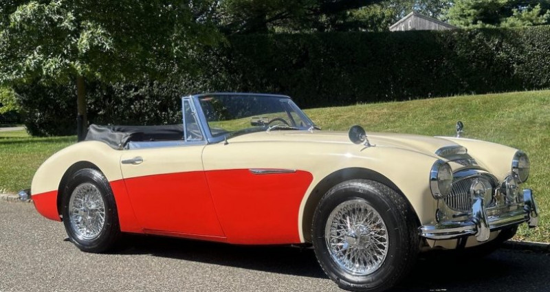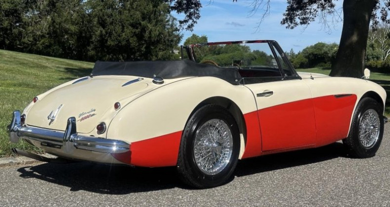 L'annonce décrit un Austin Healey 3000 Mark III BJ8 Cabriolet de 1964, complètement restauré dans ses couleurs d'origine, ivori avec des cales et un intérieur rouge. Ce véhicule est doté de numéros complètement originaux. Il est livré avec les manuels originaux, un certificat d'héritage et un dossier de maintenance impressionnant. Le véhicule a été entièrement réglé par notre département technique et court à merveille. Les options de fabrication incluent des roues en acier, une boîte de vitesses automatique, un chauffage, une colonne de direction réglable, des pneus en roues blanches et un couvre-caisse noir. Il est doté de tous les documents originaux et d'un dossier de service impressionnant.. Ce descriptif est basé sur les éléments communiqués par le propriétaire avec un traitement assisté. Merci pour votre indulgence en cas de formulation perfectible. Provenance : New York. Disponibilité : 7 semaines, clés en main. 82 000 € tout compris (importation, taxes, procédure d'immatriculation). Annonce publiée le 12/10/2025
