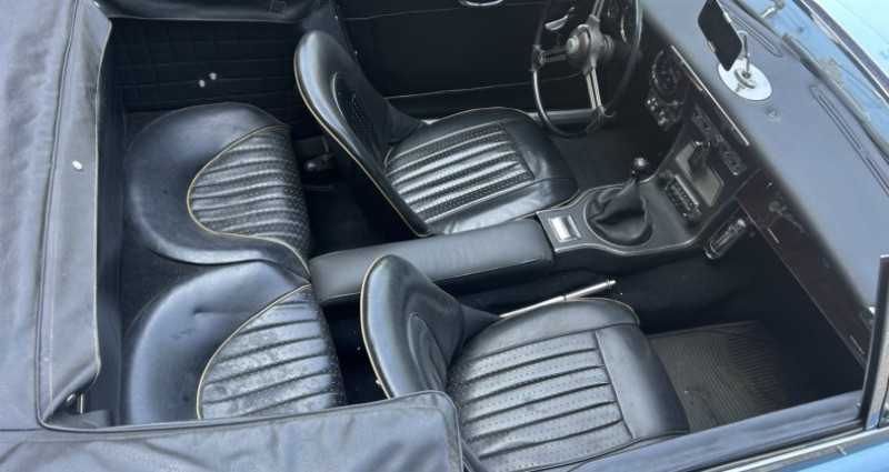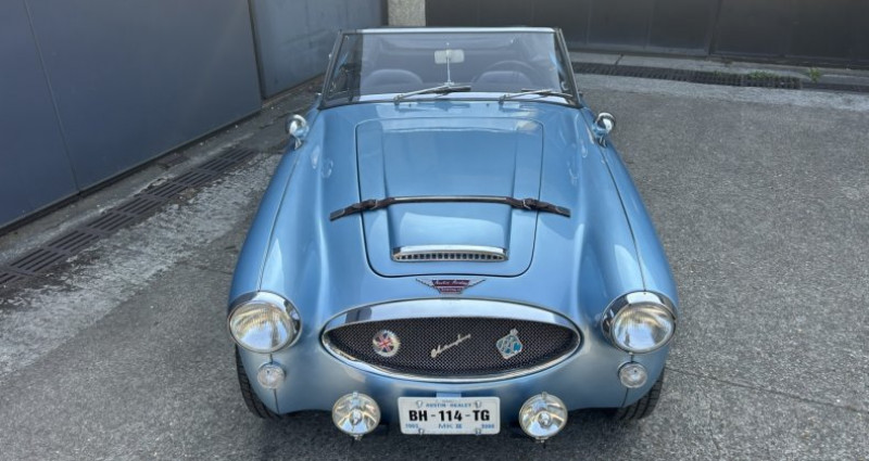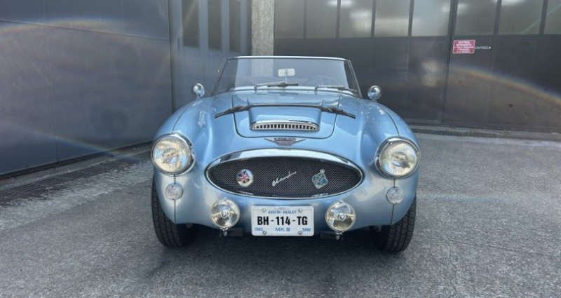 Boite de Vitesse : 4 vitesses + OverDrive Moteur : 6 cylindres Conduite : Gauche Historique du modèle : L’Austin Healey 3000 est une voiture de loisirs sportifs construite entre 1959 et 1967 par Jensen Motors pour Austin Healey. Les spécialistes la surnomment « Big » en référence à son moteur six cylindres de 3 litres. La 3000 MK III est très appréciée pour son confort, sa finition soignée avec un tableau de bord en bois et des glaces montantes. Elle offre également de meilleures performances, atteignant 148 chevaux grâce aux carburateurs SU HD8 et à un nouvel arbre à cames. Austin Healey a remporté de nombreux succès en rallye, notamment dans les Alpes. Des pilotes renommés tels que Carroll Shelby, Vic Elford, Pat Moss et Timo Mäkinen ont pris le volant. De nos jours, des passionnés continuent de l’utiliser en course. Historique de cette Austin Healey BJ8 : Vendue neuve au États Unis en 1965. Puis importée en France en 2010. En 2011 son avant dernier propriétaire en fit l'acquisition et décida de la restaurer intégralement jusqu'en 2015, un grand dossier photos vient avec la voiture. En 2017 son dernier propriétaire l'acheta et la conserva jusqu'à aujourd'hui. Carrosserie : Ice blue elle possède une belle carrosserie, avec de bons ajustements de portes et de capot ainsi que la malle de coffre. Une sangle en cuir sur le capot et la calandre ont été ajoutées. Sellerie : La sellerie en simili noir à été refaite dans sa configuration d'origine en simili noire. L'ensemble est propre, elle est équipée aujourd'hui de sa vieille capote, mais une en toile en alpa bleu marine est prête à être installée. Moteur : Son moteur 6 cylindres 3 litres vient avec un gros dossier de facture présentant l'ensemble du travail réalisé. La pression d'huile et les compressions sont bonnes. Boite de vitesses : Boite de vitesse avec overdrive, excellent état de fonctionnement. Aucun jeu, les vitesses passent bien. Trains roulant : Le train avant est stable, très bonne tenue de route. Le comportement est parfait. Il n'y a aucun jeu ou bruit relevés. La suspension est parfaite. Équipée de 2 freins à disques à l'avant pour une plus grande efficacité de freinage. Prix de vente : 69.000€