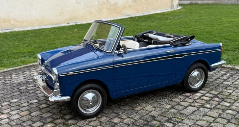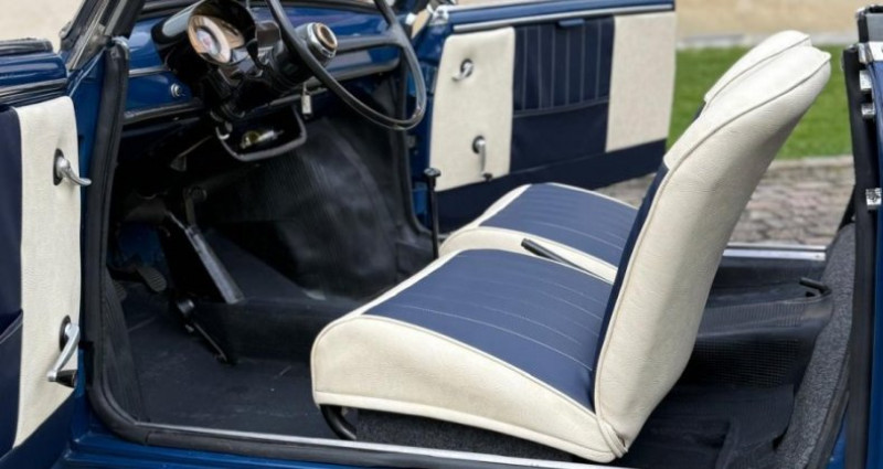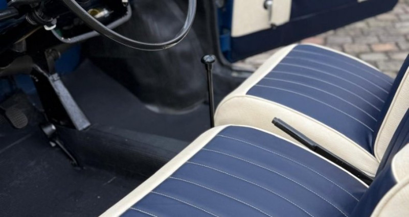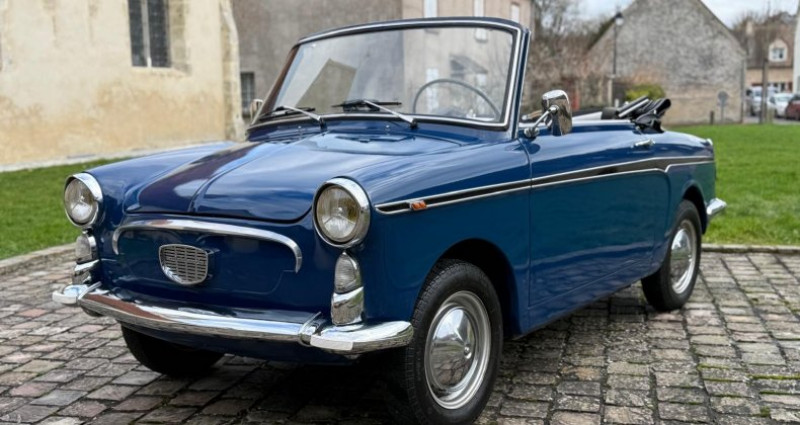 Ce plus petit cabriolet du monde a été fiabilisé par nos équipes - Son moteur 004 d'origine affiche seulement 59180 kms. Dans sa teinte bleue nuit d’origine mais trés peu produite. Ses chromes sont en parfait état, sa sellerie a été faite sur mesure par nos ateliers, un bleu nuit pour rappeler sa carrosserie et une touche élégante de de crème pour lui donner un aspect plus luxueuse. Une petite voiture prête à rouler. De petits accessoires intéressants peuvent se rajouter en option comme le porte bagages et le klason volant chromé... Historique connu, véhicule provenant du sud de la France d’un couple de octogénaire qui l’ont bichonné pendant plusieurs décennies. Avec sa peinture refaite il y a une 10 aines d’ailleurs, Car-act-ere lui a installé des chromes neufs, une sellerie neuve, des flancs blancs (non visible sur la photo), tapis neufs et une revision mécanique. ============== Historique ============== Construite à 9000 exemplaires sur une base de Fiat 500 entre 1961 et 1968, l'Autobianchi Bianchina Eden Roc se voulait être une voiture urbaine haut de gamme en Italie. Son design atypique, son élégance en font une voiture à vivre. Un style glamour que nos voisins italiens appellent la dolcé vita qui la rendra populaire aussi bien en ville que sur les stations balnéaires. Aujourd'hui, l'Autobianchi Bianchina Eden Roc est recherchée car peu de modèles sont encore en circulation (Environ 1000 exemplaires). Facile d 'entretien, agréable à la conduite, ce plus petit cabriolet du monde 4 places en fait un objet d'art et de plaisir...Je suis intéressé(e)