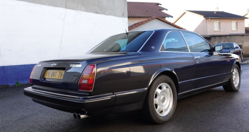 Services optionnels : Livraison possible dans toute la France. Extension de garantie jusqu'à 12 mois. expertise du véhicule Chapitre 1: Le modèle Depuis l'arrêt de la délirante Camargue en 1986, il n'existe plus, au sein des marques Rolls Royce et Bentley, de modèle coupé 2 portes. Il faut attendre 1991 pour retrouver une « fixed head coupé » et cette fois-ci le modèle est badgé Bentley. Elle est baptisée Continental R, et offre, en plus d'un lot d’innovations techniques importantes, une véritable exclusivité puisque elle ne partage aucun élément de carrosserie avec les autres modèles des gammes Rolls Royce et Bentley. L'attente est très largement récompensée, avec un dessin sublime, bien loin des lignes massives des berlines de la marque. Les formes arrondies renvoient à la légendaire Continental R des années 50, sans pour autant succomber au néo-rétro. Le design de la Continental R représente l'incarnation d'un dessin réussi. 35 ans après son lancement, la ligne a conservé toute sa prestance et son élégance. Sur le plan mécanique, on retrouve les composants de la Turbo R, avec le gigantesque V8 de 6750 cm3 dopé par un non moins gigantesque turbocompresseur. L'inépuisable force du moteur étant transmise aux roues par l'excellente boite 4L80, d'origine Général Motors, dont les 4 rapports s'égrènent dans la plus grande douceur. D'abord présentée avec une puissance d'environ 325 chevaux (chiffre non officiel, le tradition maison étant de ne jamais diffuser les chiffres de puissance), la Continental R évolue au fil du temps, afin d'en offrir toujours plus à ses riches acquéreurs. Après le châssis 50000, soit pour l'année modèle 1994, le moteur évolue très largement pour atteindre environ 360 chevaux, grâce notamment à une refonte totale de l'admission, de l'allumage et de l'injection. A l'ouverture du capot, distingue très facilement l'ancien moteur, doté d'une injection mécanique bosch, du nouveau qui est désormais entièrement caréné. C'est cette évolution que nous avons le plaisir de proposer. Chapitre 2: L'histoire de cette Continental R Nous disposons d'un historique documenté depuis les 20 ans dernières années. A l'époque, elle était immatriculée en Grande Bretagne, au nom d'un jouer de rugby international: Anthony Copsey. En décembre 2006, elle fut achetée par son dernier propriétaire au garage Continental automobile de Villeneuve sur lot. Elle avait alors 101059 kms, et un prix de vente de 65 000€ fut conclu. En tant que collectionneur de belles automobiles, le dernier propriétaire a prit soin de sa Bentley, comme en atteste l'important dossier de factures. Nous l'avons acheté l'été dernier, et avons effectué des travaux de remise à niveau. Chapitre 3 :Aux rayons X Il va sans dire que, si nous l'avons acheté, c'est que cette Bentley est un bel exemplaire. Elle méritait toutefois quelques travaux, que nous avons effectué. Il serait ici trop long de tout énumérer, mais les opérations ont porté sur la révision du circuit d'injection, des freins et des asservissements électrique. Le détail des travaux sera naturellement communiqué au futur acquéreur. Un lustrage complet a été effectué afin de parfaire la présentation, la carrosserie ne présente pas de défauts importants. L'inspection n'a relevé aucune trace d'accident important ou de rouille. La sellerie est en très bel état, on relève simplement les défauts de cuir rétracté sur la partie centrale du tableau du bord, et les coques d'appuie tête arrière. Défauts très peu visibles, et présents sur toutes les Continental R. Les boiseries sont également en bon état. On note de légères fissures sur le vernis de la boiserie de la porte conducteur. La encore, rien de très visible, ni anormal pour un véhicule de plus de 30 ans. Le tableau de bord est parfait. Sur la route, cette Continental R fonctionne remarquablement bien. Le moteur répond instantanément, et la boite n'a rien perdu de sa douceur. Direction et trains roulants font oublier le poids de cette imposante auto. Quant au freinage, grâce aux travaux que nous avons effectué, il ne souffre d'aucun reproche. L'ensemble des équipements fonctionnent. Le système audio est resté entièrement d'origine. Il fonctionne, mais mériterait une actualisation pour les mélomanes. Enfin, double de clé et livrets de bord sont présents. Chapitre 4: Son avenir Cette Continental R est une belle opportunité d'acquérir un modèle en parfait état de fonctionnement. Son état d'usage la rend utilisable sans arrière pensée. Mention spéciale sur sa rare configuration full black, que nous apprécions particulièrement. Chapitre 5 : En images Nous vous invitons à découvrir en images cette Bentley Continental R