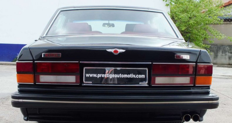 Services optionnels : Livraison possible dans toute la France. Extension de garantie jusqu'à 12 mois. expertise du véhicule Chapitre 1: Le modèle Depuis 1965 et la sortie de la Silver Shadow, il n'existe plus de Bentley à proprement parler. En effet, si le gentleman driver fortuné pouvait encore se tourner vers les splendides Bentley Flying Spur ou Continental dans les années précédentes, la Bentley T1 n'est plus q'une Silver Shadow grée d'une calandre différente. Au salon de Genève 1982, Bentley crée la surprise qu'on n'attendait plus: la sortie d'un vrai modèle à part entière: la Mulsanne Turbo. Si l'aspect extérieur reste très proche de sa cousine Silver Spirit, la calandre bon marché, mais aussi et surtout nettement mieux profilée, permet de gagner l'équivalent de 35 chevaux. Le bon vieux 6 trois quart se voit greffer un énorme turbocompresseur Garett. Les ingénieurs maison réussissent le tour de force de le faire totalement oublier. En effet, il serait de mauvais aloi de secouer l'équipage comme dans une vulgaire 911 turbo. Alimenté par un carburateur, la consommation est gargantuesque, mais les performances sont au rendez-vous, tout comme le succès. Rolls Royce décide de pousser le développement, et présente, en 1985, la Turbo R, pour Road Holding, littéralement tenue de route. Si la Mulsanne n'avait qu'un moteur puissant, la Turbo R offre en plus des capacités routières extraordinaires. Aucune autre limousine de luxe n'avait offert de telles performances routières jusqu'à alors. Une suspension pilotée fut conçue spécifiquement, et Avon développa un pneumatique en 255 65 15 capable de supporter les contraintes inimaginables d'un poids lourd de 2500 kgs lancé à plus de 220 kms par heure. L'apport de l'injection permet de réduire de manière drastique la consommation de carburant. Comme d'habitude, la vénérable maison ne donne aucun chiffre de puissance, qu'on estime à environ 320 chevaux. Au delà de ce chiffre relativement modeste, c'est le couple, largement supérieur à 600 Newton Mètres, qui fait toute la voiture. Insensible à la charge, insensible au relief, le moteur donne l'impression d'une génératrice, que rien ne semble pouvoir stopper. Le style extérieur s'affirme, avec un kit carrosserie spécifique, et 4 phares menaçants. On imagine facilement ces derniers clignoter, sur la file de gauche de l'autoroute, pour faire place libre, et laisser derrière le lambda et sa banale BMW... Pour parfaire le tout, et justifier un prix qui permet de s'offrir une collection de Mercedes, l'intérieur est spécifique. La planche de bord se marie à une superbe console, et l'instrumentation embarque un système de contrôle électronique des fonctions du véhicule, avec un afficheur multifonction, chargé d'informer le pilote du moindre dysfonctionnement. La Turbo R conjugue de la meilleure manière qui soit sportivité, technologie, luxe et tradition. Fidèle au dogme de Sir Henry Royce, les ingénieurs de Crewe feront évoluer en permanence la Turbo R, sans jamais la révolutionner. Ainsi, si l'aspect extérieur ne changera que très peu jusqu'à la fin de production, la mécanique évoluera régulièrement, et dans d'importantes proportions. Ainsi, à partir de 1992, la boite automatique passe de 3 rapports à 4, et gagne une gestion électronique. La plus grosse évolution portera sur les modèles 95. Au programme, gestion moteur Zytec, et refroidissement de la suralimentation par un intercooler. Déjà usine à gaz, le V8 turbocompressé se transforme en centrale nucléaire. Tellement d'éléments sont ajoutés au moteur que les ingénieurs opteront pour un cache en plastique pour masquer tuyauteries, conduits et divers câblages. Il n y a tellement plus de place, qu'on a frôlé un bossage du capot! Ainsi grée, on estime la puissance à environ 385 chevaux. Il s'agira de l'ultime évolution mécanique, quelques modifications d'ordre esthétique interviendront pour les dernières versions (suppression des déflecteurs sur les vitres avant, nouveaux rétroviseurs, pare choc plus enveloppants, roues plus grandes...), et quelques séries spéciales pour écouler les derniers châssis produits en 1997. Chapitre 2 : L'histoire de cette Bentley Turbo R Sortie d'usine en Avril 1991, cet exemplaire fut commandé pour les émirats, mais il semblerait qu'il n'y fut jamais expédiée. Nous ignorons le pays de première immatriculation, la première immatriculation française datant de 2003. Le carnet de service est tamponné à partir de 2002, à 92000 kms, par le concessionnaire Bentley de Monaco. De 2003 à 2018, la voiture est restée entre les mains du même propriétaire, sur la Côte d'Azure. Nous l'avons acheté une première fois en juin 2018, puis, après une importante révision, nous l'avons rapidement revendue à l'un de nos clients, elle avait alors 101 mkms. Depuis, nous avons suivi l'entretien de la voiture, et l'avons revendu deux fois. En 2024, d'importants travaux ont été réalisé, avec notamment la révision de la crémaillère de direction et des conjoncteurs, le remplacement des joints des caches culbuteurs, et la pose d'une commande de verrouillage des portes à distance. Chapitre 3 : Aux rayons X Autant dire que nous connaissons parfaitement cet exemplaire. Son remarquable état de conservation témoigne du soin apporté à cette Bentley qui vient de fêter ses 35 ans. La présentation extérieur est très bonne, sans défaut majeur, la peinture Ebony tranche magnifiquement avec la sellerie Saint James Red. Le très rare toit Everflex est irréprochable. L'intérieur de cette Turbo R est un pure ravissement, le cuir rouge ayant magnifiquement traversé les années, avec juste ce qu'il faut de patine. Les moquettes sont impeccables, les sur tapis en haute laine sont présents, et également en très bon état. Le ciel de toit en cuir assorti à la sellerie constitue un point d'orgue aussi rare qu'élégant. Les boiseries