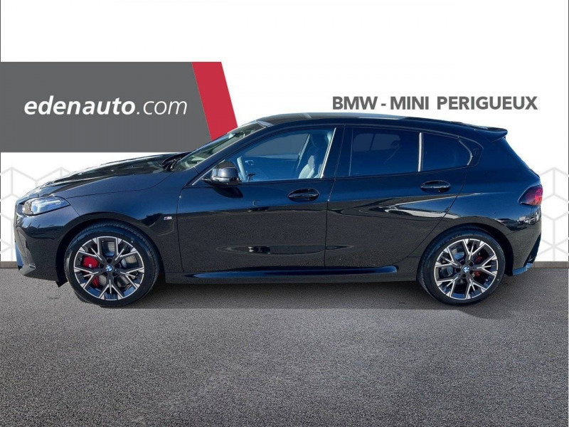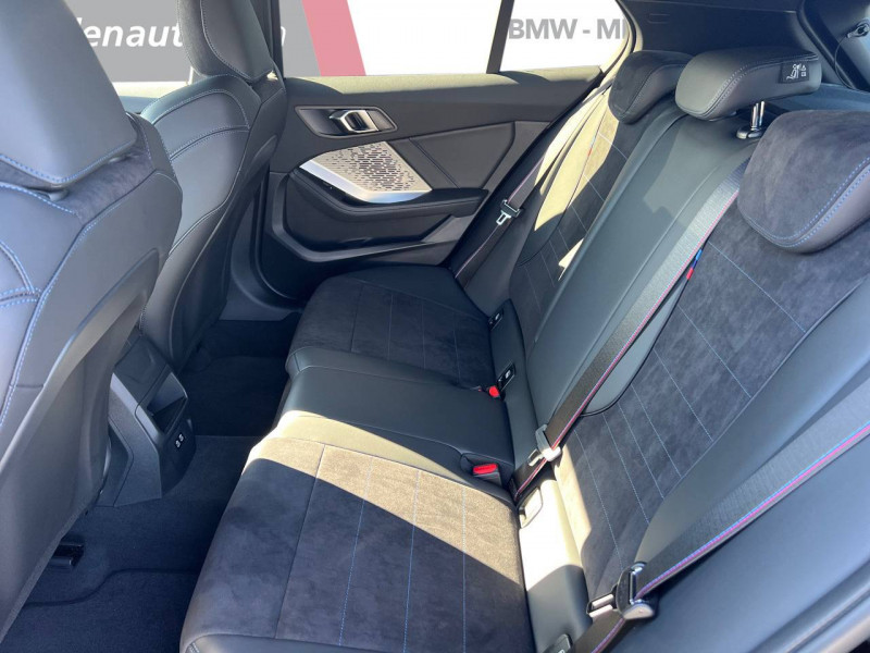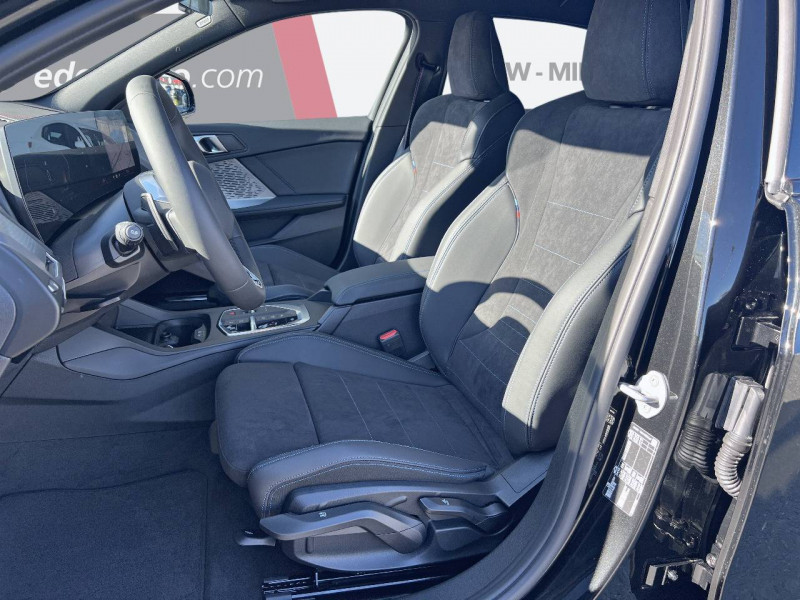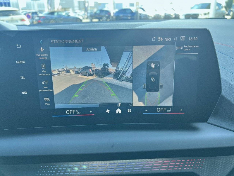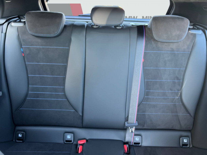2 porte-gobelets sur la console centrale / 2 ports USB Type C dans la console centrale + 2 à l'AR / 3ème feu stop à LED sur la lunette AR / Accoudoir central AV avec compartiment de rangement / Active Guard - Avertissement de sortie de voie - Avertissement de collision frontale avec intervention sur les freins - Avertissement de virage à gauche (véhicule) avec fonction de freinage - Indicateur de limitation de vitesse - Assistant d'évitement / Airbags de tête AV et aux places latérales AR / Alarme antivol / Appel d'Urgence Intelligent (durée de vie de la voiture) Appel automatique vers le centre d'assistance BMW en cas d'accident. Touche SOS pour Appel d'Urgence manuel. Les données importantes sont automatiquement transmises aux secours : identification et localisation de la voiture, nombre de passagers à bord, statuts des airbags. Ce service utilise la carte SIM montée d'usine et ne requiert pas l'utilisation du smartphone. / Appuis-tête et ceintures de sécurité 3 points à toutes les places / BMW Curved Display / BMW Intelligent Personal Assistant / BMW Live Cockpit Navigation Plus / BMW "My Modes" (Personal/ Efficient/ Sport) / Boîte de vitesses automatique avec palettes à double embrayage DKG7 à 7 rapports / Calandre avec encadrement en chrome et barreaux verticaux / diagonaux / Capteurs d'impact - Activation de l'airbag, des feux de détresse, de l'éclairage intérieur - Déverrouillage des portes et légère ouverture des vitres / Ciel de pavillon M Anthracite / Compartiment à bagages : 2 crochets de sac, filet sur panneau droit / Contrôle de stabilité dynamique (DSC) avec dotation élargie - Assistant de démarrage en côte - Assistant dynamique de motricité (DTC) / Désignation du modèle à droite du hayon / Détecteur d'accident (crash sensor) - Allume les feux de détresse - Déverouillage des portes / Détecteur de pluie et allumage automatique des projecteurs / Déverrouillage électrique du coffre via la volet de coffre ou la clé radiocommandée / Driving Assistant - Avertisseur de franchissement de ligne (>70km/h avec vibrations dans le volant) - Avertisseur d'angle mort (>20km/h avec voyant d'alerte) - Avertisseur de risque de collision AV (>15km/h, préconditionnment du freinage >50km/h, assistance au freinage) - Avertisseur de risque de collision AR (déclenchement automatique des warning) - Avertisseur de trafic transversal AR (Avertisseur en cas de circulation transversale détectée derrière la voiture) / Eclairage de bienvenue autour du véhicule / Eclairage de plaque d'immatriculation à LED / Eclairage intérieur - Lampes de courtoisie - Eclairage habitacle AV et AR, y compris éclairage d'ambiance - Eclairage coffre à bagages sur le coté droit - Eclairage intérieur du compartiement de rangement dans l'accoudoir central - Lampes de lecture à l'AV et à l'AR - Eclairage plancher AV et AR / Eléments extérieurs M Sport / Eléments extérieurs (poignées de portes, baguettes de pare-chocs et de toit) couleur carrosserie / Eléments intérieurs M Sport / Fonction Start&Stop avec système prédictif via la navigation / Inserts décoratifs Aluminium Graphite illuminés / Jantes en alliage léger 18" style 975 M, à rayons doubles, bicolores Midnight Grey 8 J x 18 / pneus 225/45 R18.Comprennent écrous de roues antivol. Montage chaînes à neige impossible. / Kit de mobilité BMW Bouteille de mastic pour pneumatiques - compresseur électrique 12 V (connexion à une prise 12V) / Mesure individuelle de pression des pneumatiques avec 3 niveaux / Moteur TwinPower Turbo essence 3 cylindres -Turbocompresseur - Valvetronic (modification de la profondeur d'ouverture des soupapes d'admission) - Double VANOS (système de distribution variable) - Technologie BMW High Precision Injection - Filtre à particules / Parking Assistant - Caméra de recul - Manoeuvres de stationnemment automatique en créneau et en bataille - Freinage automatique (PDC actif) en marche AR - Assistant de marche AR/Auto-reverse / Personal eSIM Personal eSIM est la version électronique, intégrée au véhicule, de la carte SIM traditionnelle. Vous l'utilisez via un abonnement souscrit auprès d'un opérateur téléphonique et transformez ainsi votre BMW en périphérique mobile supplémentaire : - La BMW sera ajoutée au contrat du téléphone mobile du client en tant qu'appareil supplémentaire - Connectivité 5G - Les appels téléphoniques ou les connexions de données ne nécessitent pas la présence physique du téléphone portable privé / Prise 12 V dans la console centrale / Régulateur de vitesse avec fonction de freinage dans les descentes / Régulateur de vitesse avec fonction de freinage et limiteur de vitesse / Rétroviseurs extérieurs couleur carrosserie avec rappels de clignotants intégrés / Sellerie Alcantara / Similicuir Veganza Schwarz avec surpiqûres bleues / Services Après-vente connectés BMW Teleservices (durée de vie de la voiture) / Shadow Line M brillant Entourage des vitres latérales, les baguettes de bas de glace, les montants centraux ainsi que les pourtours, pieds et triangles des rétroviseurs extérieurs en noir brillant / Sorties d'échappement non visibles / Suspension Adaptive M / Système de détection de somnolence / Système Hi-Fi 6 HP / Tapis de sol anthracite / Teinte de carrosserie unie / Triangle de présignalisation avec kit de premiers secours / Volant M gainé cuir (avec surpiqûres noires) Trois branches. Jante en cuir noir 'Walknappa', inserts chrome perlé et repose-pouce dans le volant. Logo M sur la base du volant