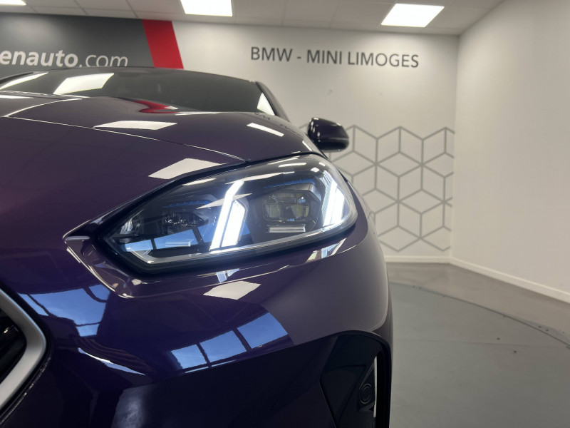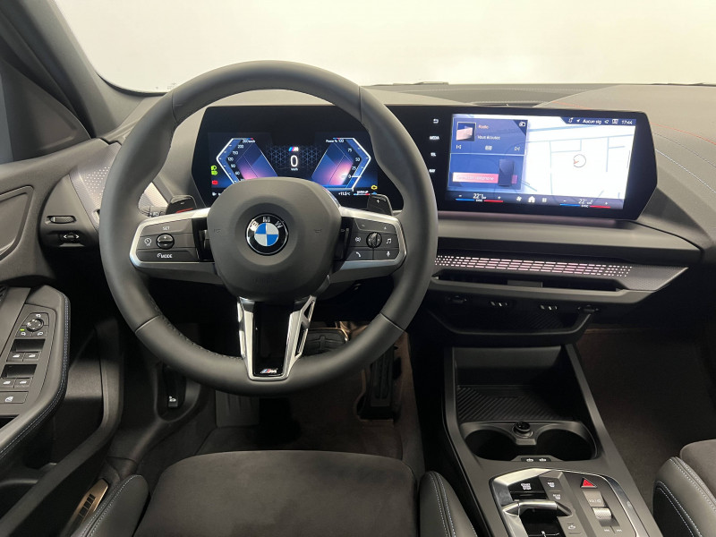 2 porte-gobelets sur la console centrale / 2 ports USB Type C dans la console centrale + 2 à l'AR / 3ème feu stop à LED sur la lunette AR / Accoudoir central AV avec compartiment de rangement / Active Guard - Avertissement de sortie de voie - Avertissement de collision frontale avec intervention sur les freins - Avertissement de virage à gauche (véhicule) avec fonction de freinage - Indicateur de limitation de vitesse - Assistant d'évitement / Airbags de tête AV et aux places latérales AR / Alarme antivol / Appel d'Urgence Intelligent (durée de vie de la voiture) Appel automatique vers le centre d'assistance BMW en cas d'accident. Touche SOS pour Appel d'Urgence manuel. Les données importantes sont automatiquement transmises aux secours : identification et localisation de la voiture, nombre de passagers à bord, statuts des airbags. Ce service utilise la carte SIM montée d'usine et ne requiert pas l'utilisation du smartphone. / Appuis-tête et ceintures de sécurité 3 points à toutes les places / BMW Curved Display / BMW Intelligent Personal Assistant / BMW Live Cockpit Navigation Plus / BMW "My Modes" (Personal/ Efficient/ Sport) / Boîte de vitesses automatique avec palettes à double embrayage DKG7 à 7 rapports / Calandre avec encadrement en chrome et barreaux verticaux / diagonaux / Capteurs d'impact - Activation de l'airbag, des feux de détresse, de l'éclairage intérieur - Déverrouillage des portes et légère ouverture des vitres / Ciel de pavillon M Anthracite / Compartiment à bagages : 2 crochets de sac, filet sur panneau droit / Contrôle de stabilité dynamique (DSC) avec dotation élargie - Assistant de démarrage en côte - Assistant dynamique de motricité (DTC) / Désignation du modèle à droite du hayon / Détecteur d'accident (crash sensor) - Allume les feux de détresse - Déverouillage des portes / Détecteur de pluie et allumage automatique des projecteurs / Déverrouillage électrique du coffre via la volet de coffre ou la clé radiocommandée / Driving Assistant - Avertisseur de franchissement de ligne (>70km/h avec vibrations dans le volant) - Avertisseur d'angle mort (>20km/h avec voyant d'alerte) - Avertisseur de risque de collision AV (>15km/h, préconditionnment du freinage >50km/h, assistance au freinage) - Avertisseur de risque de collision AR (déclenchement automatique des warning) - Avertisseur de trafic transversal AR (Avertisseur en cas de circulation transversale détectée derrière la voiture) / Eclairage de bienvenue autour du véhicule / Eclairage de plaque d'immatriculation à LED / Eclairage intérieur - Lampes de courtoisie - Eclairage habitacle AV et AR, y compris éclairage d'ambiance - Eclairage coffre à bagages sur le coté droit - Eclairage intérieur du compartiement de rangement dans l'accoudoir central - Lampes de lecture à l'AV et à l'AR - Eclairage plancher AV et AR / Eléments extérieurs M Sport / Eléments extérieurs (poignées de portes, baguettes de pare-chocs et de toit) couleur carrosserie / Eléments intérieurs M Sport / Fonction Start&Stop avec système prédictif via la navigation / Inserts décoratifs Aluminium Graphite illuminés / Jantes en alliage léger 18" style 975 M, à rayons doubles, bicolores Midnight Grey 8 J x 18 / pneus 225/45 R18.Comprennent écrous de roues antivol. Montage chaînes à neige impossible. / Kit de mobilité BMW Bouteille de mastic pour pneumatiques - compresseur électrique 12 V (connexion à une prise 12V) / Lève-vitres AV et AR / Mesure individuelle de pression des pneumatiques avec 3 niveaux / Moteur TwinPower Turbo essence 3 cylindres -Turbocompresseur - Valvetronic (modification de la profondeur d'ouverture des soupapes d'admission) - Double VANOS (système de distribution variable) - Technologie BMW High Precision Injection - Filtre à particules / Parking Assistant - Caméra de recul - Manoeuvres de stationnemment automatique en créneau et en bataille - Freinage automatique (PDC actif) en marche AR - Assistant de marche AR/Auto-reverse / Personal eSIM Personal eSIM est la version électronique, intégrée au véhicule, de la carte SIM traditionnelle. Vous l'utilisez via un abonnement souscrit auprès d'un opérateur téléphonique et transformez ainsi votre BMW en périphérique mobile supplémentaire : - La BMW sera ajoutée au contrat du téléphone mobile du client en tant qu'appareil supplémentaire - Connectivité 5G - Les appels téléphoniques ou les connexions de données ne nécessitent pas la présence physique du téléphone portable privé / Prise 12 V dans la console centrale / Régulateur de vitesse avec fonction de freinage dans les descentes / Régulateur de vitesse avec fonction de freinage et limiteur de vitesse / Rétroviseurs extérieurs couleur carrosserie avec rappels de clignotants intégrés / Sellerie Alcantara / Similicuir Veganza Schwarz avec surpiqûres bleues / Services Après-vente connectés BMW Teleservices (durée de vie de la voiture) / Shadow Line M brillant Entourage des vitres latérales, les baguettes de bas de glace, les montants centraux ainsi que les pourtours, pieds et triangles des rétroviseurs extérieurs en noir brillant / Sorties d'échappement non visibles / Suspension Adaptive M / Système de détection de somnolence / Système Hi-Fi 6 HP / Tapis de sol anthracite / Teinte de carrosserie unie / Triangle de présignalisation avec kit de premiers secours / Volant M gainé cuir (avec surpiqûres noires) Trois branches. Jante en cuir noir 'Walknappa', inserts chrome perlé et repose-pouce dans le volant. Logo M sur la base du volant