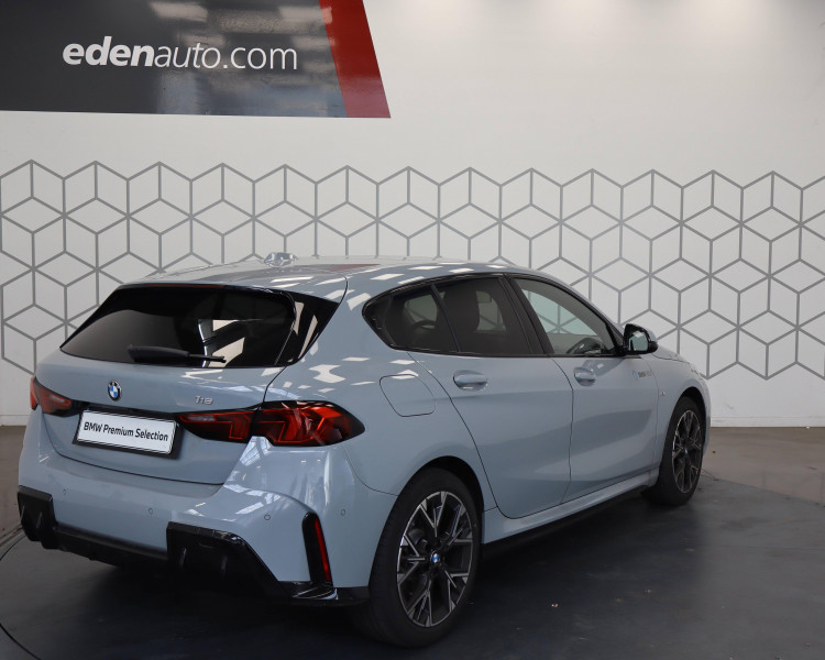2 porte-gobelets sur la console centrale / 2 ports USB Type C dans la console centrale + 2 à l'AR / 3ème feu stop à LED sur la lunette AR / Accoudoir central AV avec compartiment de rangement / Active Guard - Avertissement de sortie de voie - Avertissement de collision frontale avec intervention sur les freins - Avertissement de virage à gauche (véhicule) avec fonction de freinage - Indicateur de limitation de vitesse - Assistant d'évitement / Airbags de tête AV et aux places latérales AR / Alarme antivol / Appel d'Urgence Intelligent (durée de vie de la voiture) Appel automatique vers le centre d'assistance BMW en cas d'accident. Touche SOS pour Appel d'Urgence manuel. Les données importantes sont automatiquement transmises aux secours : identification et localisation de la voiture, nombre de passagers à bord, statuts des airbags. Ce service utilise la carte SIM montée d'usine et ne requiert pas l'utilisation du smartphone. / Appuis-tête et ceintures de sécurité 3 points à toutes les places / BMW Curved Display / BMW Intelligent Personal Assistant / BMW Live Cockpit Navigation Plus / BMW "My Modes" (Personal/ Efficient/ Sport) / Boîte de vitesses automatique à double embrayage DKG7 à 7 rapports / Calandre avec encadrement en chrome et barreaux verticaux / diagonaux / Capteurs d'impact - Activation de l'airbag, des feux de détresse, de l'éclairage intérieur - Déverrouillage des portes et légère ouverture des vitres / Compartiment à bagages : 2 crochets de sac, filet sur panneau droit / Contrôle de stabilité dynamique (DSC) avec dotation élargie - Assistant de démarrage en côte - Assistant dynamique de motricité (DTC) / Désignation du modèle à droite du hayon / Détecteur d'accident (crash sensor) - Allume les feux de détresse - Déverouillage des portes / Détecteur de pluie et allumage automatique des projecteurs / Déverrouillage électrique du coffre via la volet de coffre ou la clé radiocommandée / Driving Assistant - Avertisseur de franchissement de ligne (>70km/h avec vibrations dans le volant) - Avertisseur d'angle mort (>20km/h avec voyant d'alerte) - Avertisseur de risque de collision AV (>15km/h, préconditionnment du freinage >50km/h, assistance au freinage) - Avertisseur de risque de collision AR (déclenchement automatique des warning) - Avertisseur de trafic transversal AR (Avertisseur en cas de circulation transversale détectée derrière la voiture) / Eclairage de bienvenue autour du véhicule / Eclairage de plaque d'immatriculation à LED / Eclairage intérieur - Lampes de courtoisie - Eclairage habitacle AV et AR, y compris éclairage d'ambiance - Eclairage coffre à bagages sur le coté droit - Eclairage intérieur du compartiement de rangement dans l'accoudoir central - Lampes de lecture à l'AV et à l'AR - Eclairage plancher AV et AR / Eléments extérieurs M Sport / Eléments extérieurs (poignées de portes, baguettes de pare-chocs et de toit) couleur carrosserie / Fonction Start&Stop avec système prédictif via la navigation / Inserts décoratifs Dark Silver / Jantes en alliage léger 18" style 975 M, à rayons doubles, bicolores Midnight Grey 8 J x 18 / pneus 225/45 R18.Comprennent écrous de roues antivol. Montage chaînes à neige impossible. / Kit de mobilité BMW Bouteille de mastic pour pneumatiques - compresseur électrique 12 V (connexion à une prise 12V) / Lève-vitres AV et AR / Mesure individuelle de pression des pneumatiques avec 3 niveaux / Moteur TwinPower Turbo essence 3 cylindres -Turbocompresseur - Valvetronic (modification de la profondeur d'ouverture des soupapes d'admission) - Double VANOS (système de distribution variable) - Technologie BMW High Precision Injection - Filtre à particules / Parking Assistant - Caméra de recul - Manoeuvres de stationnemment automatique en créneau et en bataille - Freinage automatique (PDC actif) en marche AR - Assistant de marche AR/Auto-reverse / Personal eSIM Personal eSIM est la version électronique, intégrée au véhicule, de la carte SIM traditionnelle. Vous l'utilisez via un abonnement souscrit auprès d'un opérateur téléphonique et transformez ainsi votre BMW en périphérique mobile supplémentaire : - La BMW sera ajoutée au contrat du téléphone mobile du client en tant qu'appareil supplémentaire - Connectivité 5G - Les appels téléphoniques ou les connexions de données ne nécessitent pas la présence physique du téléphone portable privé / Prise 12 V dans la console centrale / Régulateur de vitesse avec fonction de freinage dans les descentes / Régulateur de vitesse avec fonction de freinage et limiteur de vitesse / Rétroviseurs extérieurs couleur carrosserie avec rappels de clignotants intégrés / Sellerie tissu "Arktur" Anthracite / Services Après-vente connectés BMW Teleservices (durée de vie de la voiture) / Shadow Line M brillant Entourage des vitres latérales, les baguettes de bas de glace, les montants centraux ainsi que les pourtours, pieds et triangles des rétroviseurs extérieurs en noir brillant / Sorties d'échappement non visibles / Suspensions standard / Système de détection de somnolence / Système Hi-Fi 6 HP / Tapis de sol anthracite / Teinte de carrosserie unie / Triangle de présignalisation avec kit de premiers secours / Volant gainé similicuir "Veganza"avec touches multifonctions