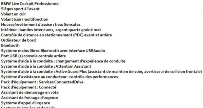 BMW Série 1 III (F40) 116dA 116ch Edition Sport DKG7 berline, noir metallisee, 6 cv, 5 portes, première mise en circulation le 10/07/2023, première main, garantie 12 mois. 5 places, contrôle technique : OK OPTIONS ET ÉQUIPEMENTS : Autres équipements et informations : - Classe Crit'air : 2 - Puissance kilowatt : 85 kw - nombre de rapports : 7 vitesses - puissance réelle : 116 ch - émission CO2 : 98 g/km Référence annonce : 1097