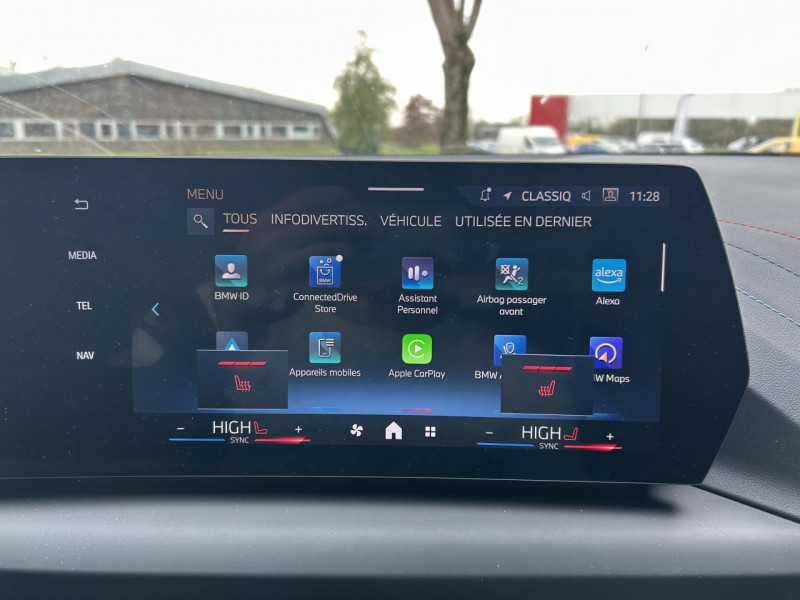 6 haut-parleurs / Active guard plus assistant d'évitementavertissement de sortie de voieavertissement de virage à gauche (véhicule) avec fonction de freinageavertisseur de collision frontale avec intervention freinageindicateur de limitation de vitesse / Attention assist : système de détection de somnolence / Bmw live cockpit navigation plus 2 ports usb-c à l'avantappel d'urgence intelligentbmw curved displayconnectivité sans fil (esim en 5g hotspot wifi)services après-vente connectés bmw teleservices (durée de vie de la / Contrôle de stabilité dynamique (dsc) avec dotation élargie / Détecteur de pluie et allumage automatique des projecteurs / Driving assistant afil (alerte de franchissement involontaire de ligne)avertisseur d'angles mortsavertisseur de risque de collision arrièreavertisseur de risque de collision avantavertisseur de trafic transversal arrière / Fonction start&stop avec système prédictif via la navigation / Pack d'éclairage intérieur eclairage de coffre à droiteeclairage des planchers avant et arrièreeclairage du bac de rangement sous l?accoudoir de la console centraleeclairage habitacle avant et arrière y compris éclairage d / Parking assistant assistant de marche arrière / auto-reversefreinage automatique de marche arrière (rab)manoeuvres de stationnement en créneau et en bataille automatiques / Prise 12v dans la console centrale / Régulateur de vitesse avec fonction freinage et limiteur de vitesse / Sellerie alcantara / veganza schwarz avec surpiqûres contrastantes bleues / Services connectés bmw digital amazon alexabmw intelligent personal assistantcarte de navigation en streaming (mise à jour en continu)connexions apple carplay et android autofonctions 'ma bmw i à distance'my modes (3 mo / Suspension adaptative m / Système hi-fi / Volant 3 branches