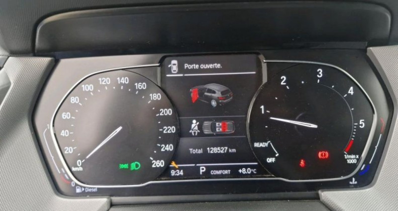 Cylindrée : 1995 cm3 Nb. Vitesse : 8 EQUIPEMENTS Véhicule en arrivage, Accoudoir central AV, Kit rangement, Siège conducteur réglable en hauteur, Verrouillage centralisé des portes du coffre et de la trappe à carburant, Feux de stop bi/intensité, Contrôle dynamique de la traction DTC, Contrôle de freinage en courbe CBC, Lève/vitres AV électriques avec commande par impulsion et protection anti/coincement, Touches multifonctions sur le volant, Tapis de sol en velours, Détecteur de pluie et allumage automatique des projecteurs, Régulateur de vitesse avec fonction freinage, Ordinateur de bord avec Check/Control et indicateur de température extérieure, Verrouillage automatique des portes dès 15 km/h environ, Rétroviseurs extérieurs à réglages électriques et dégivrants, Indicateur de limitation de vitesse, Clés radiocommandées à mémorisation automatique des réglages Personal Profile, Triangle de signalisation et trousse de 1er secours, Direction Servotronic à assistance variable en fonction de la vitesse, Eléments extérieurs (poignées de portes baguettes de pare/chocs et de toit) couleur carrosserie, Désignation du modèle, Démarrage sans clé via le bouton Start/Stop, Contrôle dynamique de stabilité DSC avec fonctionnalités étendues, Anneaux d'arrimage dans le coffre sur le seuil de chargement, Tuner DAB Inclus DAB+. Permet la réception de la radio numérique en plus de la radio analogique et offre une qualité sonore proche du CD. Des informations supplémentaires comme le titre et l'interprète sont transmises sous forme de texte. La Radio Numérique Terrestre est disponible à Paris Marseille Nice et Monaco Lille Lyon Nantes Rouen Strasbourg et Toulouse. Les stations de radio numériques sont essentiellement des stations associatives locales ou indépendantes, Boîte de vitesses automatique 8 rapports, Projecteurs antibrouillard à LED, Porte/gobelets sur la console centrale, Vide/poches ergonomiques dans les portes AV, Feux antibrouillard AR, Ecrous de roues antivol, Projecteurs AV Full LED, Feux de jour à LED, Teinte de carrosserie unie (Schwarz), Miroir asphérique côté conducteur rappel de clignotants intégrés, Mesure individuelle de pression des pneumatiques avec 3 niveaux d'alerte, Services Après/vente connectés BMW TeleServices (durée de vie de la voiture) / Appel Automatique / Appel Manuel / Appel BMW Assistance / Teleservice Battery Guard / Appel Hotline, Park Assist, Coques de rétroviseurs extérieurs couleur carrosserie, Appel d'Urgence Intelligent (durée de vie de la voiture), Inserts décoratifs Quarzsilver mat grainé, Calandre avec cadre en chrome et doubles barreaux verticaux, Contrôle de la transmission, Sellerie Tissu Grid Anthracite, Jantes en alliage léger 17 style 548 à rayons doubles bicolores Orbit Grey/Aluminium 7.5 J x 17 / pneus 225/45 R17, Eclairage d'accueil et d'accompagnement (extinction retardée des projecteurs), Préparation pour feux de route permanents anti/éblouissement, BMW Live Cockpit, Suite Pack Connected Pro, Siège passager AV réglable en hauteur, Active Guard Plus Avertissement de collision frontale avec intervention de freinage grâce à un radar et à une caméra (entre 5 km/h et 250 km/h) / Avertissement de chauvechement de ligne avec impulsion sur la direction / Assistance de limitation de vitesse avec informations de limite de vitesse, Climatisation automatique 1 zone,