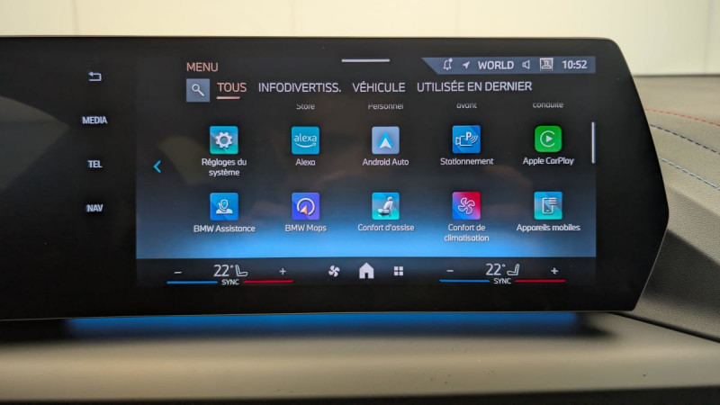 Eléments extérieurs (poignées de portes, baguettes de pare-chocs et de toit) couleur carrosserie / Prise 12 V dans la console centrale / Régulateur de vitesse avec fonction de freinage et limiteur de vitesse / Régulateur de vitesse avec fonction de freinage dans les descentes / Airbags de tête AV et aux places latérales AR / Alarme antivol / Déverrouillage électrique du coffre via la volet de coffre ou la clé radiocommandée / Détecteur de pluie et allumage automatique des projecteurs / Appuis-tête et ceintures de sécurité 3 points à toutes les places / BMW Live Cockpit Navigation Plus / 2 porte-gobelets sur la console centrale / Désignation du modèle à droite du hayon / Ciel de pavillon M Anthracite / Eclairage de plaque d'immatriculation à LED / Système de détection de somnolence / Eclairage de bienvenue autour du véhicule / Sorties d'échappement non visibles / Eléments extérieurs M Sport / Eléments intérieurs M Sport / Suspension Adaptive M / Fonction Start&Stop avec système prédictif via la navigation / BMW Intelligent Personal Assistant / Système Hi-Fi 6 HP / Mesure individuelle de pression des pneumatiques avec 3 niveaux / BMW Curved Display / Appel d'Urgence Intelligent (durée de vie de la voiture) Appel automatique vers le centre d'assistance BMW en cas d'accident. Touche SOS pour Appel d'Urgence manuel. Les données importantes sont automatiquement transmises aux secours : identification et localisation de la voiture, nombre de passagers à bord, statuts des airbags. Ce service utilise la carte SIM montée d'usine et ne requiert pas l'utilisation du smartphone. / Kit de mobilité BMW Bouteille de mastic pour pneumatiques - compresseur électrique 12 V (connexion à une prise 12V) / Shadow Line M brillant Entourage des vitres latérales, les baguettes de bas de glace, les montants centraux ainsi que les pourtours, pieds et triangles des rétroviseurs extérieurs en noir brillant / Calandre avec encadrement en chrome et barreaux verticaux / diagonaux / 3ème feu stop à LED sur la lunette AR / Rétroviseurs extérieurs couleur carrosserie avec rappels de clignotants intégrés / Accoudoir central AV avec compartiment de rangement / Compartiment à bagages : 2 crochets de sac, filet sur panneau droit / Eclairage intérieur - Lampes de courtoisie - Eclairage habitacle AV et AR, y compris éclairage d'ambiance - Eclairage coffre à bagages sur le coté droit - Eclairage intérieur du compartiement de rangement dans l'accoudoir central - Lampes de lecture à l'AV et à l'AR - Eclairage plancher AV et AR / Inserts décoratifs Aluminium Graphite illuminés / Jantes en alliage léger 18" style 975 M, à rayons doubles, bicolores Midnight Grey 8 J x 18 / pneus 225/45 R18.Comprennent écrous de roues antivol. Montage chaînes à neige impossible. / Sellerie Alcantara / Similicuir Veganza Schwarz avec surpiqûres bleues / BMW "My Modes" (Personal/ Efficient/ Sport) / Boîte de vitesses automatique avec palettes à double embrayage DKG7 à 7 rapports / Moteur TwinPower Turbo diesel 4 cylindres -Turbocompresseur - Technologie BMW High Precision Injection - Filtre à particule et catalyseur à oxydation - Réduction catalytique via injection d'AdBlue (SCR) / 2 ports USB Type C dans la console centrale + 2 à l'AR / Parking Assistant - Caméra de recul - Manoeuvres de stationnemment automatique en créneau et en bataille - Freinage automatique (PDC actif) en marche AR - Assistant de marche AR/Auto-reverse / Active Guard: Avertissement de sortie de voie Avertissement de collision frontale avec intervention sur les freins Avertissement de virage à gauche (véhicule) avec fonction de freinage Indicateur de limitation de vitesse Assistant d'évitement / Capteurs d'impact - Activation de l'airbag, des feux de détresse, de l'éclairage intérieur - Déverrouillage des portes et légère ouverture des vitres / Contrôle de stabilité dynamique (DSC) avec dotation élargie - Assistant de démarrage en côte - Assistant dynamique de motricité (DTC) / Détecteur d'accident (crash sensor) - Allume les feux de détresse - Déverouillage des portes / Driving Assistant: Avertisseur de franchissement de ligne (>70km/h avec vibrations dans le volant) Avertisseur d'angle mort (>20km/h avec voyant d'alerte) Avertisseur de risque de collision AV (>15km/h, préconditionnment du freinage >50km/h, assistance au freinage) Avertisseur de risque de collision AR (déclenchement automatique des warning) Avertisseur de trafic transversal AR (Avertisseur en cas de circulation transversale détectée derrière la voiture) / Volant M gainé cuir (avec surpiqûres noires) Trois branches. Jante en cuir noir 'Walknappa', inserts chrome perlé et repose-pouce dans le volant. Logo M sur la base du volant / Personal eSIM Personal eSIM est la version électronique, intégrée au véhicule, de la carte SIM traditionnelle. Vous l'utilisez via un abonnement souscrit auprès d'un opérateur téléphonique et transformez ainsi votre BMW en périphérique mobile supplémentaire : - La BMW sera ajoutée au contrat du téléphone mobile du client en tant qu'appareil supplémentaire - Connectivité 5G - Les appels téléphoniques ou les connexions de données ne nécessitent pas la présence physique du téléphone portable privé / Lève-vitres AV et AR /