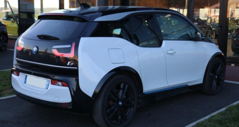 ======= OPTIONS ======= Jantes profilées 20'' (51cm) style 430 à rayons doubles à l'avant : 5 J x 20 pneumatiques 155 60 R20 à l'arrière : 5.5 J x 20 pneumatiques 175 55 R20 Navigation multimédia Professional Pack Advanced Full LED Pack Advanced Parking Pack Sport Sièges avant chauffants ======= EQUIPEMENTS DE SERIE ======= Accoudoir central avant avec rangement Airbags frontaux conducteur et passager avant avec désactivation de l'airbag passager Autoradio BMW Professional compatible MP3, 4 haut-parleurs, prise AUX-IN, port audio USB et streaming audio Bluetooth (avec Music Search) Câble de recharge standard sur prise domestique Cartographie Europe Charge accélérée CA Charge rapide CC Climatisation automatique, avec filtre à charbon actif, fonction de recyclage automatique de l'air (AUC) et touche Max A C permettant de sélectionner la puissance de refroidissement maximale Démarrage sans clé via le bouton de démarrage Start Stop avec contour chromé Détecteur de pluie et allumage automatique des projecteurs Esprit Intérieur Atelier Fonctions Ma BMW à distance Interface Bluetooth pour téléphone portable Kit rangement Mesure individuelle de pression des pneumatiques Porte-gobelets sur la console centrale Projecteurs Full-LED (feux de jour, feux de croisement, feux de route et clignotants à LED) Régulateur de vitesse avec fonction freinage (maintien de la vitesse en descente) Rétroviseurs extérieur noir brillant Rétroviseurs extérieurs électriques et dégivrants (asphérique côté conducteur et passager) Rétroviseurs extérieurs rabattables électriquement et électrochromatique du côté conducteur Radars de stationnement arrière PDC Services ConnectedDrive (3ans) Services eDrive Connected Touches multifonctions sur le volant Verrouillage automatique des portes dès 15km h Nb. Vitesses : 1 Conso Mixte : l/100