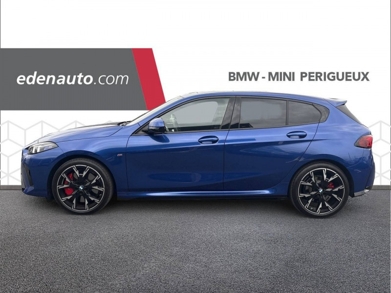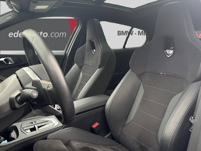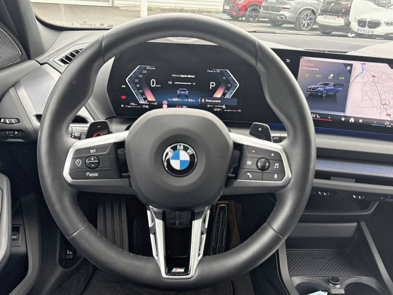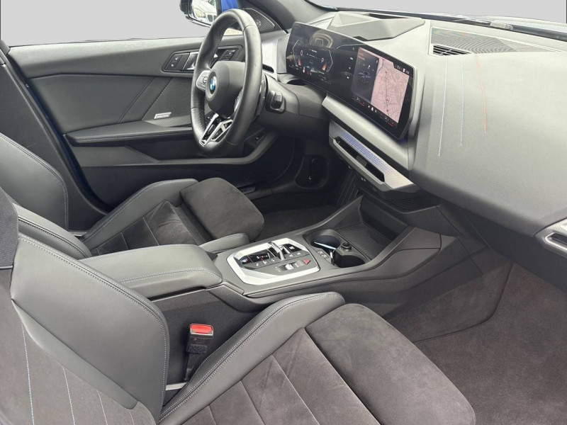2 porte-gobelets sur la console centrale / 2 ports USB Type C dans la console centrale / 3ème feu stop à LED sur la lunette AR / Accoudoir central AV avec compartiment de rangement / Active Guard - Avertissement de sortie de voie - Avertissement de collision frontale avec intervention sur les freins - Avertissement de virage à gauche (véhicule) avec fonction de freinage - Indicateur de limitation de vitesse - Assistant d'évitement / Aides à la conduite Driving Assistant - Avertisseur de franchissement de ligne (>70km/h avec vibrations dans le volant) - Avertisseur d'angle mort (>20km/h avec voyant d'alerte) - Avertisseur de risque de collision AV (>15km/h, préconditionnment du freinage >50km/h, assistance au freinage) - Avertisseur de risque de collision AR (déclenchement automatique des warning) - Avertisseur de trafic transversal AR (Avertisseur en cas de circulation transversale détectée derrière la voiture) / Aides au stationnement Parking Assistant - Caméra de recul - Manoeuvres de stationnemment automatique en créneau et en bataille - Freinage automatique (PDC actif) en marche AR - Assistant de marche AR/Auto-reverse / Airbags de tête AV et aux places latérales AR / Alarme antivol / Appel d'Urgence Intelligent (durée de vie de la voiture) Appel automatique vers le centre d'assistance BMW en cas d'accident. Touche SOS pour Appel d'Urgence manuel. Les données importantes sont automatiquement transmises aux secours : identification et localisation de la voiture, nombre de passagers à bord, statuts des airbags. Ce service utilise la carte SIM montée d'usine et ne requiert pas l'utilisation du smartphone. / Appuis-tête et ceintures de sécurité 3 points à toutes les places / BMW Curved Display / BMW Intelligent Personal Assistant / BMW Live Cockpit Navigation Plus / BMW "My Modes" (Personal/ Efficient/ Sport) / Boîte de vitesses automatique avec palettes à double embrayage DKG7 à 7 rapports / Calandre avec encadrement en chrome et barreaux verticaux / diagonaux / Capteurs d'impact - Activation de l'airbag, des feux de détresse, de l'éclairage intérieur - Déverrouillage des portes et légère ouverture des vitres / Ciel de pavillon M Anthracite / Compartiment à bagages : 2 crochets de sac, filet sur panneau droit / Contrôle de stabilité dynamique (DSC) avec dotation élargie - Assistant de démarrage en côte - Assistant dynamique de motricité (DTC) / Désignation du modèle à droite du hayon / Détecteur d'accident (crash sensor) - Allume les feux de détresse - Déverouillage des portes / Détecteur de pluie et allumage automatique des projecteurs / Déverrouillage électrique du coffre via la volet de coffre ou la clé radiocommandée / Eclairage de bienvenue autour du véhicule / Eclairage de plaque d'immatriculation à LED / Eclairage intérieur - Lampes de courtoisie - Eclairage habitacle AV et AR, y compris éclairage d'ambiance - Eclairage coffre à bagages sur le coté droit - Eclairage intérieur du compartiement de rangement dans l'accoudoir central - Lampes de lecture à l'AV et à l'AR - Eclairage plancher AV et AR / Eléments extérieurs M Sport / Eléments extérieurs (poignées de portes, baguettes de pare-chocs et de toit) couleur carrosserie / Eléments intérieurs M Sport / Fonction Start&Stop avec système prédictif via la navigation / Inserts décoratifs Aluminium Graphite illuminés / Jantes en alliage léger 18" style 975 M, à rayons doubles, bicolores Midnight Grey 8 J x 18 / pneus 225/45 R18.Comprennent écrous de roues antivol. Montage chaînes à neige impossible. / Kit de mobilité Bouteille de mastic pour pneumatiques - compresseur électrique 12 V (connexion à une prise 12V) / Mesure individuelle de pression des pneumatiques avec 3 niveaux / Moteur TwinPower Turbo essence 3 cylindres -Turbocompresseur - Valvetronic (modification de la profondeur d'ouverture des soupapes d'admission) - Double VANOS (système de distribution variable) - Technologie BMW High Precision Injection - Filtre à particules / Personal eSIM Personal eSIM est la version électronique, intégrée au véhicule, de la carte SIM traditionnelle. Vous l'utilisez via un abonnement souscrit auprès d'un opérateur téléphonique et transformez ainsi votre BMW en périphérique mobile supplémentaire : - La BMW sera ajoutée au contrat du téléphone mobile du client en tant qu'appareil supplémentaire - Connectivité 5G - Les appels téléphoniques ou les connexions de données ne nécessitent pas la présence physique du téléphone portable privé / Prise 12 V dans la console centrale / Régulateur de vitesse avec fonction de freinage dans les descentes / Régulateur de vitesse avec fonction de freinage et limiteur de vitesse / Rétroviseurs extérieurs couleur carrosserie avec rappels de clignotants intégrés / Sellerie Alcantara / Similicuir Veganza Schwarz avec surpiqûres bleues / Services Après-vente connectés BMW Teleservices (durée de vie de la voiture) / Shadow Line M brillant Entourage des vitres latérales, les baguettes de bas de glace, les montants centraux ainsi que les pourtours, pieds et triangles des rétroviseurs extérieurs en noir brillant / Sorties d'échappement non visibles / Suspension Adaptive M / Système de détection de somnolence / Système Hi-Fi 6 HP / Tapis de sol anthracite / Teinte de carrosserie unie / Triangle de présignalisation avec kit de premiers secours / Volant M gainé cuir (avec surpiqûres noires) Trois branches. Jante en cuir noir 'Walknappa', inserts chrome perlé et repose-pouce dans le volant. Logo M sur la base du volant