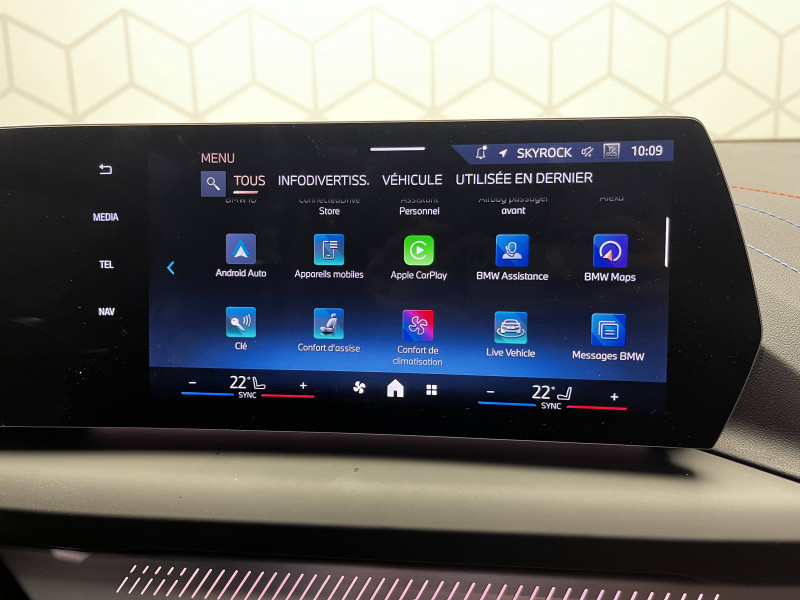 2 porte-gobelets sur la console centrale / 2 ports USB Type C dans la console centrale + 2 à l'AR / 3ème feu stop à LED sur la lunette AR / Accoudoir central AV avec compartiment de rangement / Active Guard - Avertissement de sortie de voie - Avertissement de collision frontale avec intervention sur les freins - Avertissement de virage à gauche (véhicule) avec fonction de freinage - Indicateur de limitation de vitesse - Assistant d'évitement / Airbags de tête AV et aux places latérales AR / Alarme antivol / Appel d'Urgence Intelligent (durée de vie de la voiture) Appel automatique vers le centre d'assistance BMW en cas d'accident. Touche SOS pour Appel d'Urgence manuel. Les données importantes sont automatiquement transmises aux secours : identification et localisation de la voiture, nombre de passagers à bord, statuts des airbags. Ce service utilise la carte SIM montée d'usine et ne requiert pas l'utilisation du smartphone. / Appuis-tête et ceintures de sécurité 3 points à toutes les places / BMW Curved Display / BMW Intelligent Personal Assistant / BMW Live Cockpit Navigation Plus / BMW "My Modes" (Personal/ Efficient/ Sport) / Boîte de vitesses automatique avec palettes à double embrayage DKG7 à 7 rapports / Calandre avec encadrement en chrome et barreaux verticaux / diagonaux / Capteurs d'impact - Activation de l'airbag, des feux de détresse, de l'éclairage intérieur - Déverrouillage des portes et légère ouverture des vitres / Ciel de pavillon M Anthracite / Compartiment à bagages : 2 crochets de sac, filet sur panneau droit / Contrôle de stabilité dynamique (DSC) avec dotation élargie - Assistant de démarrage en côte - Assistant dynamique de motricité (DTC) / Désignation du modèle à droite du hayon / Détecteur d'accident (crash sensor) - Allume les feux de détresse - Déverouillage des portes / Détecteur de pluie et allumage automatique des projecteurs / Déverrouillage électrique du coffre via la volet de coffre ou la clé radiocommandée / Driving Assistant - Avertisseur de franchissement de ligne (>70km/h avec vibrations dans le volant) - Avertisseur d'angle mort (>20km/h avec voyant d'alerte) - Avertisseur de risque de collision AV (>15km/h, préconditionnment du freinage >50km/h, assistance au freinage) - Avertisseur de risque de collision AR (déclenchement automatique des warning) - Avertisseur de trafic transversal AR (Avertisseur en cas de circulation transversale détectée derrière la voiture) / Eclairage de bienvenue autour du véhicule / Eclairage de plaque d'immatriculation à LED / Eclairage intérieur - Lampes de courtoisie - Eclairage habitacle AV et AR, y compris éclairage d'ambiance - Eclairage coffre à bagages sur le coté droit - Eclairage intérieur du compartiement de rangement dans l'accoudoir central - Lampes de lecture à l'AV et à l'AR - Eclairage plancher AV et AR / Eléments extérieurs M Sport / Eléments extérieurs (poignées de portes, baguettes de pare-chocs et de toit) couleur carrosserie / Eléments intérieurs M Sport / Fonction Start&Stop avec système prédictif via la navigation / Inserts décoratifs Aluminium Graphite illuminés / Jantes en alliage léger 18" style 975 M, à rayons doubles, bicolores Midnight Grey 8 J x 18 / pneus 225/45 R18.Comprennent écrous de roues antivol. Montage chaînes à neige impossible. / Kit de mobilité BMW Bouteille de mastic pour pneumatiques - compresseur électrique 12 V (connexion à une prise 12V) / Lève-vitres AV et AR / Mesure individuelle de pression des pneumatiques avec 3 niveaux / Moteur TwinPower Turbo diesel 4 cylindres -Turbocompresseur - Technologie BMW High Precision Injection - Filtre à particule et catalyseur à oxydation - Réduction catalytique via injection d'AdBlue (SCR) / Parking Assistant - Caméra de recul - Manoeuvres de stationnemment automatique en créneau et en bataille - Freinage automatique (PDC actif) en marche AR - Assistant de marche AR/Auto-reverse / Personal eSIM Personal eSIM est la version électronique, intégrée au véhicule, de la carte SIM traditionnelle. Vous l'utilisez via un abonnement souscrit auprès d'un opérateur téléphonique et transformez ainsi votre BMW en périphérique mobile supplémentaire : - La BMW sera ajoutée au contrat du téléphone mobile du client en tant qu'appareil supplémentaire - Connectivité 5G - Les appels téléphoniques ou les connexions de données ne nécessitent pas la présence physique du téléphone portable privé / Prise 12 V dans la console centrale / Régulateur de vitesse avec fonction de freinage dans les descentes / Régulateur de vitesse avec fonction de freinage et limiteur de vitesse / Rétroviseurs extérieurs couleur carrosserie avec rappels de clignotants intégrés / Sellerie Alcantara / Similicuir Veganza Schwarz avec surpiqûres bleues / Services Après-vente connectés BMW Teleservices (durée de vie de la voiture) / Shadow Line M brillant Entourage des vitres latérales, les baguettes de bas de glace, les montants centraux ainsi que les pourtours, pieds et triangles des rétroviseurs extérieurs en noir brillant / Sorties d'échappement non visibles / Suspension Adaptive M / Système de détection de somnolence / Système Hi-Fi 6 HP / Tapis de sol anthracite / Teinte de carrosserie unie / Triangle de présignalisation avec kit de premiers secours / Volant M gainé cuir (avec surpiqûres noires) Trois branches. Jante en cuir noir 'Walknappa', inserts chrome perlé et repose-pouce dans le volant. Logo M sur la base du volant