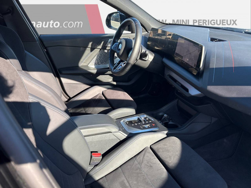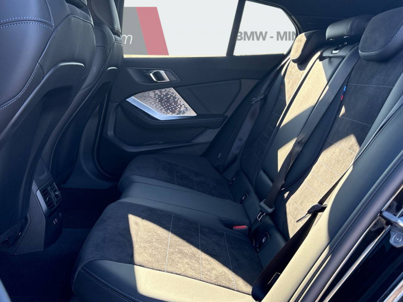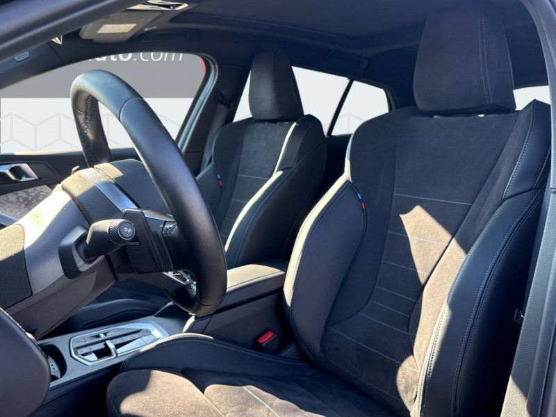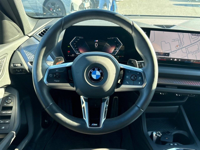2 porte-gobelets sur la console centrale / 2 ports USB Type C dans la console centrale + 2 à l'AR / 3ème feu stop à LED sur la lunette AR / Accoudoir central AV avec compartiment de rangement / Active Guard - Avertissement de sortie de voie - Avertissement de collision frontale avec intervention sur les freins - Avertissement de virage à gauche (véhicule) avec fonction de freinage - Indicateur de limitation de vitesse - Assistant d'évitement / Airbags de tête AV et aux places latérales AR / Alarme antivol / Appel d'Urgence Intelligent (durée de vie de la voiture) Appel automatique vers le centre d'assistance BMW en cas d'accident. Touche SOS pour Appel d'Urgence manuel. Les données importantes sont automatiquement transmises aux secours : identification et localisation de la voiture, nombre de passagers à bord, statuts des airbags. Ce service utilise la carte SIM montée d'usine et ne requiert pas l'utilisation du smartphone. / Appuis-tête et ceintures de sécurité 3 points à toutes les places / BMW Curved Display / BMW Intelligent Personal Assistant / BMW Live Cockpit Navigation Plus / BMW "My Modes" (Personal/ Efficient/ Sport) / Boîte de vitesses automatique avec palettes à double embrayage DKG7 à 7 rapports / Calandre avec encadrement en chrome et barreaux verticaux / diagonaux / Capteurs d'impact - Activation de l'airbag, des feux de détresse, de l'éclairage intérieur - Déverrouillage des portes et légère ouverture des vitres / Ciel de pavillon M Anthracite / Compartiment à bagages : 2 crochets de sac, filet sur panneau droit / Contrôle de stabilité dynamique (DSC) avec dotation élargie - Assistant de démarrage en côte - Assistant dynamique de motricité (DTC) / Désignation du modèle à droite du hayon / Détecteur d'accident (crash sensor) - Allume les feux de détresse - Déverouillage des portes / Détecteur de pluie et allumage automatique des projecteurs / Déverrouillage électrique du coffre via la volet de coffre ou la clé radiocommandée / Driving Assistant - Avertisseur de franchissement de ligne (>70km/h avec vibrations dans le volant) - Avertisseur d'angle mort (>20km/h avec voyant d'alerte) - Avertisseur de risque de collision AV (>15km/h, préconditionnment du freinage >50km/h, assistance au freinage) - Avertisseur de risque de collision AR (déclenchement automatique des warning) - Avertisseur de trafic transversal AR (Avertisseur en cas de circulation transversale détectée derrière la voiture) / Eclairage de bienvenue autour du véhicule / Eclairage de plaque d'immatriculation à LED / Eclairage intérieur - Lampes de courtoisie - Eclairage habitacle AV et AR, y compris éclairage d'ambiance - Eclairage coffre à bagages sur le coté droit - Eclairage intérieur du compartiement de rangement dans l'accoudoir central - Lampes de lecture à l'AV et à l'AR - Eclairage plancher AV et AR / Eléments extérieurs M Sport / Eléments extérieurs (poignées de portes, baguettes de pare-chocs et de toit) couleur carrosserie / Eléments intérieurs M Sport / Fonction Start&Stop avec système prédictif via la navigation / Inserts décoratifs Aluminium Graphite illuminés / Jantes en alliage léger 18" style 975 M, à rayons doubles, bicolores Midnight Grey 8 J x 18 / pneus 225/45 R18.Comprennent écrous de roues antivol. Montage chaînes à neige impossible. / Kit de mobilité Bouteille de mastic pour pneumatiques - compresseur électrique 12 V (connexion à une prise 12V) / Mesure individuelle de pression des pneumatiques avec 3 niveaux / Moteur TwinPower Turbo essence 3 cylindres -Turbocompresseur - Valvetronic (modification de la profondeur d'ouverture des soupapes d'admission) - Double VANOS (système de distribution variable) - Technologie BMW High Precision Injection - Filtre à particules / Parking Assistant - Caméra de recul - Manoeuvres de stationnemment automatique en créneau et en bataille - Freinage automatique (PDC actif) en marche AR - Assistant de marche AR/Auto-reverse / Personal eSIM Personal eSIM est la version électronique, intégrée au véhicule, de la carte SIM traditionnelle. Vous l'utilisez via un abonnement souscrit auprès d'un opérateur téléphonique et transformez ainsi votre BMW en périphérique mobile supplémentaire : - La BMW sera ajoutée au contrat du téléphone mobile du client en tant qu'appareil supplémentaire - Connectivité 5G - Les appels téléphoniques ou les connexions de données ne nécessitent pas la présence physique du téléphone portable privé / Prise 12 V dans la console centrale / Régulateur de vitesse avec fonction de freinage dans les descentes / Régulateur de vitesse avec fonction de freinage et limiteur de vitesse / Rétroviseurs extérieurs couleur carrosserie avec rappels de clignotants intégrés / Sellerie Alcantara / Similicuir Veganza Schwarz avec surpiqûres bleues / Services Après-vente connectés BMW Teleservices (durée de vie de la voiture) / Shadow Line M brillant Entourage des vitres latérales, les baguettes de bas de glace, les montants centraux ainsi que les pourtours, pieds et triangles des rétroviseurs extérieurs en noir brillant / Sorties d'échappement non visibles / Suspension Adaptive M / Système de détection de somnolence / Système Hi-Fi 6 HP / Tapis de sol anthracite / Teinte de carrosserie unie / Triangle de présignalisation avec kit de premiers secours / Volant M gainé cuir (avec surpiqûres noires) Trois branches. Jante en cuir noir 'Walknappa', inserts chrome perlé et repose-pouce dans le volant. Logo M sur la base du volant
