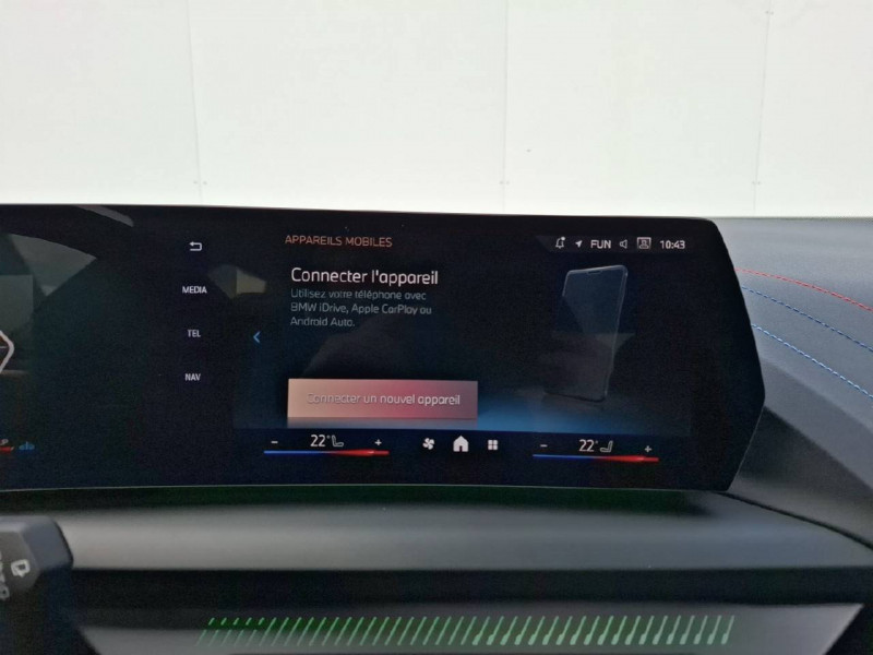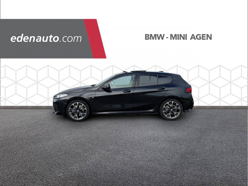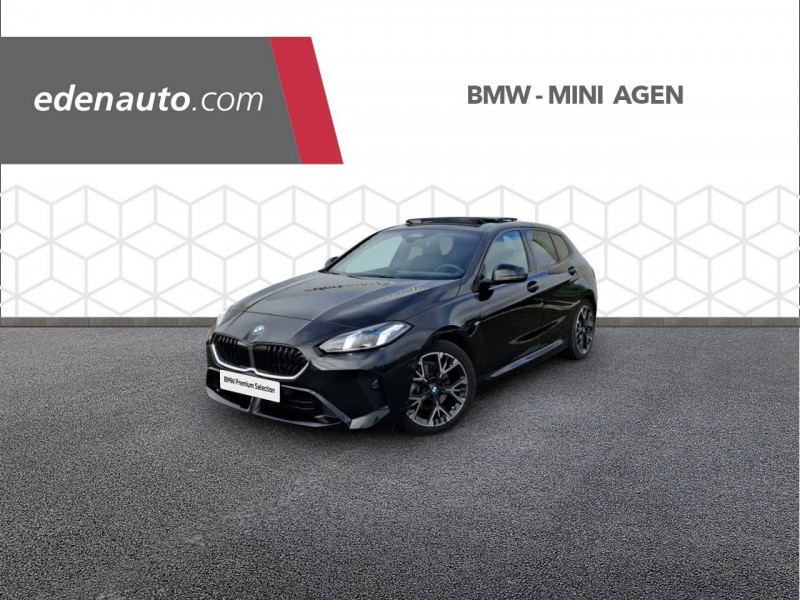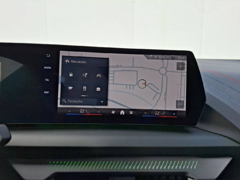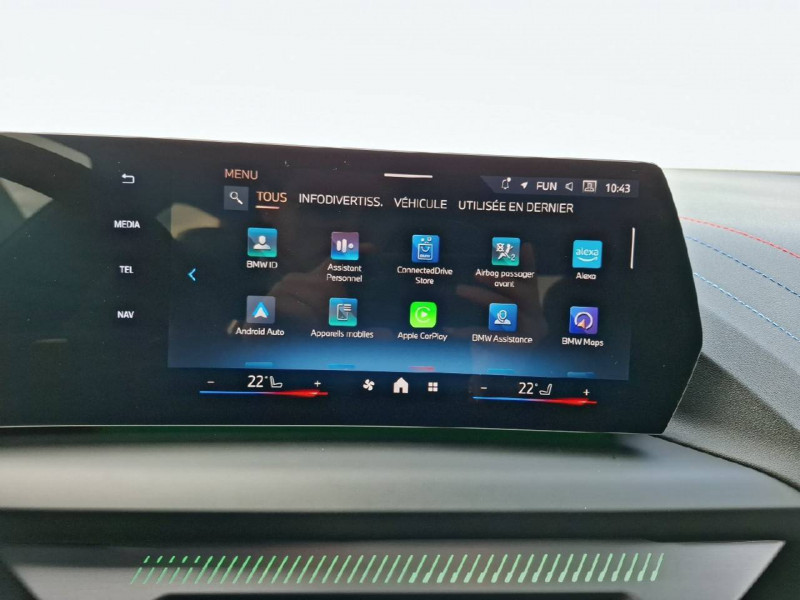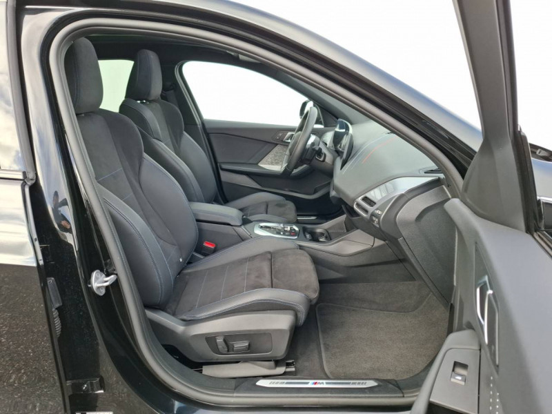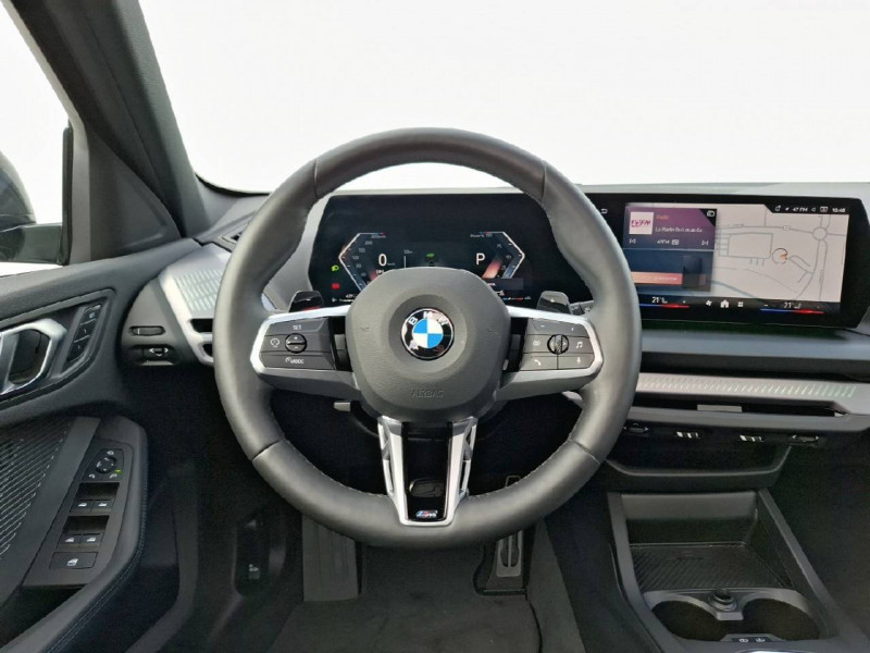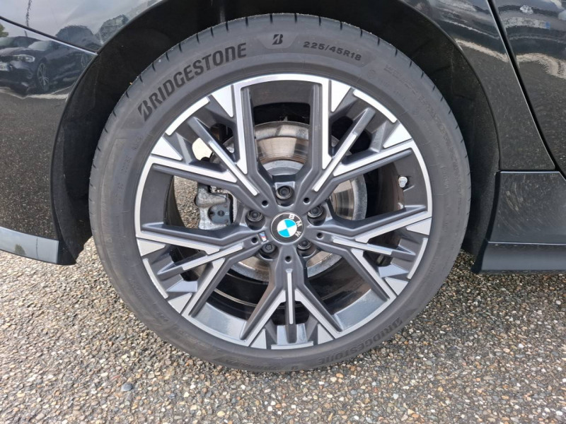 2 porte-gobelets sur la console centrale / 2 ports USB Type C dans la console centrale / 3ème feu stop à LED sur la lunette AR / Accoudoir central AV avec compartiment de rangement / Active Guard - Avertissement de sortie de voie  - Avertissement de collision frontale avec intervention sur les freins  - Avertissement de virage à gauche (véhicule) avec fonction de freinage  - Indicateur de limitation de vitesse  - Assistant d'évitement / Aides à la conduite Driving Assistant - Avertisseur de franchissement de ligne (>70km/h avec vibrations dans le volant)  - Avertisseur d'angle mort (>20km/h avec voyant d'alerte)  - Avertisseur de risque de collision AV (>15km/h, préconditionnment du freinage >50km/h, assistance au freinage)  - Avertisseur de risque de collision AR (déclenchement automatique des warning)  - Avertisseur de trafic transversal AR (Avertisseur en cas de circulation transversale détectée derrière la voiture) / Aides au stationnement Parking Assistant - Caméra de recul  - Manoeuvres de stationnemment automatique en créneau et en bataille  - Freinage automatique (PDC actif) en marche AR  - Assistant de marche AR/Auto-reverse / Airbags de tête AV et aux places latérales AR / Alarme antivol / Appel d'Urgence Intelligent (durée de vie de la voiture) Appel automatique vers le centre d'assistance BMW en cas d'accident. Touche SOS pour Appel d'Urgence manuel. Les données importantes sont automatiquement transmises aux secours : identification et localisation de la voiture, nombre de passagers à bord, statuts des airbags. Ce service utilise la carte SIM montée d'usine et ne requiert pas l'utilisation du smartphone. / Appuis-tête et ceintures de sécurité 3 points à toutes les places / BMW Curved Display / BMW Intelligent Personal Assistant / BMW Live Cockpit Navigation Plus / BMW "My Modes" (Personal/ Efficient/ Sport) / Boîte de vitesses automatique avec palettes à double embrayage DKG7 à 7 rapports / Calandre avec encadrement en chrome et barreaux verticaux / diagonaux / Capteurs d'impact - Activation de l'airbag, des feux de détresse, de l'éclairage intérieur  - Déverrouillage des portes et légère ouverture des vitres / Ciel de pavillon M Anthracite / Compartiment à bagages : 2 crochets de sac, filet sur panneau droit / Contrôle de stabilité dynamique (DSC) avec dotation élargie - Assistant de démarrage en côte  - Assistant dynamique de motricité (DTC) / Désignation du modèle à droite du hayon / Détecteur d'accident (crash sensor) - Allume les feux de détresse  - Déverouillage des portes / Détecteur de pluie et allumage automatique des projecteurs / Déverrouillage électrique du coffre via la volet de coffre ou la clé radiocommandée / Eclairage de bienvenue autour du véhicule / Eclairage de plaque d'immatriculation à LED / Eclairage intérieur - Lampes de courtoisie  - Eclairage habitacle AV et AR, y compris éclairage d'ambiance  - Eclairage coffre à bagages sur le coté droit  - Eclairage intérieur du compartiement de rangement dans l'accoudoir central  - Lampes de lecture à l'AV et à l'AR  - Eclairage plancher AV et AR / Eléments extérieurs M Sport / Eléments extérieurs (poignées de portes, baguettes de pare-chocs et de toit) couleur carrosserie / Eléments intérieurs M Sport / Fonction Start&Stop avec système prédictif via la navigation / Inserts décoratifs Aluminium Graphite illuminés / Jantes en alliage léger 18" style 975 M, à rayons doubles, bicolores Midnight Grey 8 J x 18 / pneus 225/45 R18.Comprennent écrous de roues antivol. Montage chaînes à neige impossible. / Kit de mobilité Bouteille de mastic pour pneumatiques - compresseur électrique 12 V (connexion à une prise 12V) / Mesure individuelle de pression des pneumatiques avec 3 niveaux / Moteur TwinPower Turbo essence 3 cylindres -Turbocompresseur  - Valvetronic (modification de la profondeur d'ouverture des soupapes d'admission)  - Double VANOS (système de distribution variable)  - Technologie BMW High Precision Injection  - Filtre à particules / Personal eSIM Personal eSIM est la version électronique, intégrée au véhicule, de la carte SIM traditionnelle. Vous l'utilisez via un abonnement souscrit auprès d'un opérateur téléphonique et transformez ainsi votre BMW en périphérique mobile supplémentaire :  - La BMW sera ajoutée au contrat du téléphone mobile du client en tant qu'appareil supplémentaire  - Connectivité 5G  - Les appels téléphoniques ou les connexions de données ne nécessitent pas la présence physique du téléphone portable privé / Prise 12 V dans la console centrale / Régulateur de vitesse avec fonction de freinage dans les descentes / Régulateur de vitesse avec fonction de freinage et limiteur de vitesse / Rétroviseurs extérieurs couleur carrosserie avec rappels de clignotants intégrés / Sellerie Alcantara / Similicuir Veganza Schwarz avec surpiqûres bleues / Services Après-vente connectés BMW Teleservices (durée de vie de la voiture) / Shadow Line M brillant Entourage des vitres latérales, les baguettes de bas de glace, les montants centraux ainsi que les pourtours, pieds et triangles des rétroviseurs extérieurs en noir brillant / Sorties d'échappement non visibles / Suspension Adaptive M / Système de détection de somnolence / Système Hi-Fi 6 HP / Tapis de sol anthracite / Teinte de carrosserie unie / Triangle de présignalisation avec kit de premiers secours / Volant M gainé cuir (avec surpiqûres noires) Trois branches. Jante en cuir noir 'Walknappa', inserts chrome perlé et repose-pouce dans le volant. Logo M sur la base du volant