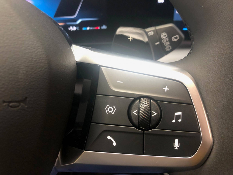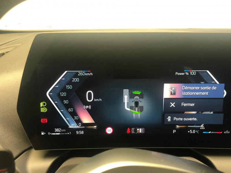2 porte-gobelets sur la console centrale / 2 ports USB Type C dans la console centrale + 2 à l'AR / 3ème feu stop à LED sur la lunette AR / Accoudoir central AV avec compartiment de rangement / Active Guard - Avertissement de sortie de voie - Avertissement de collision frontale avec intervention sur les freins - Avertissement de virage à gauche (véhicule) avec fonction de freinage - Indicateur de limitation de vitesse - Assistant d'évitement / Airbags de tête AV et aux places latérales AR / Alarme antivol / Appel d'Urgence Intelligent (durée de vie de la voiture) Appel automatique vers le centre d'assistance BMW en cas d'accident. Touche SOS pour Appel d'Urgence manuel. Les données importantes sont automatiquement transmises aux secours : identification et localisation de la voiture, nombre de passagers à bord, statuts des airbags. Ce service utilise la carte SIM montée d'usine et ne requiert pas l'utilisation du smartphone. / Appuis-tête et ceintures de sécurité 3 points à toutes les places / BMW Curved Display / BMW Intelligent Personal Assistant / BMW Live Cockpit Navigation Plus / BMW "My Modes" (Personal/ Efficient/ Sport) / Boîte de vitesses automatique avec palettes à double embrayage DKG7 à 7 rapports / Calandre avec encadrement en chrome et barreaux verticaux / diagonaux / Capteurs d'impact - Activation de l'airbag, des feux de détresse, de l'éclairage intérieur - Déverrouillage des portes et légère ouverture des vitres / Ciel de pavillon M Anthracite / Compartiment à bagages : 2 crochets de sac, filet sur panneau droit / Contrôle de stabilité dynamique (DSC) avec dotation élargie - Assistant de démarrage en côte - Assistant dynamique de motricité (DTC) / Désignation du modèle à droite du hayon / Détecteur d'accident (crash sensor) - Allume les feux de détresse - Déverouillage des portes / Détecteur de pluie et allumage automatique des projecteurs / Déverrouillage électrique du coffre via la volet de coffre ou la clé radiocommandée / Driving Assistant - Avertisseur de franchissement de ligne (>70km/h avec vibrations dans le volant) - Avertisseur d'angle mort (>20km/h avec voyant d'alerte) - Avertisseur de risque de collision AV (>15km/h, préconditionnment du freinage >50km/h, assistance au freinage) - Avertisseur de risque de collision AR (déclenchement automatique des warning) - Avertisseur de trafic transversal AR (Avertisseur en cas de circulation transversale détectée derrière la voiture) / Eclairage de bienvenue autour du véhicule / Eclairage de plaque d'immatriculation à LED / Eclairage intérieur - Lampes de courtoisie - Eclairage habitacle AV et AR, y compris éclairage d'ambiance - Eclairage coffre à bagages sur le coté droit - Eclairage intérieur du compartiement de rangement dans l'accoudoir central - Lampes de lecture à l'AV et à l'AR - Eclairage plancher AV et AR / Eléments extérieurs M Sport / Eléments extérieurs (poignées de portes, baguettes de pare-chocs et de toit) couleur carrosserie / Eléments intérieurs M Sport / Fonction Start&Stop avec système prédictif via la navigation / Inserts décoratifs Aluminium Graphite illuminés / Jantes en alliage léger 18" style 975 M, à rayons doubles, bicolores Midnight Grey 8 J x 18 / pneus 225/45 R18.Comprennent écrous de roues antivol. Montage chaînes à neige impossible. / Kit de mobilité Bouteille de mastic pour pneumatiques - compresseur électrique 12 V (connexion à une prise 12V) / Lève-vitres AV et AR / Mesure individuelle de pression des pneumatiques avec 3 niveaux / Moteur TwinPower Turbo essence 3 cylindres -Turbocompresseur - Valvetronic (modification de la profondeur d'ouverture des soupapes d'admission) - Double VANOS (système de distribution variable) - Technologie BMW High Precision Injection - Filtre à particules / Parking Assistant - Caméra de recul - Manoeuvres de stationnemment automatique en créneau et en bataille - Freinage automatique (PDC actif) en marche AR - Assistant de marche AR/Auto-reverse / Personal eSIM Personal eSIM est la version électronique, intégrée au véhicule, de la carte SIM traditionnelle. Vous l'utilisez via un abonnement souscrit auprès d'un opérateur téléphonique et transformez ainsi votre BMW en périphérique mobile supplémentaire : - La BMW sera ajoutée au contrat du téléphone mobile du client en tant qu'appareil supplémentaire - Connectivité 5G - Les appels téléphoniques ou les connexions de données ne nécessitent pas la présence physique du téléphone portable privé / Prise 12 V dans la console centrale / Régulateur de vitesse avec fonction de freinage dans les descentes / Régulateur de vitesse avec fonction de freinage et limiteur de vitesse / Rétroviseurs extérieurs couleur carrosserie avec rappels de clignotants intégrés / Sellerie Alcantara / Similicuir Veganza Schwarz avec surpiqûres bleues / Services Après-vente connectés BMW Teleservices (durée de vie de la voiture) / Shadow Line M brillant Entourage des vitres latérales, les baguettes de bas de glace, les montants centraux ainsi que les pourtours, pieds et triangles des rétroviseurs extérieurs en noir brillant / Sorties d'échappement non visibles / Suspension Adaptive M / Système de détection de somnolence / Système Hi-Fi 6 HP / Tapis de sol anthracite / Teinte de carrosserie unie / Triangle de présignalisation avec kit de premiers secours / Volant M gainé cuir (avec surpiqûres noires) Trois branches. Jante en cuir noir 'Walknappa', inserts chrome perlé et repose-pouce dans le volant. Logo M sur la base du volant