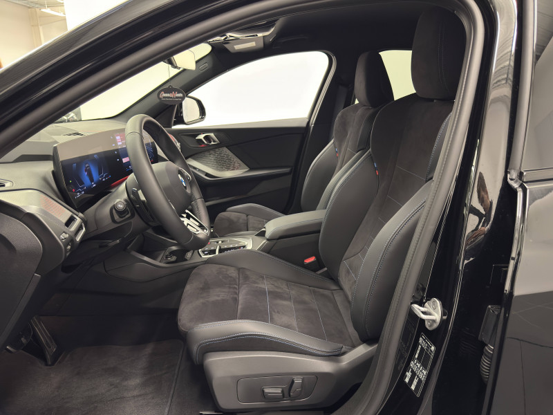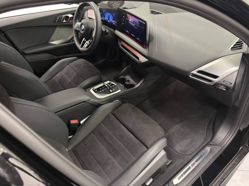2 porte-gobelets sur la console centrale / 2 ports USB Type C dans la console centrale + 2 à l'AR / 3ème feu stop à LED sur la lunette AR / Accoudoir central AV avec compartiment de rangement / Active Guard - Avertissement de sortie de voie - Avertissement de collision frontale avec intervention sur les freins - Avertissement de virage à gauche (véhicule) avec fonction de freinage - Indicateur de limitation de vitesse - Assistant d'évitement / Airbags de tête AV et aux places latérales AR / Alarme antivol / Appel d'Urgence Intelligent (durée de vie de la voiture) Appel automatique vers le centre d'assistance BMW en cas d'accident. Touche SOS pour Appel d'Urgence manuel. Les données importantes sont automatiquement transmises aux secours : identification et localisation de la voiture, nombre de passagers à bord, statuts des airbags. Ce service utilise la carte SIM montée d'usine et ne requiert pas l'utilisation du smartphone. / Appuis-tête et ceintures de sécurité 3 points à toutes les places / BMW Curved Display / BMW Intelligent Personal Assistant / BMW Live Cockpit Navigation Plus / BMW "My Modes" (Personal/ Efficient/ Sport) / Boîte de vitesses automatique avec palettes à double embrayage DKG7 à 7 rapports / Calandre avec encadrement en chrome et barreaux verticaux / diagonaux / Capteurs d'impact - Activation de l'airbag, des feux de détresse, de l'éclairage intérieur - Déverrouillage des portes et légère ouverture des vitres / Ciel de pavillon M Anthracite / Compartiment à bagages : 2 crochets de sac, filet sur panneau droit / Contrôle de stabilité dynamique (DSC) avec dotation élargie - Assistant de démarrage en côte - Assistant dynamique de motricité (DTC) / Désignation du modèle à droite du hayon / Détecteur d'accident (crash sensor) - Allume les feux de détresse - Déverouillage des portes / Détecteur de pluie et allumage automatique des projecteurs / Déverrouillage électrique du coffre via la volet de coffre ou la clé radiocommandée / Driving Assistant - Avertisseur de franchissement de ligne (>70km/h avec vibrations dans le volant) - Avertisseur d'angle mort (>20km/h avec voyant d'alerte) - Avertisseur de risque de collision AV (>15km/h, préconditionnment du freinage >50km/h, assistance au freinage) - Avertisseur de risque de collision AR (déclenchement automatique des warning) - Avertisseur de trafic transversal AR (Avertisseur en cas de circulation transversale détectée derrière la voiture) / Eclairage de bienvenue autour du véhicule / Eclairage de plaque d'immatriculation à LED / Eclairage intérieur - Lampes de courtoisie - Eclairage habitacle AV et AR, y compris éclairage d'ambiance - Eclairage coffre à bagages sur le coté droit - Eclairage intérieur du compartiement de rangement dans l'accoudoir central - Lampes de lecture à l'AV et à l'AR - Eclairage plancher AV et AR / Eléments extérieurs M Sport / Eléments extérieurs (poignées de portes, baguettes de pare-chocs et de toit) couleur carrosserie / Eléments intérieurs M Sport / Fonction Start&Stop avec système prédictif via la navigation / Inserts décoratifs Aluminium Graphite illuminés / Jantes en alliage léger 18" style 975 M, à rayons doubles, bicolores Midnight Grey 8 J x 18 / pneus 225/45 R18.Comprennent écrous de roues antivol. Montage chaînes à neige impossible. / Kit de mobilité Bouteille de mastic pour pneumatiques - compresseur électrique 12 V (connexion à une prise 12V) / Lève-vitres AV et AR / Mesure individuelle de pression des pneumatiques avec 3 niveaux / Moteur TwinPower Turbo essence 3 cylindres -Turbocompresseur - Valvetronic (modification de la profondeur d'ouverture des soupapes d'admission) - Double VANOS (système de distribution variable) - Technologie BMW High Precision Injection - Filtre à particules / Parking Assistant - Caméra de recul - Manoeuvres de stationnemment automatique en créneau et en bataille - Freinage automatique (PDC actif) en marche AR - Assistant de marche AR/Auto-reverse / Personal eSIM Personal eSIM est la version électronique, intégrée au véhicule, de la carte SIM traditionnelle. Vous l'utilisez via un abonnement souscrit auprès d'un opérateur téléphonique et transformez ainsi votre BMW en périphérique mobile supplémentaire : - La BMW sera ajoutée au contrat du téléphone mobile du client en tant qu'appareil supplémentaire - Connectivité 5G - Les appels téléphoniques ou les connexions de données ne nécessitent pas la présence physique du téléphone portable privé / Prise 12 V dans la console centrale / Régulateur de vitesse avec fonction de freinage dans les descentes / Régulateur de vitesse avec fonction de freinage et limiteur de vitesse / Rétroviseurs extérieurs couleur carrosserie avec rappels de clignotants intégrés / Sellerie Alcantara / Similicuir Veganza Schwarz avec surpiqûres bleues / Services Après-vente connectés BMW Teleservices (durée de vie de la voiture) / Shadow Line M brillant Entourage des vitres latérales, les baguettes de bas de glace, les montants centraux ainsi que les pourtours, pieds et triangles des rétroviseurs extérieurs en noir brillant / Sorties d'échappement non visibles / Suspension Adaptive M / Système de détection de somnolence / Système Hi-Fi 6 HP / Tapis de sol anthracite / Teinte de carrosserie unie / Triangle de présignalisation avec kit de premiers secours / Volant M gainé cuir (avec surpiqûres noires) Trois branches. Jante en cuir noir 'Walknappa', inserts chrome perlé et repose-pouce dans le volant. Logo M sur la base du volant