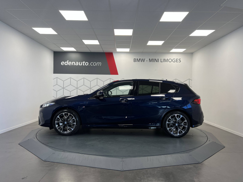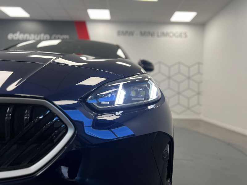 2 porte-gobelets sur la console centrale / 2 ports USB Type C dans la console centrale + 2 à l'AR / 3ème feu stop à LED sur la lunette AR / Accoudoir central AV avec compartiment de rangement / Active Guard - Avertissement de sortie de voie - Avertissement de collision frontale avec intervention sur les freins - Avertissement de virage à gauche (véhicule) avec fonction de freinage - Indicateur de limitation de vitesse - Assistant d'évitement / Airbags de tête AV et aux places latérales AR / Alarme antivol / Appel d'Urgence Intelligent (durée de vie de la voiture) Appel automatique vers le centre d'assistance BMW en cas d'accident. Touche SOS pour Appel d'Urgence manuel. Les données importantes sont automatiquement transmises aux secours : identification et localisation de la voiture, nombre de passagers à bord, statuts des airbags. Ce service utilise la carte SIM montée d'usine et ne requiert pas l'utilisation du smartphone. / Appuis-tête et ceintures de sécurité 3 points à toutes les places / BMW Curved Display / BMW Intelligent Personal Assistant / BMW Live Cockpit Navigation Plus / BMW "My Modes" (Personal/ Efficient/ Sport) / Boîte de vitesses automatique avec palettes à double embrayage DKG7 à 7 rapports / Calandre avec encadrement en chrome et barreaux verticaux / diagonaux / Capteurs d'impact - Activation de l'airbag, des feux de détresse, de l'éclairage intérieur - Déverrouillage des portes et légère ouverture des vitres / Ciel de pavillon M Anthracite / Compartiment à bagages : 2 crochets de sac, filet sur panneau droit / Contrôle de stabilité dynamique (DSC) avec dotation élargie - Assistant de démarrage en côte - Assistant dynamique de motricité (DTC) / Désignation du modèle à droite du hayon / Détecteur d'accident (crash sensor) - Allume les feux de détresse - Déverouillage des portes / Détecteur de pluie et allumage automatique des projecteurs / Déverrouillage électrique du coffre via la volet de coffre ou la clé radiocommandée / Driving Assistant - Avertisseur de franchissement de ligne (>70km/h avec vibrations dans le volant) - Avertisseur d'angle mort (>20km/h avec voyant d'alerte) - Avertisseur de risque de collision AV (>15km/h, préconditionnment du freinage >50km/h, assistance au freinage) - Avertisseur de risque de collision AR (déclenchement automatique des warning) - Avertisseur de trafic transversal AR (Avertisseur en cas de circulation transversale détectée derrière la voiture) / Eclairage de bienvenue autour du véhicule / Eclairage de plaque d'immatriculation à LED / Eclairage intérieur - Lampes de courtoisie - Eclairage habitacle AV et AR, y compris éclairage d'ambiance - Eclairage coffre à bagages sur le coté droit - Eclairage intérieur du compartiement de rangement dans l'accoudoir central - Lampes de lecture à l'AV et à l'AR - Eclairage plancher AV et AR / Eléments extérieurs M Sport / Eléments extérieurs (poignées de portes, baguettes de pare-chocs et de toit) couleur carrosserie / Eléments intérieurs M Sport / Fonction Start&Stop avec système prédictif via la navigation / Inserts décoratifs Aluminium Graphite illuminés / Jantes en alliage léger 18" style 975 M, à rayons doubles, bicolores Midnight Grey 8 J x 18 / pneus 225/45 R18.Comprennent écrous de roues antivol. Montage chaînes à neige impossible. / Kit de mobilité BMW Bouteille de mastic pour pneumatiques - compresseur électrique 12 V (connexion à une prise 12V) / Lève-vitres AV et AR / Mesure individuelle de pression des pneumatiques avec 3 niveaux / Moteur TwinPower Turbo diesel 4 cylindres -Turbocompresseur - Technologie BMW High Precision Injection - Filtre à particule et catalyseur à oxydation - Réduction catalytique via injection d'AdBlue (SCR) / Parking Assistant - Caméra de recul - Manoeuvres de stationnemment automatique en créneau et en bataille - Freinage automatique (PDC actif) en marche AR - Assistant de marche AR/Auto-reverse / Personal eSIM Personal eSIM est la version électronique, intégrée au véhicule, de la carte SIM traditionnelle. Vous l'utilisez via un abonnement souscrit auprès d'un opérateur téléphonique et transformez ainsi votre BMW en périphérique mobile supplémentaire : - La BMW sera ajoutée au contrat du téléphone mobile du client en tant qu'appareil supplémentaire - Connectivité 5G - Les appels téléphoniques ou les connexions de données ne nécessitent pas la présence physique du téléphone portable privé / Prise 12 V dans la console centrale / Régulateur de vitesse avec fonction de freinage dans les descentes / Régulateur de vitesse avec fonction de freinage et limiteur de vitesse / Rétroviseurs extérieurs couleur carrosserie avec rappels de clignotants intégrés / Sellerie Alcantara / Similicuir Veganza Schwarz avec surpiqûres bleues / Services Après-vente connectés BMW Teleservices (durée de vie de la voiture) / Shadow Line M brillant Entourage des vitres latérales, les baguettes de bas de glace, les montants centraux ainsi que les pourtours, pieds et triangles des rétroviseurs extérieurs en noir brillant / Sorties d'échappement non visibles / Suspension Adaptive M / Système de détection de somnolence / Système Hi-Fi 6 HP / Tapis de sol anthracite / Teinte de carrosserie unie / Triangle de présignalisation avec kit de premiers secours / Volant M gainé cuir (avec surpiqûres noires) Trois branches. Jante en cuir noir 'Walknappa', inserts chrome perlé et repose-pouce dans le volant. Logo M sur la base du volant