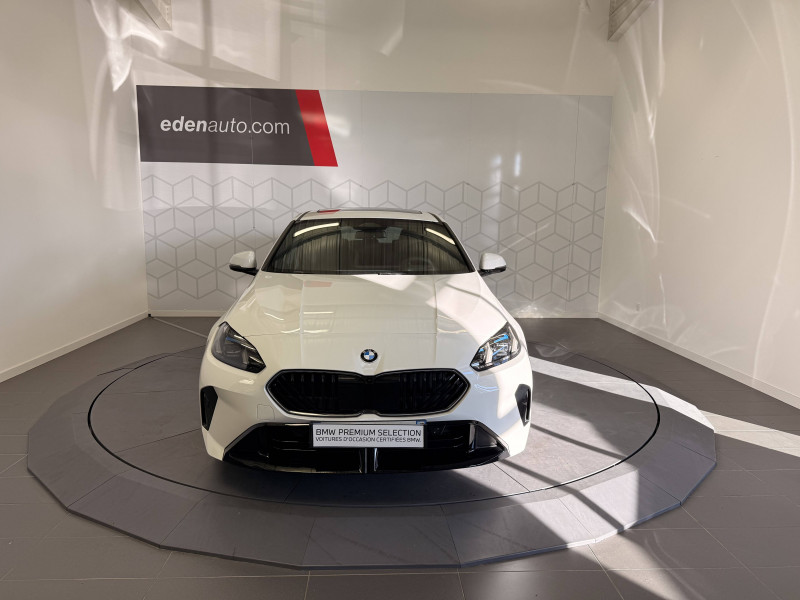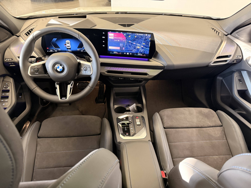 2 porte-gobelets sur la console centrale / 2 ports USB Type C dans la console centrale / 3ème feu stop à LED sur la lunette AR / Accoudoir central AV avec compartiment de rangement / Active Guard - Avertissement de sortie de voie - Avertissement de collision frontale avec intervention sur les freins - Avertissement de virage à gauche (véhicule) avec fonction de freinage - Indicateur de limitation de vitesse - Assistant d'évitement / Aides à la conduite Driving Assistant - Avertisseur de franchissement de ligne (>70km/h avec vibrations dans le volant) - Avertisseur d'angle mort (>20km/h avec voyant d'alerte) - Avertisseur de risque de collision AV (>15km/h, préconditionnment du freinage >50km/h, assistance au freinage) - Avertisseur de risque de collision AR (déclenchement automatique des warning) - Avertisseur de trafic transversal AR (Avertisseur en cas de circulation transversale détectée derrière la voiture) / Aides au stationnement Parking Assistant - Caméra de recul - Manoeuvres de stationnemment automatique en créneau et en bataille - Freinage automatique (PDC actif) en marche AR - Assistant de marche AR/Auto-reverse / Airbags de tête AV et aux places latérales AR / Alarme antivol / Appel d'Urgence Intelligent (durée de vie de la voiture) Appel automatique vers le centre d'assistance BMW en cas d'accident. Touche SOS pour Appel d'Urgence manuel. Les données importantes sont automatiquement transmises aux secours : identification et localisation de la voiture, nombre de passagers à bord, statuts des airbags. Ce service utilise la carte SIM montée d'usine et ne requiert pas l'utilisation du smartphone. / Appuis-tête et ceintures de sécurité 3 points à toutes les places / BMW Curved Display / BMW Intelligent Personal Assistant / BMW Live Cockpit Navigation Plus / BMW "My Modes" (Personal/ Efficient/ Sport) / Boîte de vitesses automatique avec palettes à double embrayage DKG7 à 7 rapports / Calandre avec encadrement en chrome et barreaux verticaux / diagonaux / Capteurs d'impact - Activation de l'airbag, des feux de détresse, de l'éclairage intérieur - Déverrouillage des portes et légère ouverture des vitres / Ciel de pavillon M Anthracite / Compartiment à bagages : 2 crochets de sac, filet sur panneau droit / Contrôle de stabilité dynamique (DSC) avec dotation élargie - Assistant de démarrage en côte - Assistant dynamique de motricité (DTC) / Désignation du modèle à droite du hayon / Détecteur d'accident (crash sensor) - Allume les feux de détresse - Déverouillage des portes / Détecteur de pluie et allumage automatique des projecteurs / Déverrouillage électrique du coffre via la volet de coffre ou la clé radiocommandée / Eclairage de bienvenue autour du véhicule / Eclairage de plaque d'immatriculation à LED / Eclairage intérieur - Lampes de courtoisie - Eclairage habitacle AV et AR, y compris éclairage d'ambiance - Eclairage coffre à bagages sur le coté droit - Eclairage intérieur du compartiement de rangement dans l'accoudoir central - Lampes de lecture à l'AV et à l'AR - Eclairage plancher AV et AR / Eléments extérieurs M Sport / Eléments extérieurs (poignées de portes, baguettes de pare-chocs et de toit) couleur carrosserie / Eléments intérieurs M Sport / Fonction Start&Stop avec système prédictif via la navigation / Inserts décoratifs Aluminium Graphite illuminés / Jantes en alliage léger 18" style 975 M, à rayons doubles, bicolores Midnight Grey 8 J x 18 / pneus 225/45 R18.Comprennent écrous de roues antivol. Montage chaînes à neige impossible. / Kit de mobilité Bouteille de mastic pour pneumatiques - compresseur électrique 12 V (connexion à une prise 12V) / Mesure individuelle de pression des pneumatiques avec 3 niveaux / Moteur TwinPower Turbo essence 3 cylindres -Turbocompresseur - Valvetronic (modification de la profondeur d'ouverture des soupapes d'admission) - Double VANOS (système de distribution variable) - Technologie BMW High Precision Injection - Filtre à particules / Personal eSIM Personal eSIM est la version électronique, intégrée au véhicule, de la carte SIM traditionnelle. Vous l'utilisez via un abonnement souscrit auprès d'un opérateur téléphonique et transformez ainsi votre BMW en périphérique mobile supplémentaire : - La BMW sera ajoutée au contrat du téléphone mobile du client en tant qu'appareil supplémentaire - Connectivité 5G - Les appels téléphoniques ou les connexions de données ne nécessitent pas la présence physique du téléphone portable privé / Prise 12 V dans la console centrale / Régulateur de vitesse avec fonction de freinage dans les descentes / Régulateur de vitesse avec fonction de freinage et limiteur de vitesse / Rétroviseurs extérieurs couleur carrosserie avec rappels de clignotants intégrés / Sellerie Alcantara / Similicuir Veganza Schwarz avec surpiqûres bleues / Services Après-vente connectés BMW Teleservices (durée de vie de la voiture) / Shadow Line M brillant Entourage des vitres latérales, les baguettes de bas de glace, les montants centraux ainsi que les pourtours, pieds et triangles des rétroviseurs extérieurs en noir brillant / Sorties d'échappement non visibles / Suspension Adaptive M / Système de détection de somnolence / Système Hi-Fi 6 HP / Tapis de sol anthracite / Teinte de carrosserie unie / Triangle de présignalisation avec kit de premiers secours / Volant M gainé cuir (avec surpiqûres noires) Trois branches. Jante en cuir noir 'Walknappa', inserts chrome perlé et repose-pouce dans le volant. Logo M sur la base du volant