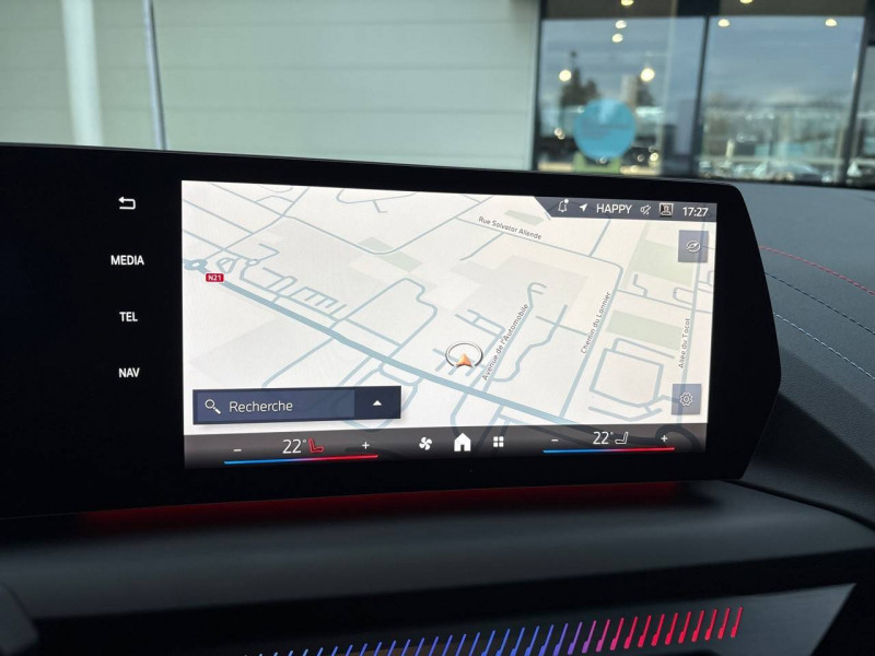 2 porte-gobelets sur la console centrale / 2 ports USB Type C dans la console centrale + 2 à l'AR / 3ème feu stop à LED sur la lunette AR / Accoudoir central AV avec compartiment de rangement / Active Guard - Avertissement de sortie de voie - Avertissement de collision frontale avec intervention sur les freins - Avertissement de virage à gauche (véhicule) avec fonction de freinage - Indicateur de limitation de vitesse - Assistant d'évitement / Airbags de tête AV et aux places latérales AR / Alarme antivol / Appel d'Urgence Intelligent (durée de vie de la voiture) Appel automatique vers le centre d'assistance BMW en cas d'accident. Touche SOS pour Appel d'Urgence manuel. Les données importantes sont automatiquement transmises aux secours : identification et localisation de la voiture, nombre de passagers à bord, statuts des airbags. Ce service utilise la carte SIM montée d'usine et ne requiert pas l'utilisation du smartphone. / Appuis-tête et ceintures de sécurité 3 points à toutes les places / BMW Curved Display / BMW Intelligent Personal Assistant / BMW Live Cockpit Navigation Plus / BMW "My Modes" (Personal/ Efficient/ Sport) / Boîte de vitesses automatique avec palettes à double embrayage DKG7 à 7 rapports / Calandre avec encadrement en chrome et barreaux verticaux / diagonaux / Capteurs d'impact - Activation de l'airbag, des feux de détresse, de l'éclairage intérieur - Déverrouillage des portes et légère ouverture des vitres / Ciel de pavillon M Anthracite / Compartiment à bagages : 2 crochets de sac, filet sur panneau droit / Contrôle de stabilité dynamique (DSC) avec dotation élargie - Assistant de démarrage en côte - Assistant dynamique de motricité (DTC) / Désignation du modèle à droite du hayon / Détecteur d'accident (crash sensor) - Allume les feux de détresse - Déverouillage des portes / Détecteur de pluie et allumage automatique des projecteurs / Déverrouillage électrique du coffre via la volet de coffre ou la clé radiocommandée / Driving Assistant - Avertisseur de franchissement de ligne (>70km/h avec vibrations dans le volant) - Avertisseur d'angle mort (>20km/h avec voyant d'alerte) - Avertisseur de risque de collision AV (>15km/h, préconditionnment du freinage >50km/h, assistance au freinage) - Avertisseur de risque de collision AR (déclenchement automatique des warning) - Avertisseur de trafic transversal AR (Avertisseur en cas de circulation transversale détectée derrière la voiture) / Eclairage de bienvenue autour du véhicule / Eclairage de plaque d'immatriculation à LED / Eclairage intérieur - Lampes de courtoisie - Eclairage habitacle AV et AR, y compris éclairage d'ambiance - Eclairage coffre à bagages sur le coté droit - Eclairage intérieur du compartiement de rangement dans l'accoudoir central - Lampes de lecture à l'AV et à l'AR - Eclairage plancher AV et AR / Eléments extérieurs M Sport / Eléments extérieurs (poignées de portes, baguettes de pare-chocs et de toit) couleur carrosserie / Eléments intérieurs M Sport / Fonction Start&Stop avec système prédictif via la navigation / Inserts décoratifs Aluminium Graphite illuminés / Jantes en alliage léger 18" style 975 M, à rayons doubles, bicolores Midnight Grey 8 J x 18 / pneus 225/45 R18.Comprennent écrous de roues antivol. Montage chaînes à neige impossible. / Kit de mobilité Bouteille de mastic pour pneumatiques - compresseur électrique 12 V (connexion à une prise 12V) / Lève-vitres AV et AR / Mesure individuelle de pression des pneumatiques avec 3 niveaux / Moteur TwinPower Turbo diesel 4 cylindres -Turbocompresseur - Technologie BMW High Precision Injection - Filtre à particule et catalyseur à oxydation - Réduction catalytique via injection d'AdBlue (SCR) / Parking Assistant - Caméra de recul - Manoeuvres de stationnemment automatique en créneau et en bataille - Freinage automatique (PDC actif) en marche AR - Assistant de marche AR/Auto-reverse / Personal eSIM Personal eSIM est la version électronique, intégrée au véhicule, de la carte SIM traditionnelle. Vous l'utilisez via un abonnement souscrit auprès d'un opérateur téléphonique et transformez ainsi votre BMW en périphérique mobile supplémentaire : - La BMW sera ajoutée au contrat du téléphone mobile du client en tant qu'appareil supplémentaire - Connectivité 5G - Les appels téléphoniques ou les connexions de données ne nécessitent pas la présence physique du téléphone portable privé / Prise 12 V dans la console centrale / Régulateur de vitesse avec fonction de freinage dans les descentes / Régulateur de vitesse avec fonction de freinage et limiteur de vitesse / Rétroviseurs extérieurs couleur carrosserie avec rappels de clignotants intégrés / Sellerie Alcantara / Similicuir Veganza Schwarz avec surpiqûres bleues / Services Après-vente connectés BMW Teleservices (durée de vie de la voiture) / Shadow Line M brillant Entourage des vitres latérales, les baguettes de bas de glace, les montants centraux ainsi que les pourtours, pieds et triangles des rétroviseurs extérieurs en noir brillant / Sorties d'échappement non visibles / Suspension Adaptive M / Système de détection de somnolence / Système Hi-Fi 6 HP / Tapis de sol anthracite / Teinte de carrosserie unie / Triangle de présignalisation avec kit de premiers secours / Volant M gainé cuir (avec surpiqûres noires) Trois branches. Jante en cuir noir 'Walknappa', inserts chrome perlé et repose-pouce dans le volant. Logo M sur la base du volant