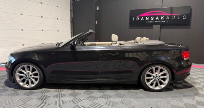 Cylindrée : 1995 cm3 EQUIPEMENTS Véhicule visible UNIQUEMENT sur rendez-vous. L'agence TransakAuto Valence, réseau national d?agences spécialisé en courtage automobile, vous propose cette BMW Série 1 Cabriolet 120d 177CH Luxe, NOIR, 10cv, 3 portes, mise en circulation le 30/01/2009. **Finition LUXE** **Pas de TVA récupérable** EXTÉRIEUR ET CHÂSSIS : -2 roues motrices -Aide parking avant et arrière -Jantes alu 18 -Lave-phares -Phares full LED -Sorties d'échappement chromées -Suspension sport -Toit décapotable électriquement INTÉRIEUR : -4 vitres électriques -4 places -Accoudoir central avant -Allume cigare -Boite séquentielle -Chargeur de CD -Climatisation automatique multi zone -Fermeture électrique -GPS 16/9 -Intérieur semi-cuir -Kit téléphone main libre -Régulateur de vitesse -Sièges réglables en hauteur -Système audio Harman Kardon -Volant cuir -Volant multifonctions -Volant réglable en hauteur et profondeur SÉCURITÉ : -Airbags -ABS -Aide au démarrage en côte -Anti dérapage -Anti patinage -Appuis-têtes actifs -ESP -Feux arrière à LED -Fixations ISOFIX -Kit téléphone main libre bluetooth -Phares avant de jour à LED -Projecteurs antibrouillard AUTRES : -Factures d'entretien -2 clés - Prix hors frais de mise à la route et carte grise. - Des erreurs pouvant se glisser dans nos annonces merci de nous contacter pour plus de renseignements sur ces dernières. Véhicule visible uniquement sur rendez-vous dans votre agence TRANSAKAUTO de Valence). Un reportage complet de 50 photos est disponible sur demande ou sur notre site internet transakauto.com - Reprise de votre ancien véhicule (sous conditions) Garantie assimilée constructeur possible de 3 à 36 mois Véhicule avec factures d'entretien et Histovec complet - Nos services : - Gestion des formalités administratives et demande de carte grise - Livraison possible dans toute la France - TRANSAKAUTO ? Réseau national ? Courtier Automobile pour les particuliers et professionnels Rejoignez-nous sur Instagram : TRANSAKAUTO FRANCE. Plus de 100 agences à votre disposition dans toute la France pour acheter ou vendre votre véhicule d'occasion ! - *Pour les trajets courts, privilégiez la marche ou le vélo. - TRANSAKAUTO VALENCE 505 ALLEE RENE HIGONNET 26760 BEAUMONT LES VALENCE - AUTRES EQUIPEMENTS - Puissance reelle : 177 - Nb rapports : 6 - Nb places : 4 - Consommation extraurbaine : 4.50 - Consommation mixte : 5.60 - Consommation urbaine : 7.40