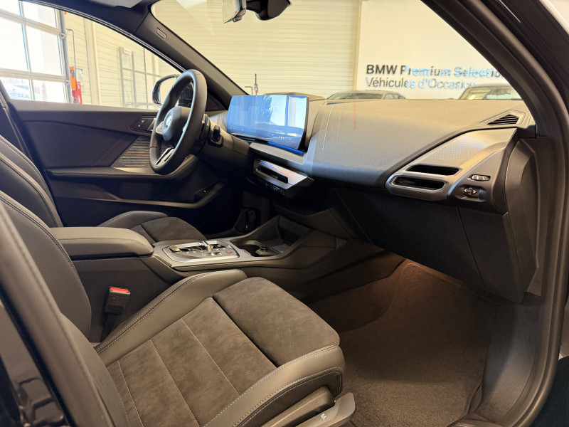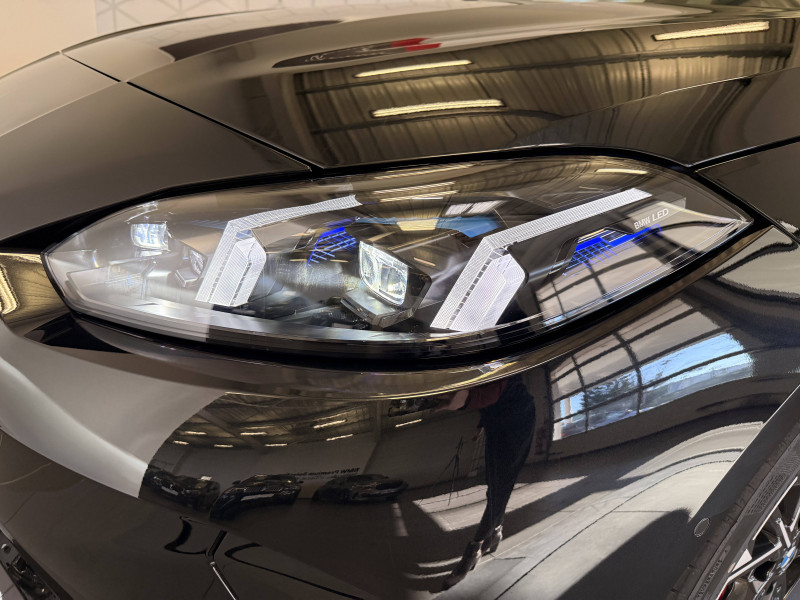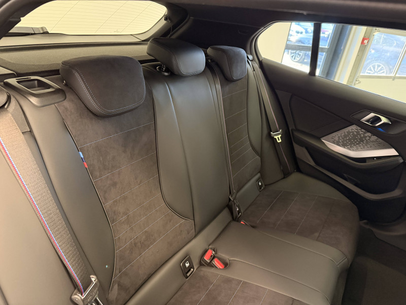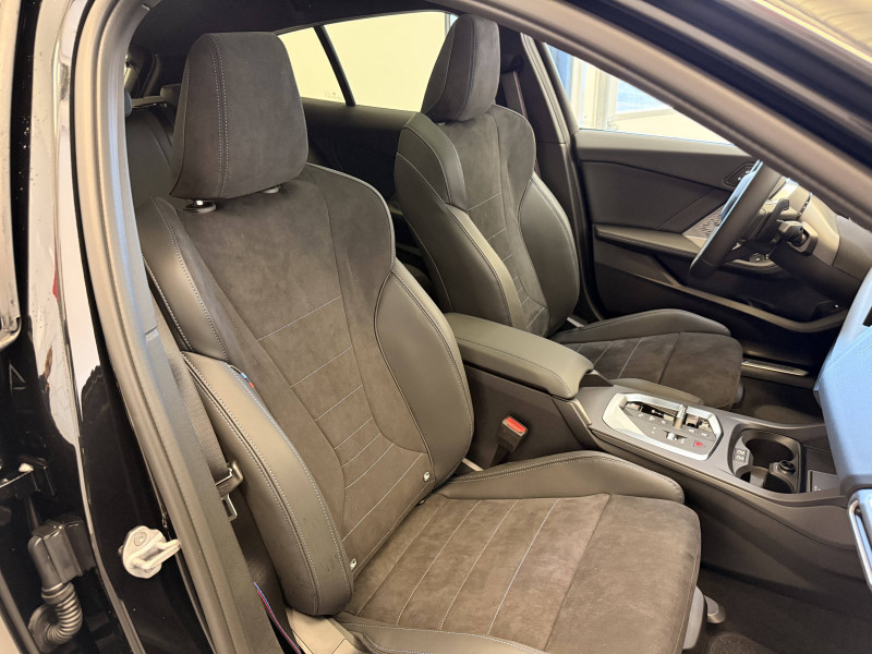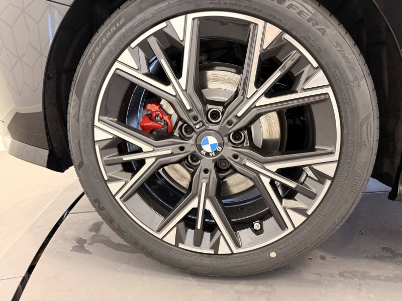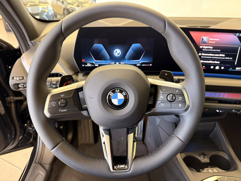 2 porte-gobelets sur la console centrale / 2 ports USB Type C dans la console centrale / 3ème feu stop à LED sur la lunette AR / Accoudoir central AV avec compartiment de rangement / Active Guard - Avertissement de sortie de voie - Avertissement de collision frontale avec intervention sur les freins - Avertissement de virage à gauche (véhicule) avec fonction de freinage - Indicateur de limitation de vitesse - Assistant d'évitement / Aides à la conduite Driving Assistant - Avertisseur de franchissement de ligne (>70km/h avec vibrations dans le volant) - Avertisseur d'angle mort (>20km/h avec voyant d'alerte) - Avertisseur de risque de collision AV (>15km/h, préconditionnment du freinage >50km/h, assistance au freinage) - Avertisseur de risque de collision AR (déclenchement automatique des warning) - Avertisseur de trafic transversal AR (Avertisseur en cas de circulation transversale détectée derrière la voiture) / Aides au stationnement Parking Assistant - Caméra de recul - Manoeuvres de stationnemment automatique en créneau et en bataille - Freinage automatique (PDC actif) en marche AR - Assistant de marche AR/Auto-reverse / Airbags de tête AV et aux places latérales AR / Alarme antivol / Appel d'Urgence Intelligent (durée de vie de la voiture) Appel automatique vers le centre d'assistance BMW en cas d'accident. Touche SOS pour Appel d'Urgence manuel. Les données importantes sont automatiquement transmises aux secours : identification et localisation de la voiture, nombre de passagers à bord, statuts des airbags. Ce service utilise la carte SIM montée d'usine et ne requiert pas l'utilisation du smartphone. / Appuis-tête et ceintures de sécurité 3 points à toutes les places / BMW Curved Display / BMW Intelligent Personal Assistant / BMW Live Cockpit Navigation Plus / BMW "My Modes" (Personal/ Efficient/ Sport) / Boîte de vitesses automatique avec palettes à double embrayage DKG7 à 7 rapports / Calandre avec encadrement en chrome et barreaux verticaux / diagonaux / Capteurs d'impact - Activation de l'airbag, des feux de détresse, de l'éclairage intérieur - Déverrouillage des portes et légère ouverture des vitres / Ciel de pavillon M Anthracite / Compartiment à bagages : 2 crochets de sac, filet sur panneau droit / Contrôle de stabilité dynamique (DSC) avec dotation élargie - Assistant de démarrage en côte - Assistant dynamique de motricité (DTC) / Désignation du modèle à droite du hayon / Détecteur d'accident (crash sensor) - Allume les feux de détresse - Déverouillage des portes / Détecteur de pluie et allumage automatique des projecteurs / Déverrouillage électrique du coffre via la volet de coffre ou la clé radiocommandée / Eclairage de bienvenue autour du véhicule / Eclairage de plaque d'immatriculation à LED / Eclairage intérieur - Lampes de courtoisie - Eclairage habitacle AV et AR, y compris éclairage d'ambiance - Eclairage coffre à bagages sur le coté droit - Eclairage intérieur du compartiement de rangement dans l'accoudoir central - Lampes de lecture à l'AV et à l'AR - Eclairage plancher AV et AR / Eléments extérieurs M Sport / Eléments extérieurs (poignées de portes, baguettes de pare-chocs et de toit) couleur carrosserie / Eléments intérieurs M Sport / Fonction Start&Stop avec système prédictif via la navigation / Inserts décoratifs Aluminium Graphite illuminés / Jantes en alliage léger 18" style 975 M, à rayons doubles, bicolores Midnight Grey 8 J x 18 / pneus 225/45 R18.Comprennent écrous de roues antivol. Montage chaînes à neige impossible. / Kit de mobilité Bouteille de mastic pour pneumatiques - compresseur électrique 12 V (connexion à une prise 12V) / Mesure individuelle de pression des pneumatiques avec 3 niveaux / Moteur TwinPower Turbo essence 3 cylindres -Turbocompresseur - Valvetronic (modification de la profondeur d'ouverture des soupapes d'admission) - Double VANOS (système de distribution variable) - Technologie BMW High Precision Injection - Filtre à particules / Personal eSIM Personal eSIM est la version électronique, intégrée au véhicule, de la carte SIM traditionnelle. Vous l'utilisez via un abonnement souscrit auprès d'un opérateur téléphonique et transformez ainsi votre BMW en périphérique mobile supplémentaire : - La BMW sera ajoutée au contrat du téléphone mobile du client en tant qu'appareil supplémentaire - Connectivité 5G - Les appels téléphoniques ou les connexions de données ne nécessitent pas la présence physique du téléphone portable privé / Prise 12 V dans la console centrale / Régulateur de vitesse avec fonction de freinage dans les descentes / Régulateur de vitesse avec fonction de freinage et limiteur de vitesse / Rétroviseurs extérieurs couleur carrosserie avec rappels de clignotants intégrés / Sellerie Alcantara / Similicuir Veganza Schwarz avec surpiqûres bleues / Services Après-vente connectés BMW Teleservices (durée de vie de la voiture) / Shadow Line M brillant Entourage des vitres latérales, les baguettes de bas de glace, les montants centraux ainsi que les pourtours, pieds et triangles des rétroviseurs extérieurs en noir brillant / Sorties d'échappement non visibles / Suspension Adaptive M / Système de détection de somnolence / Système Hi-Fi 6 HP / Tapis de sol anthracite / Teinte de carrosserie unie / Triangle de présignalisation avec kit de premiers secours / Volant M gainé cuir (avec surpiqûres noires) Trois branches. Jante en cuir noir 'Walknappa', inserts chrome perlé et repose-pouce dans le volant. Logo M sur la base du volant