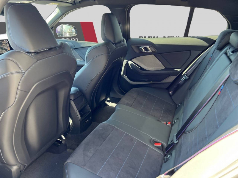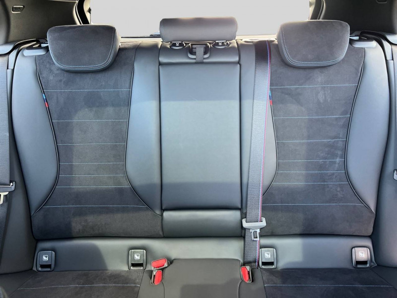 2 porte-gobelets sur la console centrale / 2 ports USB Type C dans la console centrale + 2 à l'AR / 3ème feu stop à LED sur la lunette AR / Accoudoir central AV avec compartiment de rangement / Active Guard - Avertissement de sortie de voie - Avertissement de collision frontale avec intervention sur les freins - Avertissement de virage à gauche (véhicule) avec fonction de freinage - Indicateur de limitation de vitesse - Assistant d'évitement / Airbags de tête AV et aux places latérales AR / Alarme antivol / Appel d'Urgence Intelligent (durée de vie de la voiture) Appel automatique vers le centre d'assistance BMW en cas d'accident. Touche SOS pour Appel d'Urgence manuel. Les données importantes sont automatiquement transmises aux secours : identification et localisation de la voiture, nombre de passagers à bord, statuts des airbags. Ce service utilise la carte SIM montée d'usine et ne requiert pas l'utilisation du smartphone. / Appuis-tête et ceintures de sécurité 3 points à toutes les places / BMW Curved Display / BMW Intelligent Personal Assistant / BMW Live Cockpit Navigation Plus / BMW "My Modes" (Personal/ Efficient/ Sport) / Boîte de vitesses automatique avec palettes à double embrayage DKG7 à 7 rapports / Calandre avec encadrement en chrome et barreaux verticaux / diagonaux / Capteurs d'impact - Activation de l'airbag, des feux de détresse, de l'éclairage intérieur - Déverrouillage des portes et légère ouverture des vitres / Ciel de pavillon M Anthracite / Compartiment à bagages : 2 crochets de sac, filet sur panneau droit / Contrôle de stabilité dynamique (DSC) avec dotation élargie - Assistant de démarrage en côte - Assistant dynamique de motricité (DTC) / Désignation du modèle à droite du hayon / Détecteur d'accident (crash sensor) - Allume les feux de détresse - Déverouillage des portes / Détecteur de pluie et allumage automatique des projecteurs / Déverrouillage électrique du coffre via la volet de coffre ou la clé radiocommandée / Driving Assistant - Avertisseur de franchissement de ligne (>70km/h avec vibrations dans le volant) - Avertisseur d'angle mort (>20km/h avec voyant d'alerte) - Avertisseur de risque de collision AV (>15km/h, préconditionnment du freinage >50km/h, assistance au freinage) - Avertisseur de risque de collision AR (déclenchement automatique des warning) - Avertisseur de trafic transversal AR (Avertisseur en cas de circulation transversale détectée derrière la voiture) / Eclairage de bienvenue autour du véhicule / Eclairage de plaque d'immatriculation à LED / Eclairage intérieur - Lampes de courtoisie - Eclairage habitacle AV et AR, y compris éclairage d'ambiance - Eclairage coffre à bagages sur le coté droit - Eclairage intérieur du compartiement de rangement dans l'accoudoir central - Lampes de lecture à l'AV et à l'AR - Eclairage plancher AV et AR / Eléments extérieurs M Sport / Eléments extérieurs (poignées de portes, baguettes de pare-chocs et de toit) couleur carrosserie / Eléments intérieurs M Sport / Fonction Start&Stop avec système prédictif via la navigation / Inserts décoratifs Aluminium Graphite illuminés / Jantes en alliage léger 18" style 975 M, à rayons doubles, bicolores Midnight Grey 8 J x 18 / pneus 225/45 R18.Comprennent écrous de roues antivol. Montage chaînes à neige impossible. / Kit de mobilité BMW Bouteille de mastic pour pneumatiques - compresseur électrique 12 V (connexion à une prise 12V) / Lève-vitres AV et AR / Mesure individuelle de pression des pneumatiques avec 3 niveaux / Moteur TwinPower Turbo essence 3 cylindres -Turbocompresseur - Valvetronic (modification de la profondeur d'ouverture des soupapes d'admission) - Double VANOS (système de distribution variable) - Technologie BMW High Precision Injection - Filtre à particules / Parking Assistant - Caméra de recul - Manoeuvres de stationnemment automatique en créneau et en bataille - Freinage automatique (PDC actif) en marche AR - Assistant de marche AR/Auto-reverse / Personal eSIM Personal eSIM est la version électronique, intégrée au véhicule, de la carte SIM traditionnelle. Vous l'utilisez via un abonnement souscrit auprès d'un opérateur téléphonique et transformez ainsi votre BMW en périphérique mobile supplémentaire : - La BMW sera ajoutée au contrat du téléphone mobile du client en tant qu'appareil supplémentaire - Connectivité 5G - Les appels téléphoniques ou les connexions de données ne nécessitent pas la présence physique du téléphone portable privé / Prise 12 V dans la console centrale / Régulateur de vitesse avec fonction de freinage dans les descentes / Régulateur de vitesse avec fonction de freinage et limiteur de vitesse / Rétroviseurs extérieurs couleur carrosserie avec rappels de clignotants intégrés / Sellerie Alcantara / Similicuir Veganza Schwarz avec surpiqûres bleues / Services Après-vente connectés BMW Teleservices (durée de vie de la voiture) / Shadow Line M brillant Entourage des vitres latérales, les baguettes de bas de glace, les montants centraux ainsi que les pourtours, pieds et triangles des rétroviseurs extérieurs en noir brillant / Sorties d'échappement non visibles / Suspension Adaptive M / Système de détection de somnolence / Système Hi-Fi 6 HP / Tapis de sol anthracite / Teinte de carrosserie unie / Triangle de présignalisation avec kit de premiers secours / Volant M gainé cuir (avec surpiqûres noires) Trois branches. Jante en cuir noir 'Walknappa', inserts chrome perlé et repose-pouce dans le volant. Logo M sur la base du volant
