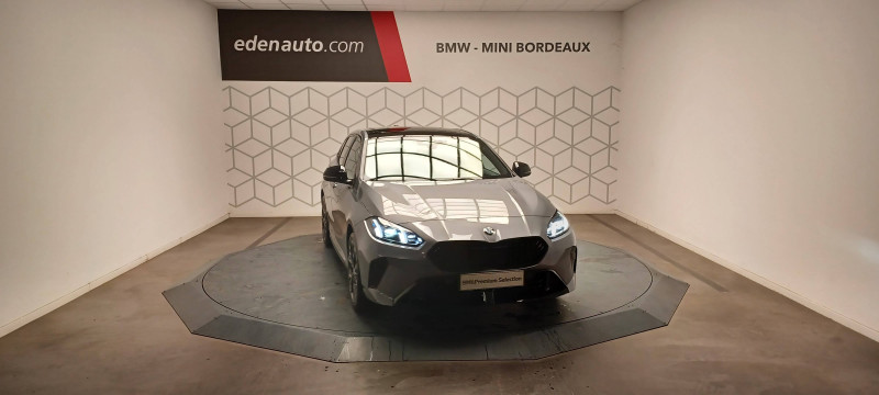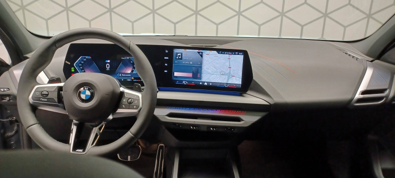 2 porte-gobelets sur la console centrale / 2 ports USB Type C dans la console centrale / 3ème feu stop à LED sur la lunette AR / Accoudoir central AV avec compartiment de rangement / Active Guard - Avertissement de sortie de voie - Avertissement de collision frontale avec intervention sur les freins - Avertissement de virage à gauche (véhicule) avec fonction de freinage - Indicateur de limitation de vitesse - Assistant d'évitement / Aides à la conduite Driving Assistant - Avertisseur de franchissement de ligne (>70km/h avec vibrations dans le volant) - Avertisseur d'angle mort (>20km/h avec voyant d'alerte) - Avertisseur de risque de collision AV (>15km/h, préconditionnment du freinage >50km/h, assistance au freinage) - Avertisseur de risque de collision AR (déclenchement automatique des warning) - Avertisseur de trafic transversal AR (Avertisseur en cas de circulation transversale détectée derrière la voiture) / Aides au stationnement Parking Assistant - Caméra de recul - Manoeuvres de stationnemment automatique en créneau et en bataille - Freinage automatique (PDC actif) en marche AR - Assistant de marche AR/Auto-reverse / Airbags de tête AV et aux places latérales AR / Alarme antivol / Appel d'Urgence Intelligent (durée de vie de la voiture) Appel automatique vers le centre d'assistance BMW en cas d'accident. Touche SOS pour Appel d'Urgence manuel. Les données importantes sont automatiquement transmises aux secours : identification et localisation de la voiture, nombre de passagers à bord, statuts des airbags. Ce service utilise la carte SIM montée d'usine et ne requiert pas l'utilisation du smartphone. / Appuis-tête et ceintures de sécurité 3 points à toutes les places / BMW Curved Display / BMW Intelligent Personal Assistant / BMW Live Cockpit Navigation Plus / BMW "My Modes" (Personal/ Efficient/ Sport) / Boîte de vitesses automatique avec palettes à double embrayage DKG7 à 7 rapports / Calandre avec encadrement en chrome et barreaux verticaux / diagonaux / Capteurs d'impact - Activation de l'airbag, des feux de détresse, de l'éclairage intérieur - Déverrouillage des portes et légère ouverture des vitres / Ciel de pavillon M Anthracite / Climatisation automatique 2 zones - Contrôle de la température et du volume d'air distribué avec 5 niveaux d'intensité, ajustés séparément entre le conducteur et le passager AV - Fonctionnalité SYNC pour que les réglages du conducteur s'appliquent à l'ensemble de l'habitacle - Capteur d'humidité et d'ensoleillement, filtre à charbon actif et microfiltre - Microfiltre à charbon actif - Apporte buses de ventilations à l'AR de la console centrale, pour les passagers AR / Compartiment à bagages : 2 crochets de sac, filet sur panneau droit / Contrôle de stabilité dynamique (DSC) avec dotation élargie - Assistant de démarrage en côte - Assistant dynamique de motricité (DTC) / Désignation du modèle à droite du hayon / Détecteur d'accident (crash sensor) - Allume les feux de détresse - Déverouillage des portes / Détecteur de pluie et allumage automatique des projecteurs / Déverrouillage électrique du coffre via la volet de coffre ou la clé radiocommandée / Eclairage de bienvenue autour du véhicule / Eclairage de plaque d'immatriculation à LED / Eclairage intérieur - Lampes de courtoisie - Eclairage habitacle AV et AR, y compris éclairage d'ambiance - Eclairage coffre à bagages sur le coté droit - Eclairage intérieur du compartiement de rangement dans l'accoudoir central - Lampes de lecture à l'AV et à l'AR - Eclairage plancher AV et AR / Eléments extérieurs M Sport / Eléments extérieurs (poignées de portes, baguettes de pare-chocs et de toit) couleur carrosserie / Eléments intérieurs M Sport / Fonction Start&Stop avec système prédictif via la navigation / Inserts décoratifs Aluminium Graphite illuminés / Jantes en alliage léger 18" style 975 M, à rayons doubles, bicolores Midnight Grey 8 J x 18 / pneus 225/45 R18.Comprennent écrous de roues antivol. Montage chaînes à neige impossible. / Kit de mobilité Plus BMW - Bouteille avec liquide anti-crevaison - Compresseur avec alimentation autonome via batterie rechargeable - Système se fixant au centre de la jante avec maintient de pression automatique du pneu crevé durant la conduite - Simple d'utilisation et réduction du temps passé sur le lieu de la panne / Mesure individuelle de pression des pneumatiques avec 3 niveaux / Moteur TwinPower Turbo essence 3 cylindres -Turbocompresseur - Valvetronic (modification de la profondeur d'ouverture des soupapes d'admission) - Double VANOS (système de distribution variable) - Technologie BMW High Precision Injection - Filtre à particules / Personal eSIM Personal eSIM est la version électronique, intégrée au véhicule, de la carte SIM traditionnelle. Vous l'utilisez via un abonnement souscrit auprès d'un opérateur téléphonique et transformez ainsi votre BMW en périphérique mobile supplémentaire : - La BMW sera ajoutée au contrat du téléphone mobile du client en tant qu'appareil supplémentaire - Connectivité 5G - Les appels téléphoniques ou les connexions de données ne nécessitent pas la présence physique du téléphone portable privé / Prise 12 V dans la console centrale / Régulateur de vitesse avec fonction de freinage dans les descentes / Régulateur de vitesse avec fonction de freinage et limiteur de vitesse / Rétroviseurs extérieurs couleur carrosserie avec rappels de clignotants intégrés / Sellerie Alcantara / Similicuir Veganza Schwarz avec surpiqûres bleues / Services Après-vente connectés BMW Teleservices (durée de vie de la voiture) / Shadow Line M brillant Entourage des vitres latérales, les baguettes de bas de glace, les montants centraux ainsi que les pourtours, pieds et triangles des rétroviseurs extérieurs en noir brillant / Sorties d'échappement non visibles / Suspension Adaptive M / Système de détection de somnolence / Système