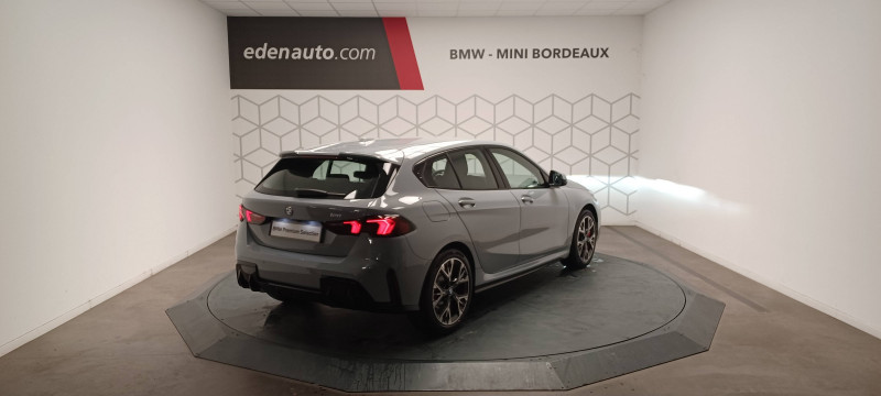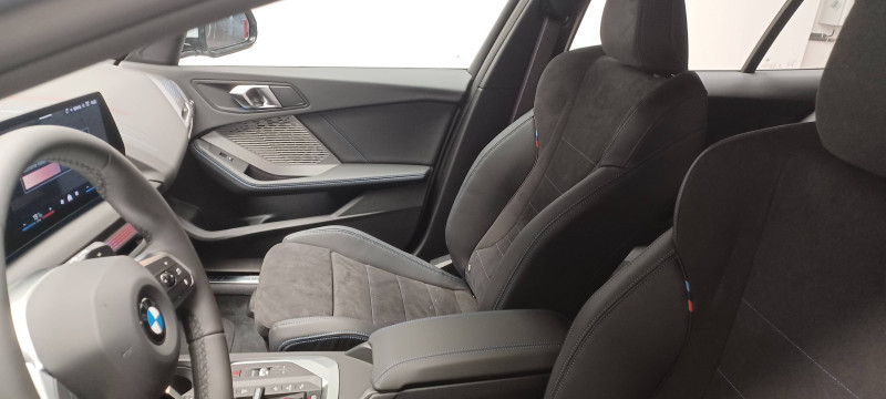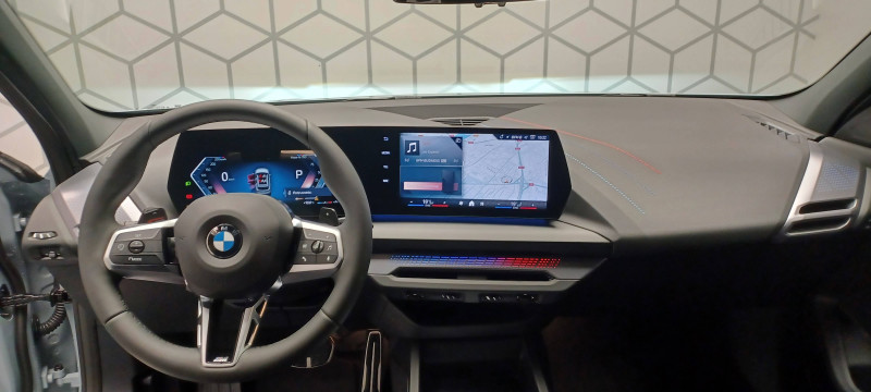2 porte-gobelets sur la console centrale / 2 ports USB Type C dans la console centrale / 3ème feu stop à LED sur la lunette AR / Accoudoir central AV avec compartiment de rangement / Active Guard - Avertissement de sortie de voie - Avertissement de collision frontale avec intervention sur les freins - Avertissement de virage à gauche (véhicule) avec fonction de freinage - Indicateur de limitation de vitesse - Assistant d'évitement / Aides à la conduite Driving Assistant - Avertisseur de franchissement de ligne (>70km/h avec vibrations dans le volant) - Avertisseur d'angle mort (>20km/h avec voyant d'alerte) - Avertisseur de risque de collision AV (>15km/h, préconditionnment du freinage >50km/h, assistance au freinage) - Avertisseur de risque de collision AR (déclenchement automatique des warning) - Avertisseur de trafic transversal AR (Avertisseur en cas de circulation transversale détectée derrière la voiture) / Aides au stationnement Parking Assistant - Caméra de recul - Manoeuvres de stationnemment automatique en créneau et en bataille - Freinage automatique (PDC actif) en marche AR - Assistant de marche AR/Auto-reverse / Airbags de tête AV et aux places latérales AR / Alarme antivol / Appel d'Urgence Intelligent (durée de vie de la voiture) Appel automatique vers le centre d'assistance BMW en cas d'accident. Touche SOS pour Appel d'Urgence manuel. Les données importantes sont automatiquement transmises aux secours : identification et localisation de la voiture, nombre de passagers à bord, statuts des airbags. Ce service utilise la carte SIM montée d'usine et ne requiert pas l'utilisation du smartphone. / Appuis-tête et ceintures de sécurité 3 points à toutes les places / BMW Curved Display / BMW Intelligent Personal Assistant / BMW Live Cockpit Navigation Plus / BMW "My Modes" (Personal/ Efficient/ Sport) / Boîte de vitesses automatique avec palettes à double embrayage DKG7 à 7 rapports / Calandre avec encadrement en chrome et barreaux verticaux / diagonaux / Capteurs d'impact - Activation de l'airbag, des feux de détresse, de l'éclairage intérieur - Déverrouillage des portes et légère ouverture des vitres / Ciel de pavillon M Anthracite / Climatisation automatique 2 zones - Contrôle de la température et du volume d'air distribué avec 5 niveaux d'intensité, ajustés séparément entre le conducteur et le passager AV - Fonctionnalité SYNC pour que les réglages du conducteur s'appliquent à l'ensemble de l'habitacle - Capteur d'humidité et d'ensoleillement, filtre à charbon actif et microfiltre - Microfiltre à charbon actif - Apporte buses de ventilations à l'AR de la console centrale, pour les passagers AR / Compartiment à bagages : 2 crochets de sac, filet sur panneau droit / Contrôle de stabilité dynamique (DSC) avec dotation élargie - Assistant de démarrage en côte - Assistant dynamique de motricité (DTC) / Désignation du modèle à droite du hayon / Détecteur d'accident (crash sensor) - Allume les feux de détresse - Déverouillage des portes / Détecteur de pluie et allumage automatique des projecteurs / Déverrouillage électrique du coffre via la volet de coffre ou la clé radiocommandée / Eclairage de bienvenue autour du véhicule / Eclairage de plaque d'immatriculation à LED / Eclairage intérieur - Lampes de courtoisie - Eclairage habitacle AV et AR, y compris éclairage d'ambiance - Eclairage coffre à bagages sur le coté droit - Eclairage intérieur du compartiement de rangement dans l'accoudoir central - Lampes de lecture à l'AV et à l'AR - Eclairage plancher AV et AR / Eléments extérieurs M Sport / Eléments extérieurs (poignées de portes, baguettes de pare-chocs et de toit) couleur carrosserie / Eléments intérieurs M Sport / Fonction Start&Stop avec système prédictif via la navigation / Inserts décoratifs Aluminium Graphite illuminés / Jantes en alliage léger 18" style 975 M, à rayons doubles, bicolores Midnight Grey 8 J x 18 / pneus 225/45 R18.Comprennent écrous de roues antivol. Montage chaînes à neige impossible. / Kit de mobilité Plus BMW - Bouteille avec liquide anti-crevaison - Compresseur avec alimentation autonome via batterie rechargeable - Système se fixant au centre de la jante avec maintient de pression automatique du pneu crevé durant la conduite - Simple d'utilisation et réduction du temps passé sur le lieu de la panne / Mesure individuelle de pression des pneumatiques avec 3 niveaux / Moteur TwinPower Turbo essence 3 cylindres -Turbocompresseur - Valvetronic (modification de la profondeur d'ouverture des soupapes d'admission) - Double VANOS (système de distribution variable) - Technologie BMW High Precision Injection - Filtre à particules / Personal eSIM Personal eSIM est la version électronique, intégrée au véhicule, de la carte SIM traditionnelle. Vous l'utilisez via un abonnement souscrit auprès d'un opérateur téléphonique et transformez ainsi votre BMW en périphérique mobile supplémentaire : - La BMW sera ajoutée au contrat du téléphone mobile du client en tant qu'appareil supplémentaire - Connectivité 5G - Les appels téléphoniques ou les connexions de données ne nécessitent pas la présence physique du téléphone portable privé / Prise 12 V dans la console centrale / Régulateur de vitesse avec fonction de freinage dans les descentes / Régulateur de vitesse avec fonction de freinage et limiteur de vitesse / Rétroviseurs extérieurs couleur carrosserie avec rappels de clignotants intégrés / Sellerie Alcantara / Similicuir Veganza Schwarz avec surpiqûres bleues / Services Après-vente connectés BMW Teleservices (durée de vie de la voiture) / Shadow Line M brillant Entourage des vitres latérales, les baguettes de bas de glace, les montants centraux ainsi que les pourtours, pieds et triangles des rétroviseurs extérieurs en noir brillant / Sorties d'échappement non visibles / Suspension Adaptive M / Système de détection de somnolence / Système