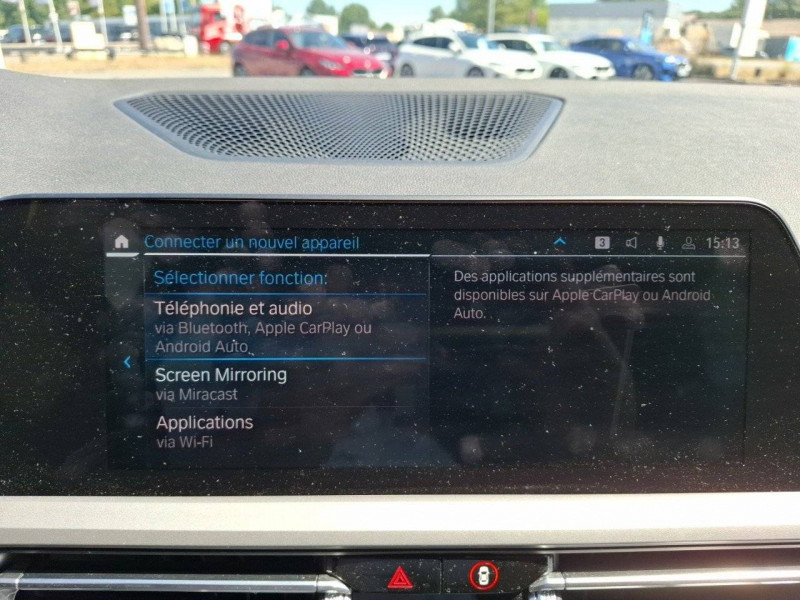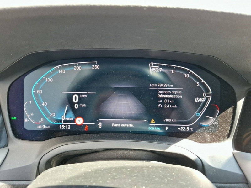 2 porte-gobelets sur la console centrale / 3ème feu stop sur la lunette AR / 5 places / ABS, y compris assistant de freinage / Airbags de tête à l'AV et aux places latérales AR / Appel d'Urgence Intelligent (durée de vie de la voiture) / Apps véhicule (3 ans) / BMW Live Cockpit Navigation Plus / Boîte de vitesses automatique 8 rapports / Carte SIM 4G LTE pour les Services ConnectedDrive / Ceintures de sécurité 3 points pour toutes les places / Clés radiocommandées à mémorisation automatique des réglages "Personal Profile" / Commande électrique du volet de coffre / Contrôle de freinage en courbe CBC / Controller iDrive avec touches d'accès directs / Désignation du modèle sur la malle à droite / Détecteur de pluie et allumage automatique des projecteurs / Direction à assistance électrique Servotronic, asservie à la vitesse BMW EfficientDynamics / Eclairage d'accueil / Eclairage dans le coffre / Ecrous de roues antivol / Eléments extérieurs (poignées de portes et baguettes de toit) couleur carrosserie / Equipements Finition Lounge / Feux de croisement et feux de route à technologie Bi-LED / Feux de jour et clignotants AV/AR à LED / Filet de séparation du coffre / Fonction d'arrêt et de redémarrage automatique du moteur BMW EfficientDynamics / Fonctionnalités "Follow Me Home" (éclairage d'accompagnement) / Frein de parking électromécanique avec fonction Auto-Hold / Grilles de calandre cerclés de chrome avec 9 barreaux verticaux noirs / Inserts décoratifs Quarzsilver mat grainé / Interface Bluetooth avec fonction streaming audio / Jantes en alliage léger 17" style 778 à rayons en V, 7.5Jx17" et pneus 225/50 R17 / Kit Eclairage / Kit rangement / Lève-vitres AV/AR électriques avec commande par impulsion et sécurité enfants / Mesure individuelle de pression des pneumatiques / Notice d'utilisation de la voiture intégrée et carnet d'entretien électronique avec BMW Service History / Ordinateur de bord, Check-Control et indicateur de température extérieure / Pack Connected Pro / Préparation pour feux de route permanents anti-éblouissement / Prise 12 V dans la console centrale / Prises USB (1 type A dans la console centrale et 1 type C dans l'accoudoir central) / Rails de toit Noir mat / Régulateur de vitesse avec fonction de freinage et limiteur de vitesse / Rétroviseur intérieur électrochrome / Rétroviseurs extérieurs couleur carrosserie et chauffants avec rappels de clignotants intégrés / Sélecteur de mode de conduite - (3 modes) ECO PRO, Comfort, Sport / Sellerie Tissu "Hevelius" Schwarz / Services Après-vente connectés BMW TeleServices (durée de vie de la voiture) Appel Automatique Appel Manuel Appel "BMW Assistance Teleservice Battery Guard Appel Hotline / Seuils de portes avec inscription BMW / Sièges AV réglables en inclinaison / Sortie d'échappement simple à gauche et à droite de 90 mm / Suite Pack Connected Pro / Système d'aide au stationnement PDC AV et AR / Système de récupération de l'énergie au freinage BMW EfficientDynamics / Tapis de sol en velours / Technologie BMW TwinPower Turbo BMW EfficientDynamics / Teinte de carrosserie unie (Schwarz) / Touches multifonctions sur le volant / Triangle de signalisation et trousse de 1er secours / Tuner DAB Inclus DAB+. Permet la réception de la radio numérique en plus de la radio analogique et offre une qualité sonore proche du CD. Des informations supplémentaires comme le titre et l'interprète sont transmises sous forme de texte. La Radio Numérique Terrestre est disponible à Paris, Marseille, Nice et Monaco, Lille, Lyon, Nantes, Rouen, Strasbourg et Toulouse. Les stations de radio numériques sont essentiellement des stations associatives, locales ou indépendantes / Verrouillage centralisé des portes, du coffre et de la trappe à carburant / Vitres avec protection contre la chaleur et le soleil