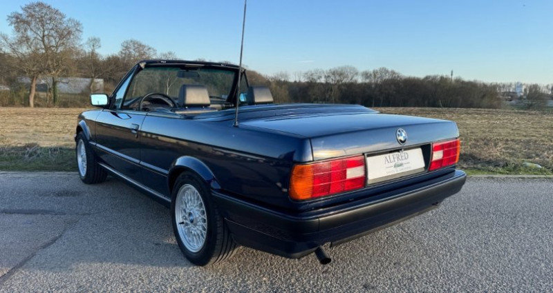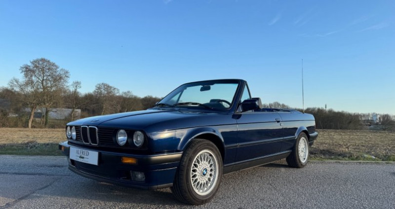 Un rayon de soleil et une once de nostalgie suffisent à se projeter immédiatement au volant de cette superbe BMW Série 318i E30 Cabriolet. Importée d'Allemagne il y a huit ans, cet exemplaire exceptionnel totalise seulement 58320 kms d'origine. Le carnet d'entretien justifie le suivi exclusif au sein de BMW DUSSELDORP DEVENTER jusqu'en 2016. Celui ci est accompagné de toutes ses documentations d'origine. Les documents administratifs d'importation sont également fournis. N'ayant que très peu roulé depuis son arrivée sur notre territoire, ce modèle a bénéficié (hors réseau) d'une remise en route complète. Une vidange de l'intégralité des fluides, remplacement des filtres, distribution neuve, réparation du bloc ABS, remplacement du récepteur d'embrayage, du joint de couvre culasse, des biellettes et Silentblocs de barres stabilisatrices, de la batterie et des plaquettes de freins justifie d'une auto prête à rouler dans une condition optimale. Elle se comporte littéralement comme un véhicule sorti de concession. Son dernier contrôle technique est ressorti vierge. L'autoradio d'origine en parfait état, les sièges chauffants fonctionnels offriront le confort parfait pour de longues balades les cheveux au vent. Le modèle possède un hard top en excellent état cosmétique. Une réfection du ciel de toit sera réalisé ou fera l'objet d'une négociation raisonnable. A cet instant, il manque une cache moyeu qui sera bien sûr installé dès réception. L'état général est exceptionnel, le modèle est à découvrir au sein de notre agence. Portfolio photos disponible sur demande.