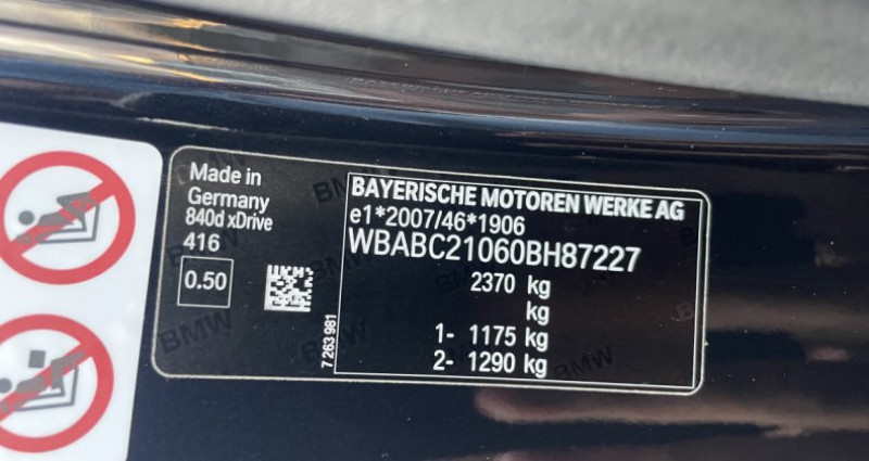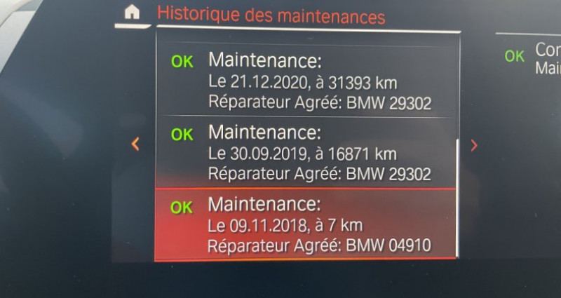 Cylindrée : 2993 cm3 Nb. Vitesse : 8 - 8 Touches de raccourcis programmables et 1 touche d'accès direct aux services ConnectedDrive - ABS - Accès confort avec préparation 'BMW Digital Key' - Airbag genoux - Airbag passager AV désactivable via la clé - Airbags conducteur et passager AV - Airbags de tête AV/AR - Airbags latéraux AV - Alarme antivol - Allumage automatique des projecteurs - Appel d'Urgence Intelligent (durée de vie de la voiture) - Appuis-tête AV actifs - Attention Assist : signale la perte de vigilance du conducteur - Baguettes de seuil chromées avec inscription BMW à l'AV - Banquette AR rabattable 50/50 - BMW Apps (durée de vie du véhicule) - BMW Live Cockpit Navigation Pro - Boîte à gants verrouillable - Bouton de démarrage 'Stop/Start', démarrage sans manipulation de la clé - Buses de lave-glace dégivrantes - Caméra de recul - Ciel de pavillon 'Anthrazit' - Clés radiocommandées à mémorisation automatique des réglages 'Personal Profile' - Clignotants blancs LED intégrés dans les boitiers des rétroviseurs extérieurs - Climatisation automatique bi-zone à fonctionnalités étendues - Commande électrique du coffre - Connectivité avancée sans fil avec Hot Spot Wi-Fi et recharge sans fil par induction - Construction allégée aluminium des trains AV et AR - Construction allégée intelligente Carbon Core BMW EfficientDynamics - Contrôle dynamique de la traction DTC - Contrôle dynamique de stabilité DSC - Détecteur de pluie et allumage automatique des projecteurs - Détection de l'occupation du siège passager AV - Direction à assistance électrique BMW EfficientDynamics - Direction ActiveDrive à 4 roues directrices - Doubles sorties d'échappement - Drive Assist - Eclairage d'ambiance - Eclairage de bienvenue actionnable par télécommande - Ecrous de roues antivol - Feux de route permanents anti-éblouissement - Feux de stop dynamique à technologie LED - Filtre à particules - Fixations ISOFIX aux places AR - Fonction 'Follow me Home' - Fonction d'arrêt et de redémarrage automatique du moteur BMW EfficientDynamics - Frein de parking électrique avec fonction 'Automatic Hold' - Freins à disque ventilés hautes performances à étriers flottants AV et AR - Hotspot Wi-Fi - Indicateur de maintenance, indicateur de consommation moyenne - Indicateur de pression des pneus - Inserts décoratifs Aluminium 'Mesheffect' foncé - Interface Bluetooth et port USB - Jantes en alliage léger 19'' style 727 M bicolores à rayons doubles - Lève-vitres électriques, fonction péage/confort/anticoincement - Manuel d'utilisation intégré - Mesure individuelle de pression des pneumatiques - Mode ECO PRO étendu avec mode roue libre et assistant d'anticipation - Ordinateur de bord avec indicateur de température extérieure - Pack Advanced Full LED - Pack Aérodynamique M - Pack Connected Pro - Pare-soleil avec miroir de courtoisie éclairé - Park Assist - Pince de batterie de sécurité - Planche de bord en cuir - Poches aumonières au dos des sièges AV - Projecteurs antibrouillard à LED - Protection active des occupants - Recyclage de l'air et microfiltre à charbon actif - Régulateur de vitesse avec fonction de freinage - Rétroviseurs extérieurs couleur carrosserie à réglage électrique, asphériques et dégivrants - Rétroviseurs extérieurs rabattables électriquement rétroviseurs intérieur et extérieur (côté conducteur) électrochromes - Sélecteur de mode de conduite- (3 modes) ECO PRO, Comfort, Sport - Sellerie cuir 'Mérino' étendu - Services Après-vente connectés BMW TeleServices (durée de vie de la voiture) - Services ConnectedDrive (3 ans) - Shadow Line brillant - Sièges AV chauffants - Sièges AV électriques à memoire conducteur - Sièges multifonctions pour conducteur et passager AV - Suspension AV et AR pneumatique - Suspension SelectDrive - Système d'aide au stationnement PDC AV et AR - Système de récupération de l'énergie au freinage BMW EfficientDynamics - Système Hi-Fi, 9 HP, 205 W - Tapis de sol en velours - Triangle de signalisation et trousse de 1er secours - Verrouillage centralisé - Volant M gainé cuir - Volant Sport gainé cuir Origine francaise , excellent etat , entretien exclusif chez BMW , tres belle !