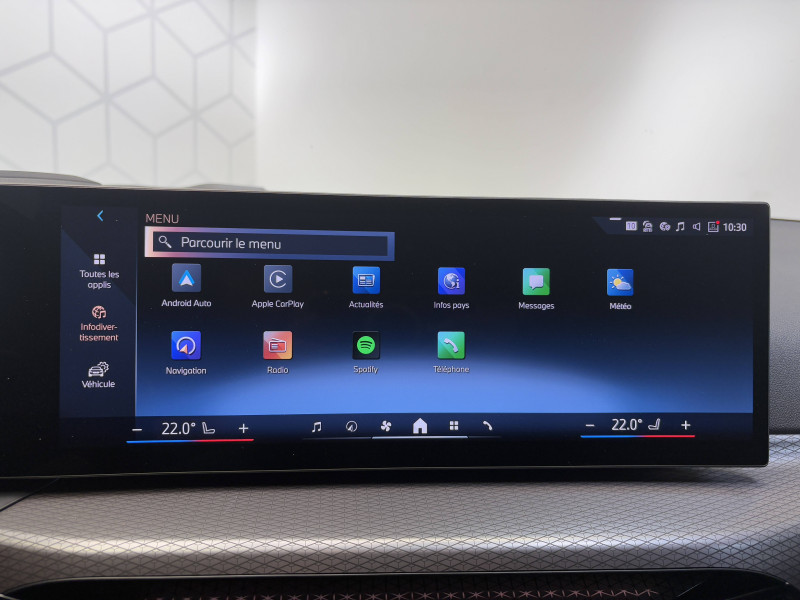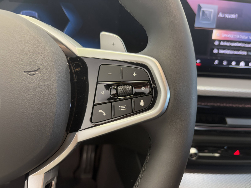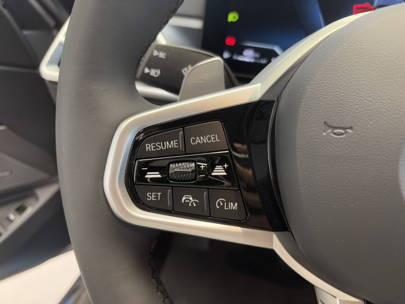 2 Portes-gobelets sur la console centrale / 3ème feu stop sur la lunette AR / 5 places / ABS, y compris assistant de freinage / Active Guard Plus Avertissement de collision frontale avec intervention de freinage grâce à un radar et à une caméra (entre 5 km/h et 250 km/h) - Avertissement de chauvechement de ligne avec impulsion sur la direction - Assistance de limitation de vitesse avec informations de limite de vitesse / Airbags de tête à l'AV et aux places latérales AR / Alarme antivol Surveillance des portes, coffre et capot moteur, protection de l'habitacle, détecteur de soulèvement et sirène. / Appel d'Urgence Intelligent (durée de vie de la voiture) Appel automatique vers le centre d'assistance BMW en cas d'accident. Touche SOS pour Appel d'Urgence manuel. Les données importantes sont automatiquement transmises aux secours : identification et localisation de la voiture, nombre de passagers à bord, statuts des airbags. Ce service utilise la carte SIM montée d'usine et ne requiert pas l'utilisation du smartphone. / Apps véhicule (3 ans) Applications intégrées au véhicule permettant notamment la réception des données suivantes : actualités (Podcasts "News Next"), prévisions météo, guide de voyage (infos légales par pays), infos prix des carburants. Inscription via l'application pour Smartphone My BMW. Achat et renouvellement du service possible sur le BMW Shop. Ce service utilise la carte SIM montée d'usine. Usage illimité sans surcoût pendant la durée de l'abonnement. / BMW Curved Display / BMW EfficientDynamics Direction à assistance électrique Servotronic, Fonction d'arrêt et de redémarrage automatique du moteur, Système de récupération de l'énergie au freinage, Technologie BMW TwinPower Turbo avec injection directe et rampe commune de 3ème génération et un turbocompresseur à géométrie variable / BMW Live Cockpit Navigation Plus Dalle numérique BMW Curved Display de 12,3'' derrière le volant et 14,9'' au dessus de la console centrale, BMW Intelligent Personal Assistant, Fonctions Intelligentes (3 ans), Remote Software Upgrade (durée illimitée) / Boîte de vitesses automatique Sport 8 rapports avec palettes au volant, mode roue libre au ralenti et Launch Control. / Capacité du reservoir augmentée Réservoir de carburant : 59 litres, Réservoir Ad-Blue : 18,9 litres / Carte SIM 4G LTE pour les Services ConnectedDrive / Ceintures de sécurité 3 points à toutes les places / Ciel de pavillon M Anthracite / Clés radiocommandées à mémorisation automatique des réglages "Personal Profile" / Connexion multiple de téléphones / Contrôle de freinage en courbe CBC / Contrôle Dynamique de la Traction (DTC) et Contrôle Dynamique de Stabilité (DSC) / Controller iDrive avec touches de raccourci / Démarrage "confort" / Désignation du modèle sur la malle à gauche / Détecteur de pluie et allumage automatique des projecteurs / Direction DirectDrive à démultiplication variable Crémaillère à pas variable en fonction du braquage de volant pour un effort de braquage moindre. Facilite les manoeuvres à basse vitesse et la réactivité en conduite dynamique. / Double prise USB Type C dans la console centrale AR / Eclairage d'accueil / Eclairage dans le coffre et la boîte à gants / Ecrous de roues antivol / Eléments extérieurs (poignées de porte, baguettes de toit) couleur carrosserie / Feux de croisement et feux de route à technologie LED / Feux de jour et clignotants AV/AR à LED / Feux de route anti-éblouissement - Fonction à la demande Possibilité de post-équiper le véhicule de la fonctionnalité« feux de route anti-éblouissement » via le BMW Shop. / Fonctionnalité "Follow Me Home" (éclairage d'accompagnement) : les feux de croisement restent allumés quelques instants une fois le contact coupé / Frein de parking électromécanique avec fonction auto-hold / Hybridation légère (48V) L'hybridation légère sert à récupérer l'énergie cinétique produite lors les phases de freinage et vient en support du moteur à combustion durant les phases d'accélération. Cette technologie réduit la consommation de carburant et les émissions tout en conférant davantage de dynamisme. L'hybridation légère permet également à la technologie Start/Stop de fonctionner de manière plus rapide et plus douce. / Inserts décoratifs M Aluminium Rhombicle Anthracite / Jantes en alliage léger 18" style 848 M à rayons double, bicolores 7,5Jx18" et pneus 225/45 R18, Comprend les écrous de roues antivol. / Kit éclairage / Kit rangement Bac de rangement dans les portes AV et AR, prise 12 V dans la console centrale et dans le coffre à bagages, filets dans le coffre à bagages, à gauche et à droite, crochets d'arrimage multifonction dans le coffre à bagages. / Lève-vitres AV/AR électriques avec commande par impulsion et sécurité enfants / Mesure individuelle de pression des pneumatiques / Norme GSR 2 (General Safety Regulation) / Notice d'utilisation de la voiture intégrée et carnet d'entretien électronique avec BMW Service History / Ordinateur de bord, Check-Control et indicateur de température extérieure / Pack aérodynamique M / Pack Connected Professional Fonctions "Ma BMW à distance" (durée inderterminée), Remote 3D View (Vue 3D à distance) (durée indeterminée), In-Car Experiences (3 ans), Connected Navigation (3 ans), Information Trafic en Temps Réel (RTTI) (3 ans), Divertissement à bord (offert pendant 1 an), Smartphone intégration (durée illimitée), Connected Music (3 ans), Amazon Alexa (3 ans), Services eDrive (3 ans). / Parking Assistant Comprend l'option Caméra de recul. Manoeuvres de stationnemment en créneau et en bataille facilitées par mesure automatique, Assistant de marche AR/Auto-reverse / Personal eSIM Personal eSIM est la version électronique, intégrée au véhicule, de la carte SIM traditionnelle. Vous l'utilisez via un abonnement souscrit auprès d'un opérateur téléphonique et transf