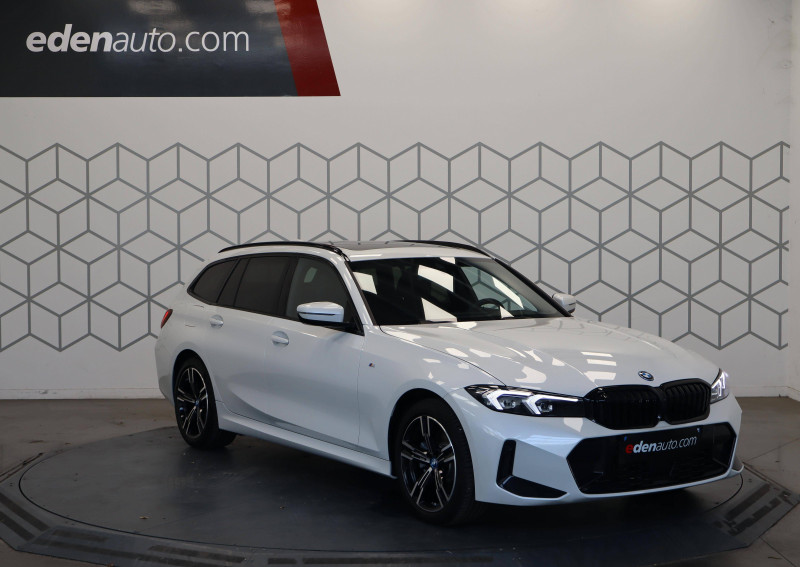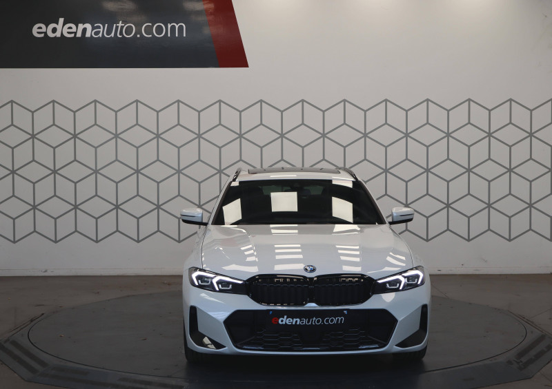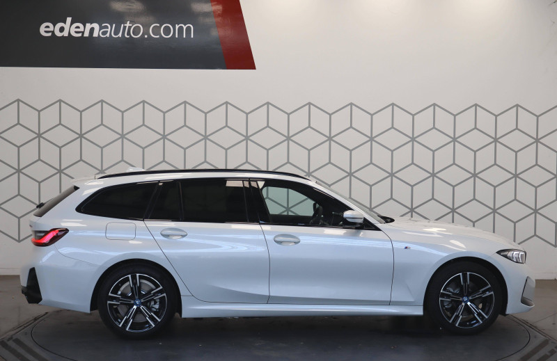 2 porte-gobelets sur la console centrale / 3ème feu stop sur la lunette AR / 5 places / ABS, y compris assistant de freinage / Active Guard Plus Avertissement de collision frontale avec intervention de freinage grâce à un radar et à une caméra (entre 5 km/h et 250 km/h) - Avertissement de chauvechement de ligne avec impulsion sur la direction - Assistance de limitation de vitesse avec informations de limite de vitesse / Airbags de tête à l'AV et aux places latérales AR / Appel d'Urgence Intelligent (durée de vie de la voiture) / Apps véhicule (3 ans) / Avertisseur sonore pour piétons / BMW Live Cockpit Navigation Plus / BMW Widescreen / Boîte de vitesse automatique 8 rapports avec palettes au volant / Câble de recharge T2-T2 (5m) Monophase 7kW - Mode 3 pour la recharge sur borne de recharge / Carte SIM 4G LTE pour les Services ConnectedDrive / Ceintures de sécurité 3 points pour toutes les places / Ciel de pavillon M Anthracite / Clés radiocommandées à mémorisation automatique des réglages "Personal Profile" / Commande électrique du volet de coffre / Connexion multiple de téléphones / Contrôle de freinage en courbe CBC / Controller iDrive avec touches de raccourci / Désignation du modèle sur la malle à gauche / Détecteur de pluie et allumage automatique des projecteurs / Direction à assistance électrique Servotronic BMW EfficientDynamics / Eclairage d'accueil / Eclairage dans le coffre / Ecrous de roues antivol / Eléments extérieurs (poignées de portes et baguettes de toit) couleur carrosserie / Feux de croisement et feux de route à technologie Bi-LED / Feux de jour et clignotants AV/AR à LED / Filet de séparation du coffre / Finition M Sport / Fonction d'arrêt et de redémarrage automatique du moteur BMW EfficientDynamics / Fonctionnalités "Follow Me Home" (éclairage d'accompagnement) / Frein de parking électromécanique avec fonction Auto-Hold / Inserts décoratifs M Aluminium "Rhombicle" Anthracite / Jantes en alliage léger 18" (46 cm) style 848 M bicolores à rayons doubles avec pneumatiques mixtes 7,5Jx18 / pneus 225/45 R18, 8,5Jx18 / pneus 255/40 R18, Comprend Ecrous antivol de roues / Kit Eclairage / Kit rangement / Lève-vitres AV/AR électriques avec commande par impulsion et sécurité enfants / Mesure individuelle de pression des pneumatiques / Notice d'utilisation de la voiture intégrée et carnet d'entretien électronique avec BMW Service History / Ordinateur de bord avec Check-Control et indicateur de température extérieure / Pack Aérodynamique M / Pack Connected Pro / Préparation pour feux de route anti-éblouissement / Prises USB (1 type A dans la console centrale et 1 type C dans l'accoudoir central) / Rails de toit Shadow Line M brillant / Réglage électrique de la largeur du dossier conducteur / Régulateur de vitesse avec fonction de freinage et limiteur de vitesse / Rétroviseur intérieur électrochrome / Rétroviseurs extérieurs couleur carrosserie et chauffants avec rappels de clignotants intégrés / Sélecteur de mode de conduite - (3 modes) ECO PRO, Comfort, Sport / Sellerie Alcantara / Similicuir Sensatec "Schwarz" avec surpiqûres contrastantes Bleues / Services Après-vente connectés BMW TeleServices (durée de vie de la voiture) - Appel Automatique - Appel Manuel - Appel "BMW Assistance - Teleservice Battery Guard - Appel Hotline / Seuils de portes avec inscription BMW / Shadow Line M brillant Eléments en noir à haute brillance : - Panneaux de garnissage des montants B et C - Encadrement extérieur des vitres latérales - Pieds et triangles des rétroviseurs extérieurs - Rails de toit (Touring) / Sièges Advanced pour conducteur et passager AV / Sièges conducteur et passages réglables en hauteur et inclinaison du dossier / Sortie d'échappement simple à gauche et à droite de 100 mm / Système de récupération de l'énergie au freinage BMW EfficientDynamics / Tapis de sol en velours / Technologie 4 roues motrices intelligente xDrive / Technologie BMW TwinPower Turbo avec injection directe BMW EfficientDynamics / Teinte de carrosserie unie / Touches multifonctions sur le volant / Triangle de présignalisation avec kit de premiers secours / Tuner DAB / Verrouillage centralisé des portes, du coffre et de la trappe à essence / Vitres avec protection contre la chaleur et le soleil / Volant M gainé cuir Trois branches, aplati en bas et marque à 12 heures en noir. Volant en cuir noir 'Walknappa' avec surpiqûres noires, inserts chrome nacré et repose-pouce dans le volant. Logo M sur la base du volant. / Welcome Pack BMW avec carte BMW Charging