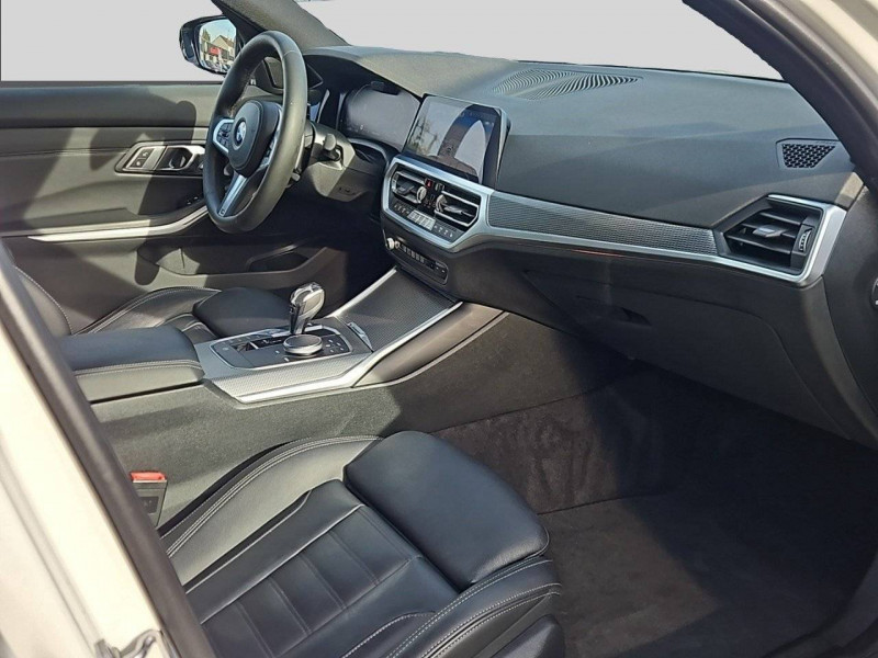 2 porte-gobelets sur la console centrale / 3ème feu stop sur la lunette AR / ABS, y compris assistant de freinage / Appel d'Urgence Intelligent (durée de vie de la voiture) / Apps véhicule (3 ans) / BMW EfficientDynamics / BMW Live Cockpit Navigation Plus / BMW Live Cockpit Navigation Pro / Boîte de vitesses automatique 8 rapports / Boîte de vitesses automatique Sport 8 rapports avec palettes au volant / Carte SIM 4G LTE pour les Services ConnectedDrive / Ceintures de sécurité 3 points pour toutes les places / Ciel de pavillon "Anthrazit" BMW Individual / Clés radiocommandées à mémorisation automatique des réglages "Personal Profile" / Contrôle de freinage en courbe CBC / Controller iDrive avec touches d'accès directs / Désignation du modèle sur la malle à droite / Détecteur de pluie et allumage automatique des projecteurs / Direction à assistance électrique Servotronic, asservie à la vitesse BMW EfficientDynamics / Direction DirectDrive à démultiplication variable / Eclairage d'accueil / Eclairage d'ambiance Eclairage lumineux dynamique pour 4 applications (bienvenue, au revoir, portes ouvertes et appel téléphonique) dans 9 coloris différents du tableau de bord, des panneaux de portes et de la console centrale. Comprend également les liseuses arrière, l'éclairage du rangement de l'accoudoir central avant et poignées d'ouverture de porte (intérieur et extérieur) ainsi qu'un éclairage de bienvenue avec tapis de lumière / Eclairage dans le coffre / Ecrous de roues antivol / Eléments extérieurs (poignées de portes et baguettes de toit) couleur carrosserie / Equipements Finition M Sport / Feux de croisement et feux de route à technologie Bi-LED / Feux de jour et clignotants AV/AR à LED / Fonction d'arrêt et de redémarrage automatique du moteur BMW EfficientDynamics / Fonctionnalités "Follow Me Home" (éclairage d'accompagnement) / Frein de parking électromécanique avec fonction Auto-Hold / Freins Sport M Etriers de freins bleus avec désignation M / Grilles de calandre cerclés de chrome avec 9 barreaux verticaux noirs / Inserts décoratifs Aluminium Tetragon soulignés de chrome perlé / Interface Bluetooth avec fonction streaming audio / Jantes en alliage léger 18" style 790 M bicolores à rayons doubles avec pneus mixtes AV :7.5Jx18" et pneus 225/45 R18, AR: 8.5Jx18" et pneus 255/40 R18 / Kit Eclairage / Kit rangement / Lève-vitres AV/AR électriques avec commande par impulsion et sécurité enfants / Mesure individuelle de pression des pneumatiques / Notice d'utilisation de la voiture intégrée et carnet d'entretien électronique avec BMW Service History / Ordinateur de bord, Check-Control et indicateur de température extérieure / Pack Aérodynamique M / Pack Connected Pro / Park Assist / Préparation pour feux de route permanents anti-éblouissement / Prise 12 V dans la console centrale / Prises USB (1 type A dans la console centrale et 1 type C dans l'accoudoir central) / Régulateur de vitesse avec fonction de freinage et limiteur de vitesse / Rétroviseur intérieur électrochrome / Rétroviseurs extérieurs couleur carrosserie et chauffants avec rappels de clignotants intégrés / Sélecteur de mode de conduite - (3 modes) ECO PRO, Comfort, Sport / Sélecteur de mode de conduite - (3 modes) ECO PRO, Comfort, Sport / Sellerie Alcantara / Similicuir Sensatec "Schwarz" avec surpiqûres contrastantes Bleues / Services Après-vente connectés BMW TeleServices (durée de vie de la voiture) Appel Automatique Appel Manuel Appel "BMW Assistance Teleservice Battery Guard Appel Hotline / Seuils de portes avec inscription BMW / Shadow Line brillant BMW Individual / Sièges Advanced pour conducteur et passager AV / Sièges AV avec soutien lombaire / Sièges AV réglables en inclinaison / Sortie d'échappement simple à gauche et à droite de 90 mm / Suspensions DirectDrive / Système d'aide au stationnement PDC AV et AR / Système de récupération de l'énergie au freinage BMW EfficientDynamics / Système Hifi 10 HP / Tapis de sol en velours / Technologie BMW TwinPower Turbo avec injection directe / Teinte de carrosserie unie Alpinweiss / Touches multifonctions sur le volant / Triangle de signalisation et trousse de 1er secours / Tuner DAB Inclus DAB+. Permet la réception de la radio numérique en plus de la radio analogique et offre une qualité sonore proche du CD. Des informations supplémentaires comme le titre et l'interprète sont transmises sous forme de texte. La Radio Numérique Terrestre est disponible à Paris, Marseille, Nice et Monaco, Lille, Lyon, Nantes, Rouen, Strasbourg et Toulouse. Les stations de radio numériques sont essentiellement des stations associatives, locales ou indépendantes / Verrouillage centralisé des portes, du coffre et de la trappe à carburant / Vitres avec protection contre la chaleur et le soleil / Volant M gainé cuir Trois branches, aplati en bas et marque à 12 heures en noir. Volant en cuir noir 'Walknappa' avec surpiqûres noires, inserts chrome nacré et repose-pouce dans le volant. Logo M sur la base du volant.