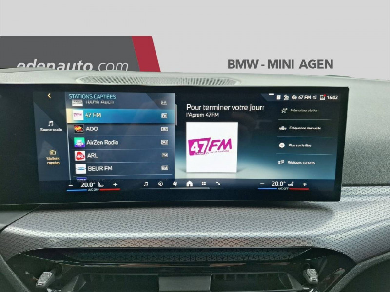 2 Portes-gobelets sur la console centrale / 3ème feu stop sur la lunette AR / 5 places / ABS, y compris assistant de freinage / Active Guard Plus Avertissement de collision frontale avec intervention de freinage grâce à un radar et à une caméra (entre 5 km/h et 250 km/h) - Avertissement de chauvechement de ligne avec impulsion sur la direction - Assistance de limitation de vitesse avec informations de limite de vitesse / Airbags de tête à l'AV et aux places latérales AR / Alarme antivol Surveillance des portes, coffre et capot moteur, protection de l'habitacle, détecteur de soulèvement et sirène. / Appel d'Urgence Intelligent (durée de vie de la voiture) Appel automatique vers le centre d'assistance BMW en cas d'accident. Touche SOS pour Appel d'Urgence manuel. Les données importantes sont automatiquement transmises aux secours : identification et localisation de la voiture, nombre de passagers à bord, statuts des airbags. Ce service utilise la carte SIM montée d'usine et ne requiert pas l'utilisation du smartphone. / Apps véhicule (3 ans) Applications intégrées au véhicule permettant notamment la réception des données suivantes : actualités (Podcasts "News Next"), prévisions météo, guide de voyage (infos légales par pays), infos prix des carburants. Inscription via l'application pour Smartphone My BMW. Achat et renouvellement du service possible sur le BMW Shop. Ce service utilise la carte SIM montée d'usine. Usage illimité sans surcoût pendant la durée de l'abonnement. / Avertisseur sonore pour piétons Le signal sonore se rapproche d'un bruit de turbine. Il est généré de 0 à 30 km/h. Les bruits de roulement suffisent au-delàà faire entendre la voiture. / BMW Curved Display / BMW EfficientDynamics Direction à assistance électrique Servotronic, Fonction d'arrêt et de redémarrage automatique du moteur, Système de récupération de l'énergie au freinage, Technologie BMW TwinPower Turbo avec injection directe / BMW Live Cockpit Navigation Plus Dalle numérique BMW Curved Display de 12,3'' derrière le volant et 14,9'' au dessus de la console centrale, BMW Intelligent Personal Assistant, Fonctions Intelligentes (3 ans), Remote Software Upgrade (durée illimitée) / Boîte de vitesses automatique Sport 8 rapports avec palettes au volant, mode roue libre au ralenti et Launch Control. / Câble de recharge Professionnel Mode 3 (T2-T2) 22 kW pour la recharge publique - 5 mètres Câble de recharge de Mode 3 avec des branchements Type 2 - Type 2 monophasés d'une longueur de 5 mètres destinéà la recharge publique et venant en complément du câble de recharge occasionnel de Mode 2. Ce câble est placé dans un sac et rangé et attachéà l'oeillet à l'intérieur du compartiment à bagages principal ayant un crochet, à côté du câble de Mode 2. / Carte BMW Charging / Carte SIM 4G LTE pour les Services ConnectedDrive / Ceintures de sécurité 3 points à toutes les places / Ciel de pavillon M Anthracite / Clés radiocommandées à mémorisation automatique des réglages "Personal Profile" / Commande électrique du volet de coffre Ouverture du volet de coffre, à distance via la clé radiocommandée; fermeture via la clé ou le bouton situé sur le volet de coffre. / Connexion multiple de téléphones / Contrôle de freinage en courbe CBC / Contrôle Dynamique de la Traction (DTC) et Contrôle Dynamique de Stabilité (DSC) / Controller iDrive avec touches de raccourci / Désignation du modèle sur la malle à droite / Détecteur de pluie et allumage automatique des projecteurs / Double prise USB Type C (3,0 A) pour la rechargedans la console centrale AR / Eclairage d'accueil / Eclairage dans le coffre et la boîte à gants / Ecrous de roues antivol / Eléments extérieurs (poignées de porte, baguettes de toit) couleur carrosserie / Feux de croisement et feux de route à technologie LED / Feux de jour et clignotants AV/AR à LED / Feux de route anti-éblouissement - Fonction à la demande Possibilité de post-équiper le véhicule de la fonctionnalité« feux de route anti-éblouissement » via le BMW Shop. / Filet de séparation du coffre / Fonctionnalité "Follow Me Home" (éclairage d'accompagnement) : les feux restent allumés quelques instants / Frein de parking électromécanique avec fonction auto-hold / Inserts décoratifs M Aluminium Rhombicle Anthracite / Jantes en alliage léger 18" style 848 M bicolores à rayons doubles avec pneumatiques mixtes AV: 7,5Jx18 / pneus 225/45 R18, AR: 8,5Jx18 / pneus 255/40 R18, Comprend les écrous de roues antivol. / Kit de mobilité BMW Bouteille de mastic pour pneumatiques - compresseur électrique 12 V (connexion à une prise 12V) à gauche dans le compartiment à bagages / Kit éclairage / Kit rangement Bac de rangement dans les portes AV et AR, prise 12 V dans la console centrale et dans le coffre à bagages, filets dans le coffre à bagages, à gauche et à droite, crochets d'arrimage multifonction dans le coffre à bagages. / Lève-vitres AV/AR électriques avec commande par impulsion et sécurité enfants / Mesure individuelle de pression des pneumatiques / Norme GSR 2 (General Safety Regulation) / Notice d'utilisation de la voiture intégrée et carnet d'entretien électronique avec BMW Service History / Ordinateur de bord, Check-Control et indicateur de température extérieure / Pack aérodynamique M / Pack Connected Professional Fonctions "Ma BMW à distance" (durée inderterminée), Remote 3D View (Vue 3D à distance) (durée indeterminée), In-Car Experiences (3 ans), Connected Navigation (3 ans), Information Trafic en Temps Réel (RTTI) (3 ans), Divertissement à bord (offert pendant 1 an), Smartphone intégration (durée illimitée), Connected Music (3 ans), Amazon Alexa (3 ans), Services eDrive (3 ans). / Parking Assistant Comprend l'option Caméra de recul. Manoeuvres de stationnemment en créneau et en bataille facilitées par mesure automatique, Assistant de marche AR/Auto-reverse / Perso