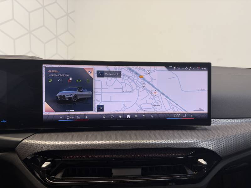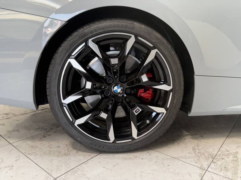 2 porte-gobelets sur la console centrale / 2 sièges à l'AR / 4 places / y compris assistant de freinage / Active Guard Plus Avertissement de collision frontale avec intervention de freinage grâce à un radar et à une caméra (entre 5 km/h et 250 km/h) - Avertissement de chauvechement de ligne avec impulsion sur la direction - Assistance de limitation de vitesse avec informations de limite de vitesse / Airbag passager désactivable via la clé / Alarme antivol / Appel d'Urgence Intelligent (durée de vie de la voiture) / Application galvanisée pour éléments de commande / Applications en cristal CraftedClarity pour éléments intérieurs Éléments en verre cristal poli : - Controller iDrive - Bouton de démarrage/d'arrêt moteur - Sélecteur de vitesse / Applications véhicule (3 ans). BMW Connected+ (3 ans). / BMW Curved Display / BMW EfficientDynamics / BMW Live Cockpit Navigation Plus / Boîte de vitesses automatique Sport 8 rapports avec palettes au volant / Capacité du reservoir augmentée / Capote en toile - Ouverture possible en roulant jusqu'à une vitesse de 50km/h / Carte SIM 4G LTE pour les Services ConnectedDrive / Ceintures de sécurité 3 points pour toutes les places / Clés radiocommandées à 4 boutons / Connexion multiple de téléphones / Contrôle de freinage en courbe CBC / Contrôle dynamique de stabilité DSC / Controller iDrive avec touches de raccourci / Désignation du modèle sur la malle à droite / Détecteur de pluie et allumage automatique des projecteurs / Direction DirectDrive à démultiplication variable / Direction Servotronic à assistance variable en fonction de la vitesse BMW EfficientDynamics / Eclairage d'accueil / Eclairage d'ambiance Eclairage lumineux dynamique pour 4 applications (bienvenue / au revoir / portes ouvertes et appel téléphonique) dans 9 coloris différents du tableau de bord / des panneaux de portes et de la console centrale. Comprend également les liseuses arrière / l'éclairage du rangement de l'accoudoir central avant et poignées d'ouverture de porte (intérieur et extérieur) ainsi qu'un éclairage de bienvenue avec tapis de lumière / Eclairage dans le coffre / Ecrous de roues antivol / Eléments extérieurs (poignées de portes et baguettes de toit) couleur carrosserie / Feux de croisement et feux de route à technologie Bi-LED / Feux de jour et clignotants AV/AR à LED / Filet anti-remous / Fonction d'arrêt et de redémarrage automatique du moteur BMW EfficientDynamics / Fonctionnalité Follow Me Home (éclairage d'accompagnement) : les feux de croisement restent allumés quelques instants une fois le contact coupé / Frein de parking électromécanique avec fonction Auto-Hold / Grilles de calandre Mesheffect / cadres en chrome brillant / Hybridation légère (48V) / Inserts décoratifs M Aluminium Rhombicle Anthracite / Interface Bluetooth pour téléphone portable / Jantes en alliage léger 18 style 848 M à rayons double / bicolores 7.5Jx18 et pneus 225/45 R18 Comprend écrous de roues antivol. Incompatibles avec chaînes d'origine BMW. / Jantes en alliage léger 19 style 995 M bicolores à rayons doubles avec pneumatiques mixtes / RSC 8 J x 19 / pneus 225/40 R 19 8 / 5 J x 19 / pneus 255/35 R 19 Comprend écrous de roues antivol. Incompatibles avec chaînes d'origine BMW. / Kit de rangement - Bac de rangement dans les portes avant (une bouteille de 1L peut y prendre place) Contrôle Dynamique de la Stabiité DSC et Contrôle Dynamique de la Traction DTC - Prise 12 V dans la console centrale Controller iDrive avec touches de raccourci - Double prise USB Type C dans la console centrale arrière Détecteur de pluie et allumage automatique des projecteurs - Filets au dos des sièges avant et dans le coffre à bagages / / Kit Eclairage / Lève-vitres AV électriques avec commande par impulsion et protection anti-coincement / Mesure individuelle de pression des pneumatiques / Notice d'utilisation de la voiture intégrée et carnet d'entretien électronique avec BMW Service History / Ordinateur de bord avec Check-Control et indicateur de température extérieure / Pack Aérodynamique M / Pack Connected Professional Fonctions Ma BMW à distance (durée inderterminée) / Remote 3D View (Vue 3D à distance) / In-Car Experiences (3 ans) / Connected Navigation (3 ans) / Smartphone intégration (durée illimitée) / Connected Music (3 ans) / Divertissement à bord (offert pendant 1 an) / YouTube (durée indéterminée) / Pack Innovation / Parking Assistant Comprend l'option Caméra de recul. Manoeuvres de stationnemment en créneau et en bataille facilitées par mesure automatique / Assistant de marche AR/Auto-reverse / Personal eSIM Personal eSIM est la version électronique / intégrée au véhicule / de la carte SIM traditionnelle. Vous l'utilisez via un abonnement souscrit auprès d'un opérateur téléphonique et transformez ainsi votre BMW en périphérique mobile supplémentaire : - Connectivité en 5G - Meilleure qualité de connexion grâce aux antennes de la voiture - Connexion Hotspot Wi-Fi avec la possibilité de connecter jusqu'à 10 appareils (ex : tablette numérique / smartphone / ...) / Planche de bord en similicuir Sensatec Planche de bord et hauts de contre-porte en Similicuir Sensatec Schwarz avec double couture grise / Préparation pour feux de route permanents anti-éblouissement / Prises USB (1 type A dans la console centrale et 1 type C dans l'accoudoir central) / Protection active des piétons / Réglage de la largeur du dossier conducteur / Régulateur de vitesse avec fonction de freinage et limiteur de vitesse / Rétroviseur intérieur électrochrome / Rétroviseurs extérieurs couleur carrosserie et chauffants avec rappels de clignotants intégrés / électrochrome côté conducteur / Sélecteur de mode de conduite - (3 modes) ECO PRO / Comfort / Sellerie Cuir Vernasca Schwarz avec surpiqûres Bleues / Teinte d'habitacle Schwarz / Services Après-vente connectés BMW TeleServices (durée de v
