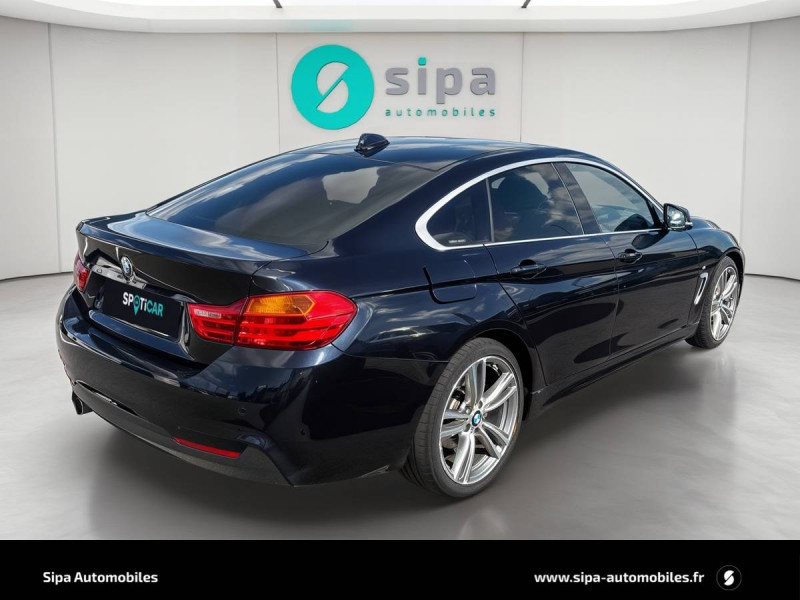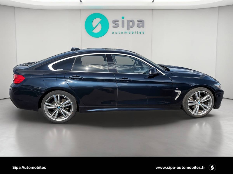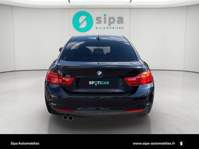 3ème feu stop / 8 touches de favoris programmables et "Controller" iDrive Touch avec touches de raccourci / ABS, y compris assistant de freinage / Airbags de tête AV et AR avec voile de protection contre les débris de verre / Anneaux d'arrimage dans le coffre sur le seuil de chargement / Antenne "aileron de requin" / Applications en chrome perlé autour des touches de radio et climatisation / Appuie-tête et ceintures de sécurité 3 points à toutes les places / Appuis-tête inclinables à l'AV / Autoradio BMW Professional CD, avec écran couleur 6,5", 6HP, prise AUX-IN, compatibilité MP3, double Tuner RDS FM, info route (TP) et lecteur CD compatible / Baguettes de seuil en aluminium avec emblème M / Bandeau pare-soleil gris pour pare-brise / Boîte de vitesses automatique 8 rapports / Bouton de démarrage "Start/Stop" avec contour chromé / Ciel de pavillon "Anthrazit" / Clés radiocommandées à mémorisation automatique des réglages "Personal Profile" / Clés radiocommandées avec application bleue / Clignotants blancs avec répétiteurs latéraux intégrés dans les rétroviseurs extérieurs / Clignotants blancs intégrés dans les boitiers des rétroviseurs extérieurs / Climatisation automatique 3 zones (réglages séparés gauche/droite, capteur d'humidité, capteur d'ensoleilement, filtre à charbon actif et microfiltre, touche "Max-Cool") / Console centrale laquée noire / Construction allégée intelligente BMW EfficientDynamics / Contrôle de freinage en courbe CBC / Contrôle Dynamique de Stabilité DSC+ avec fonctionnalités étendues (y compris l'assistant de démarrage en côte) / Désignation du modèle / Désignation "Gran Coupé" intégrée à la 3ème vitre custode / Détecteur de pluie et allumage automatique des projecteurs / Déverrouillage électrique du coffre via la poignée ou la clé radiocommandée / Différentiel à blocage électronique pour optimiser la motricité / Diffuseur aérodynamique AV "Air Curtain" / Diffuseur aérodynamique latéral "Air Breather" / Direction à assistance électrique BMW EfficientDynamics / Direction DirectDrive à démultiplication variable / Eclairage d'accompagnement (extention retardée des projecteurs) / Eclairage d'ambiance avec 2 couleurs au choix / Eclairage dans le coffre / Ecrous de roues antivol / Eléments extérieurs (poignées de portes et baguettes de toit) couleur carrosserie / Feux de stop dynamiques clignotants avec technologie LED / Fonction d'arrêt et de redémarrage automatique du moteur BMW EfficientDynamics / Freins à disques ventilés AV/AR / Grilles de calandre cerclés de chrome avec 8 barreaux verticaux élargis noirs brillant / Interface Bluetooth et port USB Streaming audio via connexion Bluetooth avec fonction "Music search" / Jantes en alliage léger 18'' style 400M à rayons doubles A l'AV : 8Jx18" / pneus 225/45 R18, à l'AR : 8Jx18" / pneus 255/40 R18, Montage de chaînes à neige impossible / Kit aérodynamique M / Kit de mobilité BMW / Kit Eclairage / Kit Fumeurs / Kit rangement / Lève-vitres AV et AR électriques, avec commande par impulsion et protection anti-coincement / Levier de vitesses M raccourci en cuir "Walknappa" / Mesure individuelle de pression des pneumatiques / Mode ECO PRO (inclus sélecteur de mode de conduite) BMW EfficientDynamics / Montants B en noir laqué / Motorisations BMW TwinPower Turbo: composé d'un turbocompresseur à géométrie variable, de l'injection directe et d'une rampe commune Common Rail de 3ème génération (BMW EfficientDynamics) / Navigation multimédia Business / Notice d'utilisation de la voiture intégrée et carnet d'entretien électronique avec BMW Service History / Ordinateur de bord avec Check-Control et indicateur de température extérieure / Ouverture et fermeture électriques du hayon / Pack Advanced Full LED / Pneumatiques RSC permettant le roulage à plat / Porte-gobelets (2) sur la console centrale avec couvercle occultable (rangement dans le filet en haut de la boîte à gants possible) / Prise 12 V dans la console centrale / Régulateur de vitesse avec fonction de freinage et limiteur de vitesse / Repose-pieds M pour le conducteur / Respect de la norme anti-pollution EU6 / Rétroviseur intérieur électrochrome / Rétroviseurs extérieurs couleur carrosserie à réglages électriques et dégivrants, miroir asphérique côté conducteur, rappels de clignotants intégrés / Sélecteur de mode de conduite avec mode ECO PRO / Services Après-vente connectés BMW TeleServices / Seuils de portes avec inscription BMW / Shadow Line brillant BMW Individual / Sièges Advanced pour conducteur et passager AV / Sortie d'échappement double, à gauche, ronde et chromée de 65mm / Soufflet du levier de frein à main en similicuir / Système de récupération de l'énergie au freinage BMW EfficientDynamics / Tapis de sol en velours / Teinte de carrosserie unie (Alpinweiss) / Touches multifonctions sur le volant / Triangle de présignalisation avec kit de premiers secours / Verrouillage automatique des portes dès 15 km/h environ / Verrouillage centralisé des portes, du coffre et de la trappe à carburant / Vide-poches ergonomiques dans les portes AV et sous le volant / Volant M gainé cuir Trois branches, aplati en bas et marque à 12 heures en noir. Volant en cuir noir 'Walknappa' avec surpiqûres noires, inserts chrome nacré et repose-pouce dans le volant. Logo M sur la base du volant.