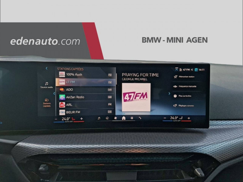2 Portes-gobelets sur la console centrale / 5 places / ABS, y compris assistant de freinage / Active Guard Plus / Aides au stationnement Parking Assistant - Caméra de recul - Manoeuvres de stationnemment automatique en créneau et en bataille - Freinage automatique (PDC actif) en marche AR - Assistant de marche AR/Auto-reverse / Airbags de tête AV et aux places latérales AR / Alarme antivol / Appel d'Urgence Intelligent (durée de vie de la voiture) / Applications véhicule (3 ans) / Assistant d'attention : analyse le comportement du conducteur et suggère des pauses / BMW Connected+ (gestion des déplacements en combinaison avec l'app BMW Connected) (3 ans) / BMW Curved Display / BMW EfficientDynamics / BMW Live Cockpit Navigation Plus / Boîte de vitesses automatique Sport 8 rapports avec palettes au volant / Capacité du reservoir augmentée / Carte SIM 4G LTE pour les Services ConnectedDrive / Ceintures de sécurité 3 points pour toutes les places / Ciel de pavillon M Anthracite / Clés radiocommandées à mémorisation automatique des réglages "Personal Profile" / Commande électrique du volet de coffre / Connexion multiple de téléphones / Contrôle de freinage en courbe CBC / Contrôle de la traction (TCS) / Contrôle Dynamique de la Traction (DTC) et Contrôle Dynamique de Stabilité (DSC) / Controller iDrive avec touches de raccourci / Désignation du modèle sur la malle à gauche / Détecteur de pluie et allumage automatique des projecteurs / Direction DirectDrive à démultiplication variable / Eclairage d'accueil / Eclairage d'ambiance / Eclairage dans le coffre / Ecrous de roues antivol / Eléments extérieurs (poignées de porte, baguettes de toit) couleur carrosserie / Feux de croisement et feux de route à technologie LED / Feux de jour et clignotants AV et AR à LED / Feux de route anti-éblouissement - Fonction à la demande Possibilité de post-équiper le véhicule de la fonctionnalité« feux de route anti-éblouissement » via le ConnectedDrive Store via le Remote Software Upgrade (mise à jour logicielle à distance) / Fonctionnalité "Follow Me Home" (éclairage d'accompagnement) : les feux de croisement restent allumés quelques instants une fois le contact coupé / Frein de parking électromécanique avec fonction auto-hold / Grilles de calandre "Mesheffect", cadres en chrome brillant / Hybridation légère (48V) / Inserts décoratifs M Aluminium Rhombicle Anthracite / Interface Bluetooth / Jantes en alliage léger 18'' style 858 M bicolores à rayons doubles 8,5 J x 18 / pneus 245/45 R 18, Comprend Ecrous antivol de roues / Kit de mobilité Plus Comprend - Un flacon de produit de colmatage pour pneumatiques avec une alimentation autonome par batterie rechargeable et connectable facilement sur les écous, - Gonflage du pneumatique en roulant - Facile à installer et permet de réduire le temps d'arrêt pendant la panne grâce à une instalation en moins de 2 minutes. / Kit de rangements / Kit Eclairage / Lève-vitres AV électriques avec commande par impulsion et protection anti-coincement / Mesure individuelle de pression des pneumatiques / Norme GSR 2 (General Safety Regulation) / Notice d'utilisation de la voiture intégrée et carnet d'entretien électronique avec BMW Service History / Ordinateur de bord avec Check-Control et indicateur de température extérieure / Pack aérodynamique M / Pack Connected Professional (dont Apple CarPlay et Android Auto) - Fonctions "Ma BMW à distance" (durée inderterminée) - Remote 3D View (Vue 3D à distance) - Amazon Alexa (3 ans) - Connected Navigation (3 ans) - Connected Parking, Information Trafic en Temps Réel (RTTI) (3 ans) - Divertissement à bord - Streaming Vidéo - YouTube (durée indéterminée) - Smartphone intégration (durée illimitée):Préparation Apple CarPlay - Préparation Google Android Auto - Connected Music (3 ans) - Services eDrive (3 ans) / Personal eSIM / Prise USB type A (1,5 A) pour la recharge et le transfert de données dans la console centrale / Prise USB type C (3,0 A) pour la recharge et le transfert de données dans l'accoudoir central / Réglage de la largeur du dossier côté conducteur / Régulateur de vitesse avec fonction de freinage et limiteur de vitesse / Rétroviseur intérieur électrochrome / Rétroviseurs extérieurs couleur carrosserie et chauffants avec rappels de clignotants intégrés / Sélecteur de mode de conduite - (3 modes) ECO PRO, Comfort, Sport / Sellerie Tissu / M PerformTex - Schwarz / Services Après-vente connectés BMW Teleservices (durée de vie de la voiture) / Seuils de portes avec inscription BMW / Shadow Line M brillant Equipements en noir brillant: Pieds et triangles de retroviseurs, Montants B Encadrement exterieur des vitres laterales / Sièges AV chauffants Chauffage de l'assise et du dossier, parties centrales et latérales. Trois niveaux de réglages. / Sortie d'échappement simple à gauche et à droite de 100 mm / Suspensions DirectDrive / Tapis de sol en velours / Teinte de carrosserie unie (Alpinweiss) / Touches multifonctions sur le volant / Triangle de présignalisation avec kit de premiers secours / Tuner DAB / Verrouillage centralisé des portes, du coffre et de la trappe à essence / Vitres avec protection contre la chaleur et le soleil / Volant Sport M gainé cuir