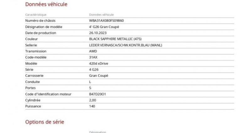 Première Main : Oui Nb. Vitesse : 8 Garantie : 12 Mois GARANTIE EQUIPEMENTS - 6 haut parleurs - Appel d'assistance localisé - Appel d'urgence localisé - Commandes du système audio au volant - Commandes vocales - Ecran tactile - Fonction mp3 - Gps cartographique - Interface média - Kit mains libres bluetooth - Prise usb - Prise auxiliaire de connexion audio - Radio - Radio numérique dab - Services connectés - Tmc - Aide au démarrage en côte - Arrêt et redémarrage auto. du moteur - Capteur de pluie - Capteur de luminosité - Commande mode eco - Commande du comportement dynamique - Démarrage sans clé - Follow me home - Indicateur de limitation de vitesse - Limiteur de vitesse - Palettes changement vitesses au volant - Régulateur de vitesse - Suspension adaptative - Alcantara/similicuir sensatec schwarz avec surpiqûres contrastantes bleues - Alpinweiss - Calandre chromée - Caméra de recul - Coffre assisté électriquement - Echappement à double sortie - Feux arrière à led - Feux de jour à led - Feux de position à led - Filtre à particules - Jantes alu - Pare brise acoustique - Phares avant led - Poignées ton carrosserie - Radar de stationnement ar - Radar de stationnement av - Répétiteurs de clignotant dans rétro ext - Rétroviseurs dégivrants - Rétroviseurs ext. indexés à la marche ar - Rétroviseurs extérieurs à mémoire - Rétroviseurs extérieurs électrochromes - Rétroviseurs rabattables électriquement - Rétroviseurs électriques - Sortie d'échappement chromée - Système d'assistance au stationnement - Système de mesure de place disponible - Accoudoir arrière - Accoudoir central av avec rangement - Appui tête conducteur réglable hauteur - Appui tête passager réglable en hauteur - Bacs de portes arrière - Bacs de portes avant - Banquette 40/20/40 - Banquette ar rabattable - Banquette arrière 3 places - Clim automatique tri zones - Compte tours - Eclairage d'ambiance - Ecran multifonction couleur - Filets de coffre - Filtre à pollen - Fixations isofix aux places arrières - Inserts de porte métal - Lampe de coffre - Lampes de lecture à l'arrière - Lampes de lecture à l'avant - Miroir de courtoisie conducteur - Miroir de courtoisie passager - Ordinateur de bord - Ouverture des vitres séquentielle - Poches d'aumonières - Porte gobelets arrière - Porte gobelets avant - Prise 12v - Rétroviseur intérieur électrochrome - Siège conducteur réglable en hauteur - Siège passager réglable en hauteur - Température extérieure - Verrouillage auto. des portes en roulant - Verrouillage centralisé des portes - Verrouillage centralisé à distance - Vitres arrière électriques - Vitres avant électriques - Vitres teintées - Volant cuir - Volant multifonction - Volant sport - Abs - Afil - Aide au freinage d'urgence - Airbag conducteur - Airbag passager - Airbag passager déconnectable - Airbags latéraux avant - Airbags rideaux - Airbags rideaux ar - Alarme - Antidémarrage électronique - Antipatinage - Assistance de maintient de trajectoire - Contrôle de freinage en courbe - Contrôle élect. de la pression des pneus - Ebd - Esp - Freinage automatique d'urgence - Système de prévention des collisions - Troisième ceinture de sécurité - ADS Automobile SAS grâce à son partenariat avec des organismes de crédits reconnus est en mesure de vous proposer des financements allant de 24 à 84 mois* avec garantie allant jusqu’à 84 mois. Documents à fournir: carte d’identité, justificatif de domicile de moins de 3 mois (facture EDF, Tel… ), 3 derniers bulletins de salaire et votre RIB. (*) Voir conditions en concession A 1 heure de Nancy/Metz et de Strasbourg. Proche gares TGV Forbach et Sarrebruck.
